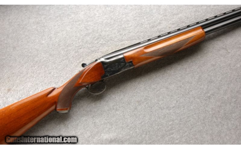 Description: This Winchester 101 is ready for the field or range. The shotgun is choked Full and Full. The shotgun shows field wear but is sound and solid. SOLD Caliber Info: 12 Gauge. Chambers: 2 3/4 inch Over/Under with Ejectors. Metal Condition: Very good with some wear on the receiver and trigger guard. Wood Condition: Very good with small field marks. Bore Condition: Bright and shiny. Barrels: 30 Inch blue with a vent rib. Triggers: Single. Stock: Mid grade straight grain American walnut with a checkered pistol grip and a steel red W grip cap. Stock Dimensions: 14 1/4 Inch LOP. Fore End: Matching checkered walnut with finger grooves. Butt Pad: Red Winchester vented butt pad. May be a replacement with some over run at the top. Weight: 7 Lbs 12 Oz. Sights: Mid and front beads on the vent rib. Chokes: Fixed Full and Full. Item Location: Owatonna, MN |