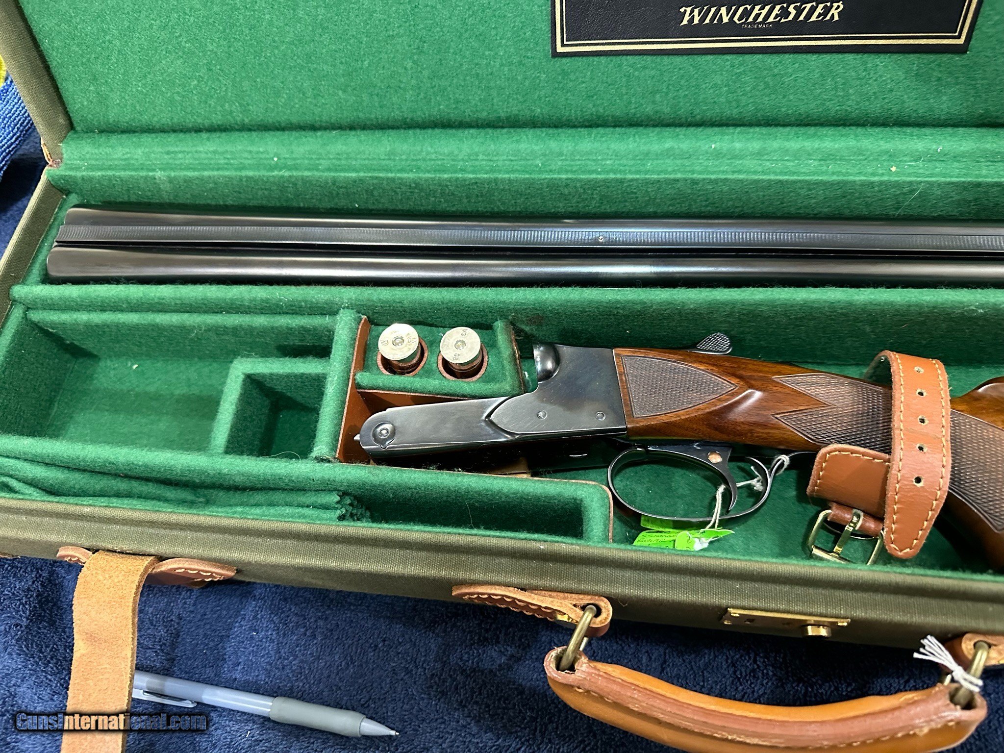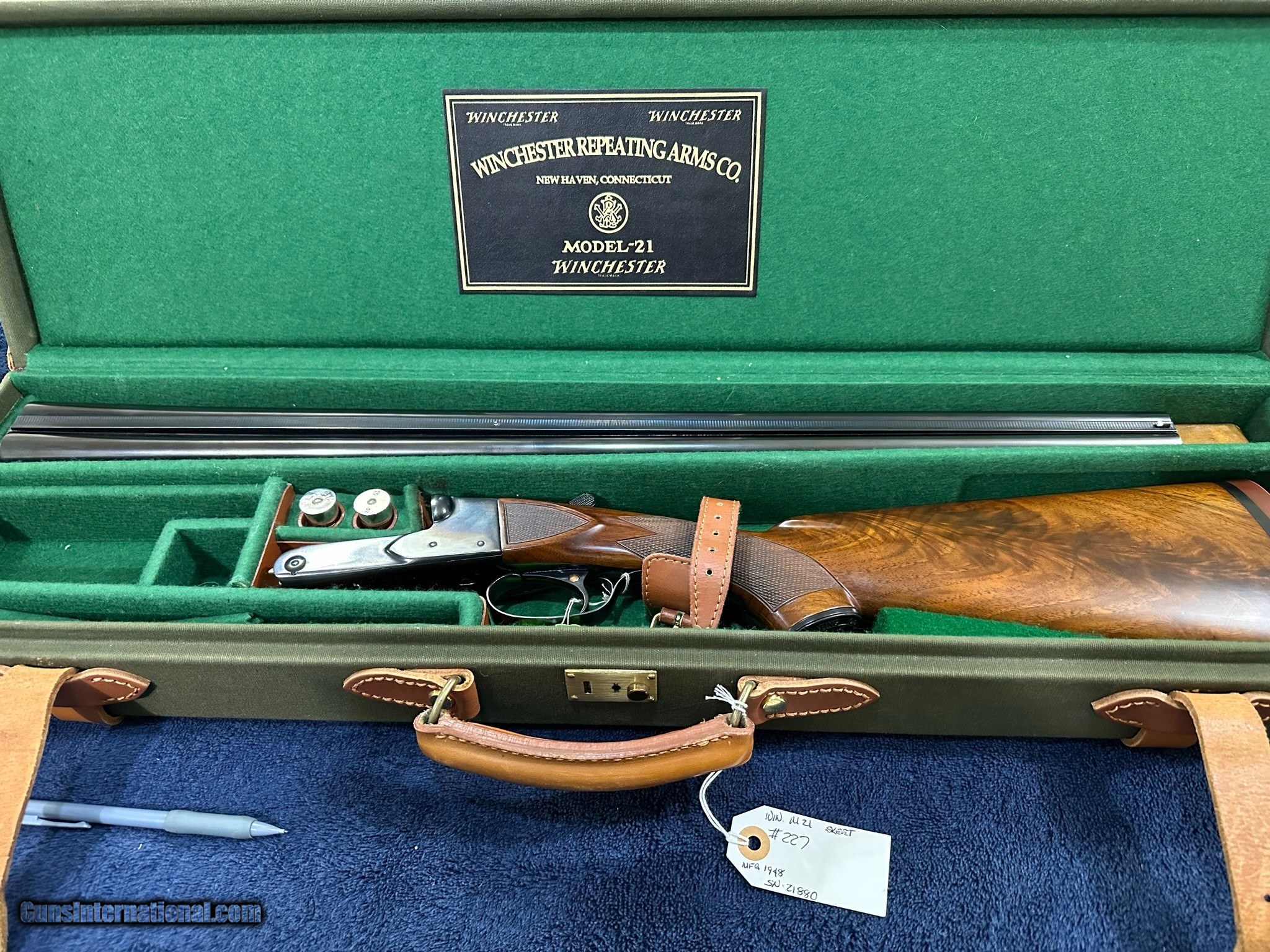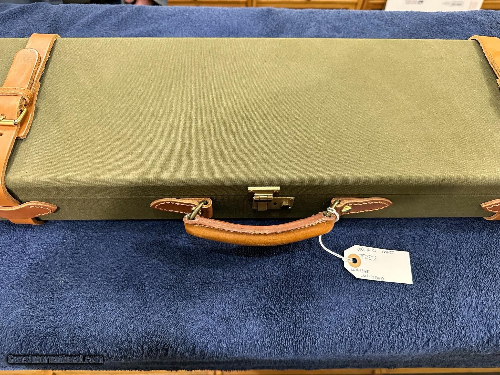 Description: Beautiful (98%) Model 21 Skeet 20 bore in makers labeled case . Manufactured in 1948. lop 14-1/2",dac 2-3/8" with 1/2" cast off, beavertail forend & 26" barrels ic/mod. Comes in Winchester labeled canvas & leather hardwood case. $9,500.00plus S&H (Make offer) SOLD Curio/Relic: Yes Shotgun Gauge: 20 Gauge Manufacturer: WINCHESTER Model: 21 Serial Number: 21880 Condition: 98% Manufacture Date: 1948 |