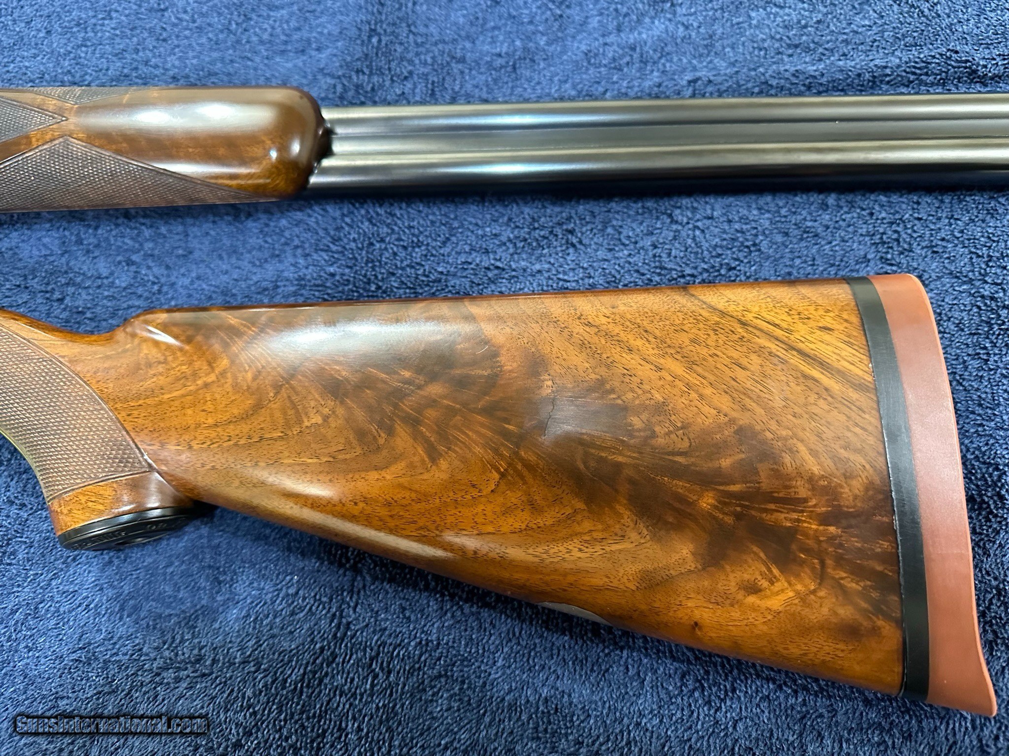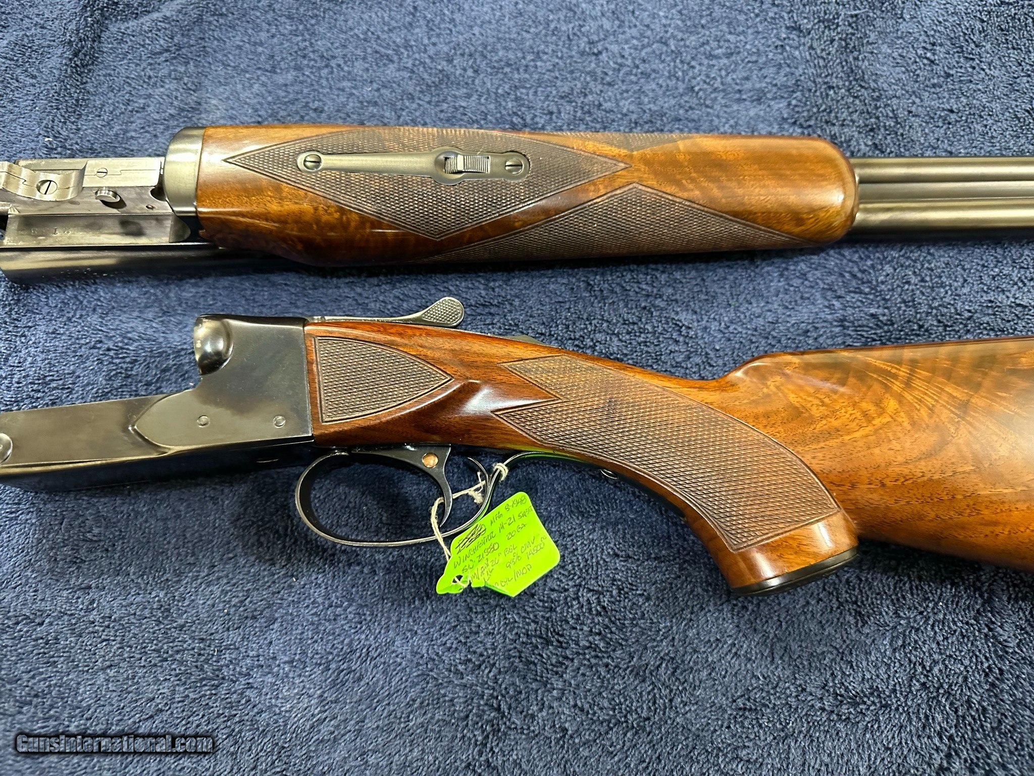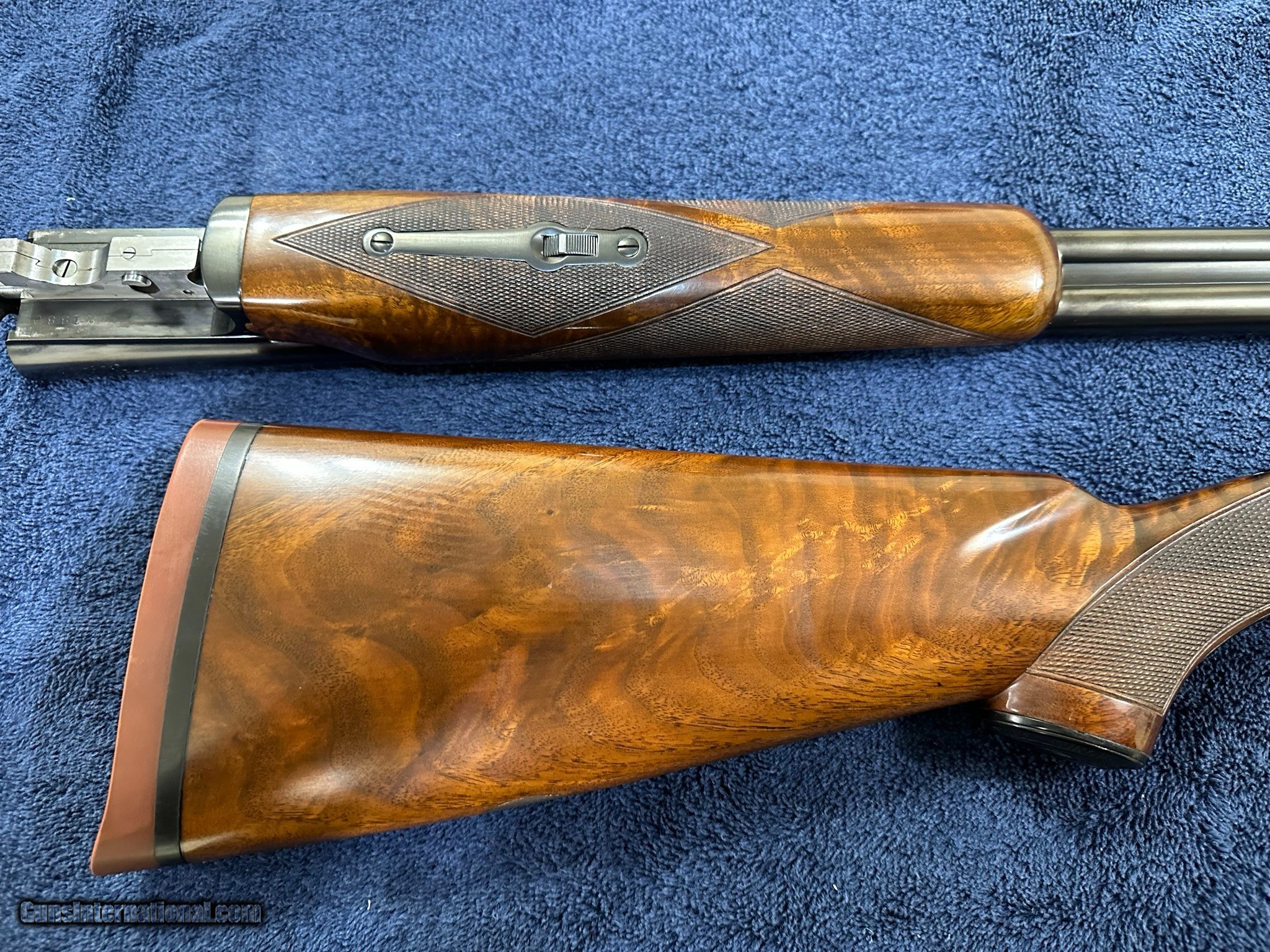 Description: Beautiful (98%) Model 21 Skeet 20 bore in makers labeled case . Manufactured in 1948. lop 14-1/2",dac 2-3/8" with 1/2" cast off, beavertail forend & 26" barrels ic/mod. Comes in Winchester labeled canvas & leather hardwood case. $9,500.00plus S&H (Make offer) SOLD Curio/Relic: Yes Shotgun Gauge: 20 Gauge Manufacturer: WINCHESTER Model: 21 Serial Number: 21880 Condition: 98% Manufacture Date: 1948 |
