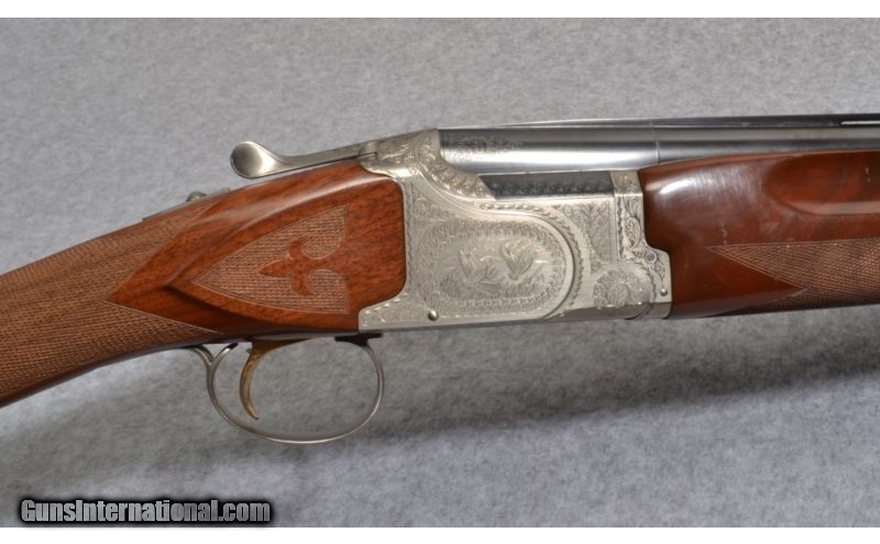 Description: Gun has seen some use but is in overall good condition. SOLD Caliber Info: 12 Ga. Chambers: 2 3/4 and 3 inch Metal Condition: Excellent Wood Condition: Very good with some field wear; small gouge under forearm Bore Condition: Excellent Barrels: 25 1/2 Triggers: Selectable Stock: Fine walnut with diamond checkering Stock Dimensions: 14" LOP, 1 1/2" DAC, 2 1/4" DAH Fore End: Walnut with diamond checkering Butt Pad: Factory butt pad Weight: 7 lbs. 4 ozs. Sights: Front bead needs replaced; middle bead is missing. Chokes: 5 choke tubes Extras: Fitted hard case ; 5 chokes and choke wrench Item Location: Sun Prairie, WI |