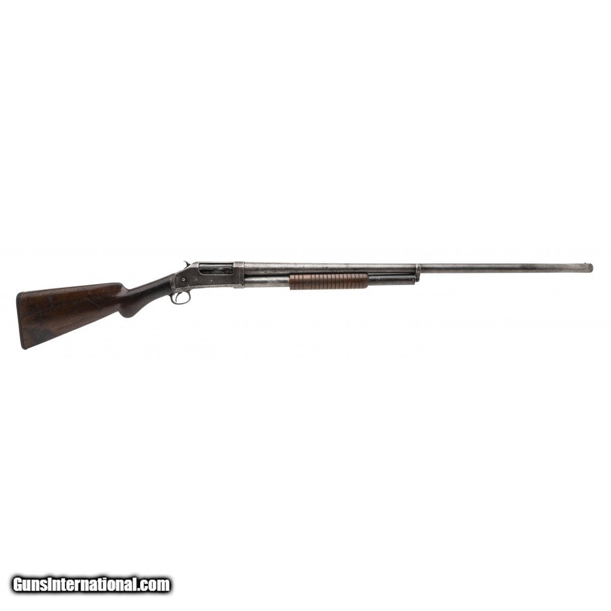 Description: " SN: 357979. Made in 1907. 12 Gauge with a 32"" cylinder choke barrel. Bore is in good condition with pitting noted. Pump action Winchester field gun. Shotgun has a brown/gray patina throughout. Stock has expected wear with nicks and dings noted. LOP is 13.5"". Action functions properly. Overall good condition.(Consignment) SOLD Curio/Relic: Yes |