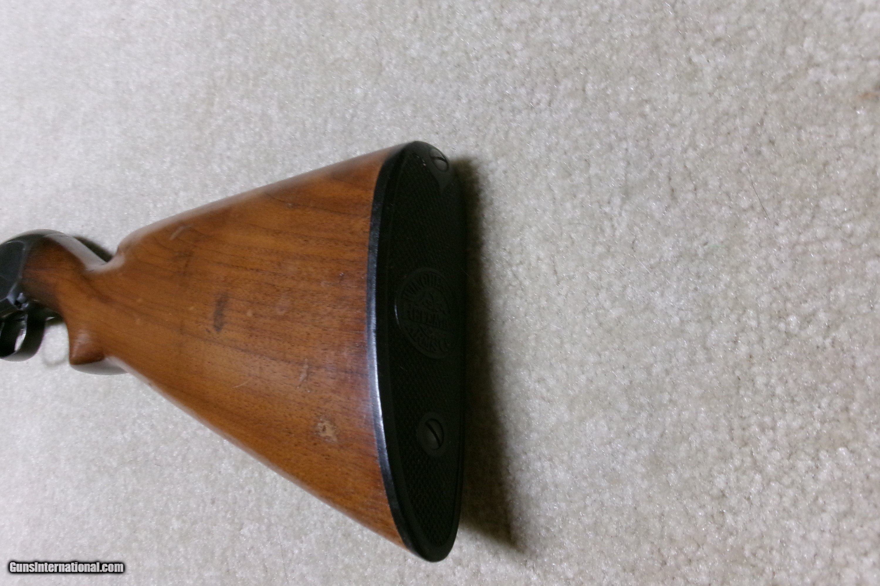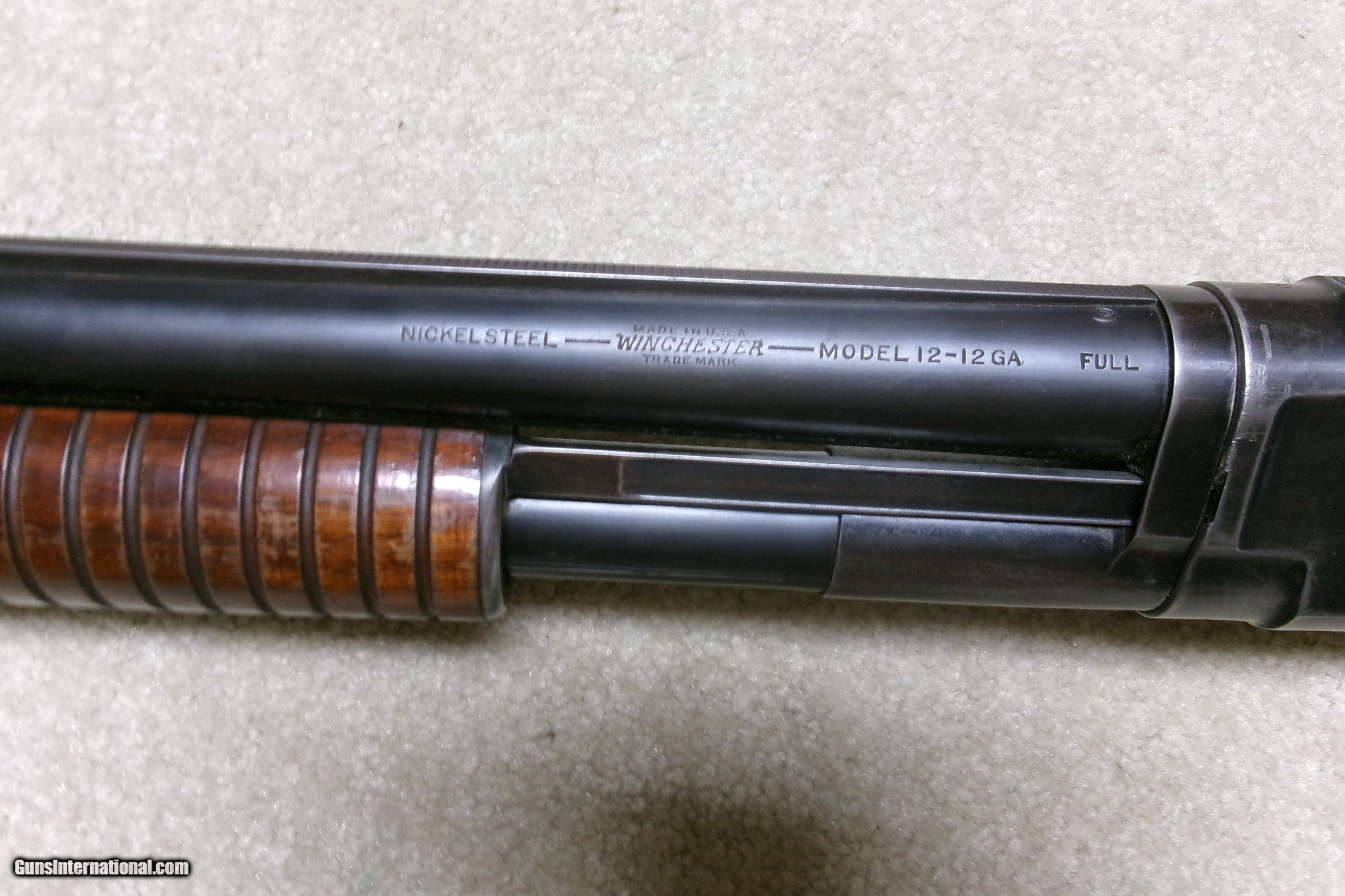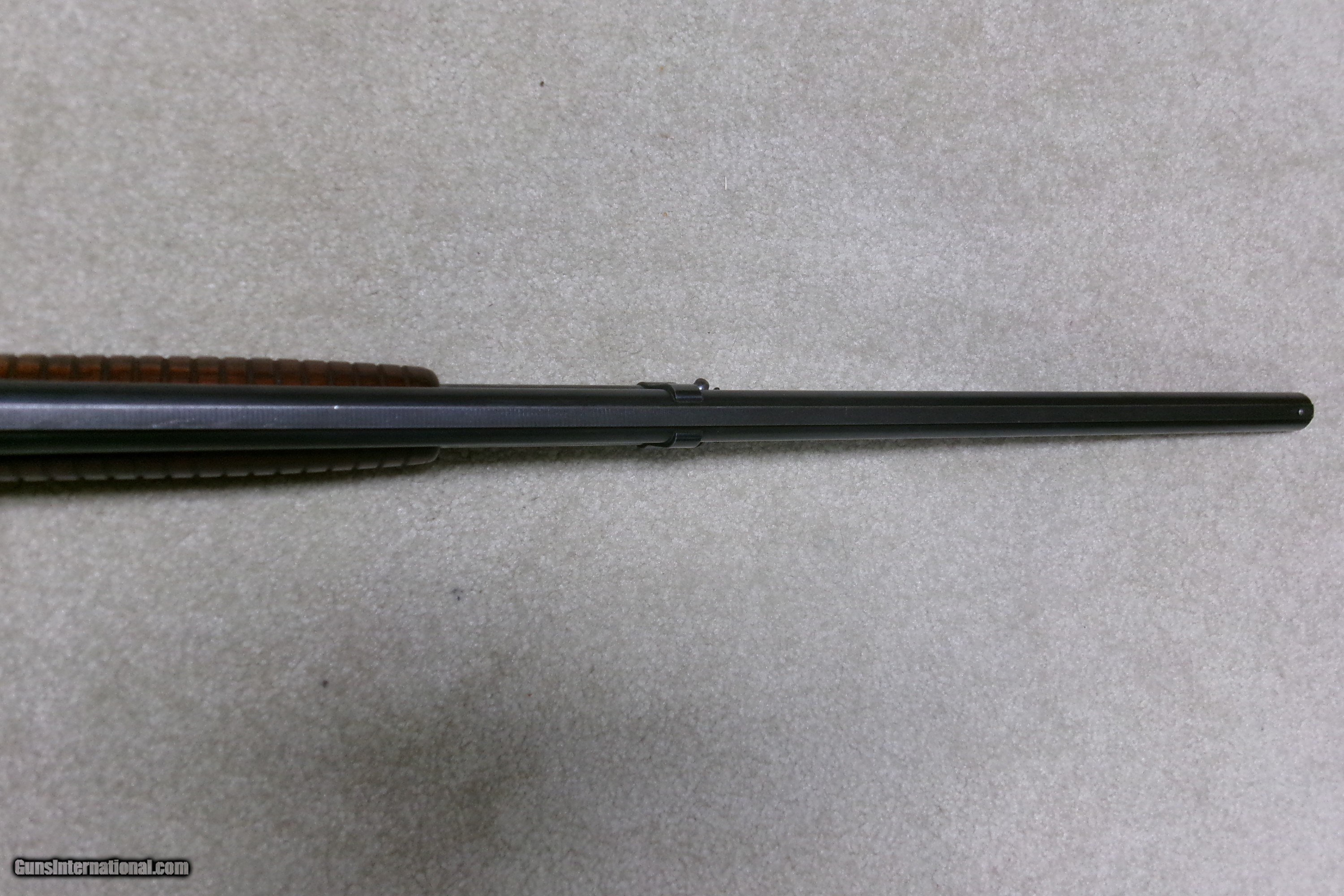 Description: CLASSIC MODEL 12, 12 GA. PUMP SHOTGUN #413XXX, MADE 1924. This is an unaltered example with 30" full choke barrel with special order solid matte rib. The receiver shows most of the original blue with normal edge wear. The barrel and mag show most of the blue with excellent markings and matching serial numbers. The stock and forend are excellent showing only light handling marks. Importantly, this one has the original winchester embossed hard rubber butt plate (most have had recoil pads installed at some point). Tight action and takedown with bright bore. All solid steel and walnut that would be too expensive to produce today, especially with the solid matted rib barrel. SOLD Curio/Relic: Yes Shotgun Gauge: 12 Gauge Manufacturer: WINCHESTER Model: MODEL 12 Serial Number: 413XXX Barrel Length: 30 Condition: FINE+ Bore Condition: EXCELLENT |