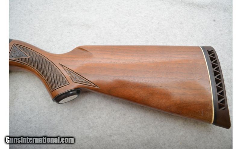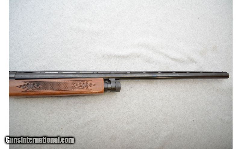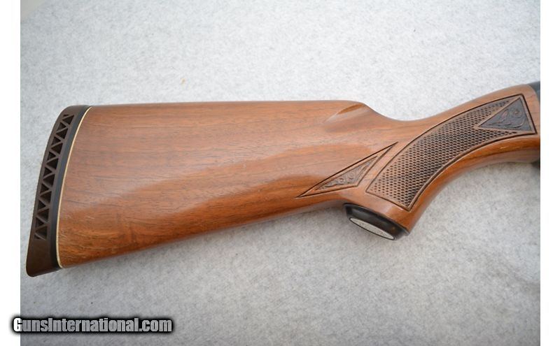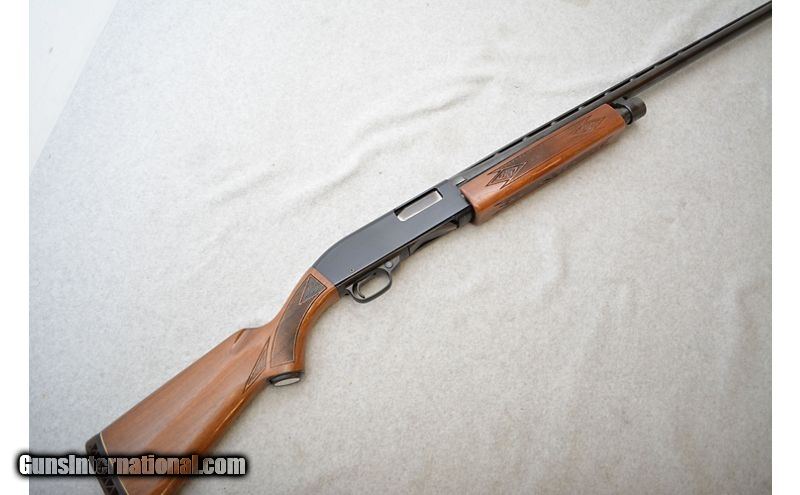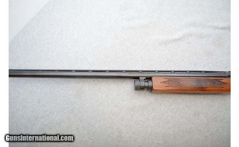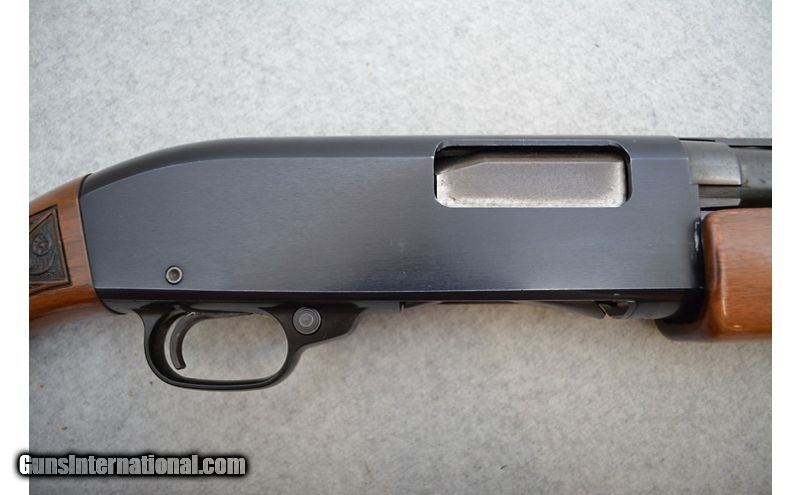 Description: Not in terrible shape but could be better. The barrel has a good number of tiny patches of surface rust. As shown in the picture of the barrel's roll stamp, these "freckles" can be pretty thick in concentration/density. The receiver is fine with a few scratches and light loss of finish where the pump handle rubs it. The furniture is in good shape despite its issues. The pump handle has some minor dents and handling marks but none worthy of individual notes. The finish near the recoil pad has some damage but none seems to have effected the wood. 12 Gauge SOLD Chambers: Pump action fed from a tubular magazine chambering up to 2¾" shells. Metal Condition: Fair to good. Wood Condition: Good. Bore Condition: Excellent. Barrels: 28" Blued with ventilated rib. Triggers: Blued metal with smooth surface. Stock Dimensions: Embossed hardwood with a 14" LOP. Fore End: Hardwood with triple panel embossing. Butt Pad: Branded ventilated brown rubber pad. Weight: 7lbs Sights: Brass front and middle bead. Chokes: Fixed full choke. Item Location: Green Bay |