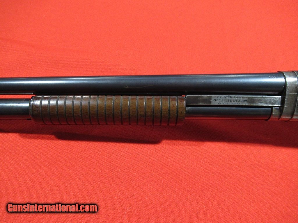 Description: Wincester 1897 16ga/28" Full Choke -- Manufactured in 1908 with a plain barrel, Full choke, 2 1/2" chamber. Appears to be all the original parts and in good working order. SOLD |