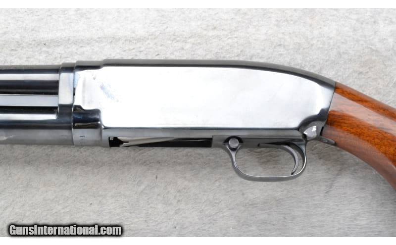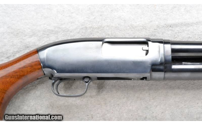 Description: This Winchester Model 12 (Heavy Duck) is a right hand pump action shotgun in 12 Ga. It has a 27 inch barrel with a brass bead front sight. The barrel is stamped Full but it has a Poly Choke installed. It has a 3 inch chamber. The butt stock is a smooth grip hardwood pistol grip. The forearm is a grooved grip hardwood. Serial Number 1457391. 12 Gauge SOLD Chambers: 3 inch. Metal Condition: Very Good. Wood Condition: Good. Has light handling/use marks. Bore Condition: Shiny. Barrels: 27 inch. Stock Dimensions: LOP 13 1/2 inches. Fore End: Grooved gripped hardwood. Butt Pad: Winchester red rubber recoil pad. Weight: 9 lb. 0 oz. Sights: Brass bead front. Chokes: Barrel stamped Full but it has a Poly Choke on it. Item Location: Richfield, WI |