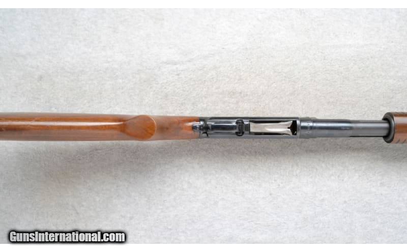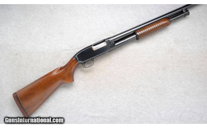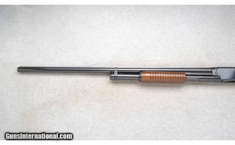 Description: This Winchester Model 12 is a pump action shotgun in 12 Ga. It has a 32 inch barrel with a solid rib. White bead front and middle sights. With a 3 inch chamber it has a fixed Full choke. The butt stock is a smooth grip walnut pistol grip. The forearm is a grooved grip walnut. 12 Gauge SOLD Chambers: 3 inch. Metal Condition: Good. Has some finish blemishes and handling marks. Wood Condition: Good. Some light handling marks. Bore Condition: Bright and shiny. Barrels: 32 inch barrel with a solid rib. Stock Dimensions: LOP 13 5/8 inches. Fore End: Grooved grip walnut. Butt Pad: Winchester rubber recoil pad. Weight: 9 lb. 2 oz. Sights: White bead front and middle sights. Chokes: Fixed Full. Item Location: Richfield, WI |