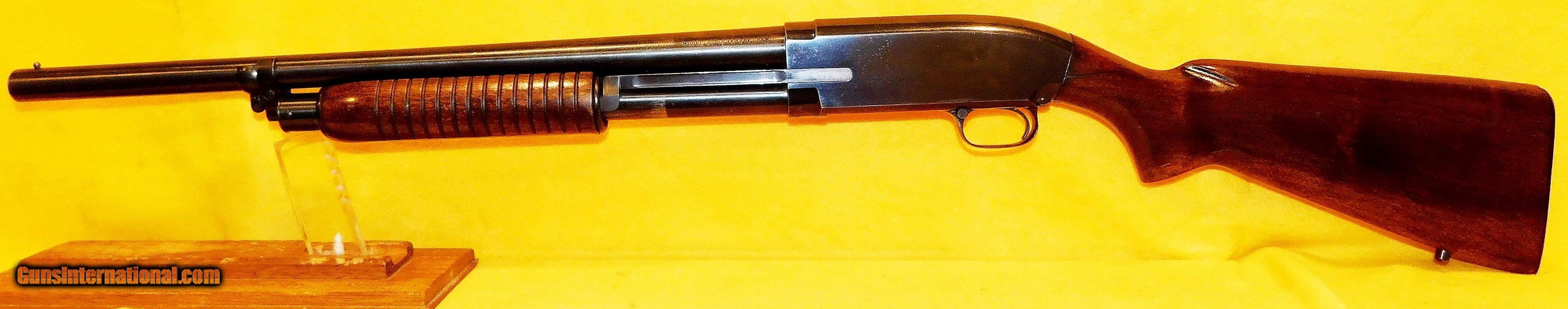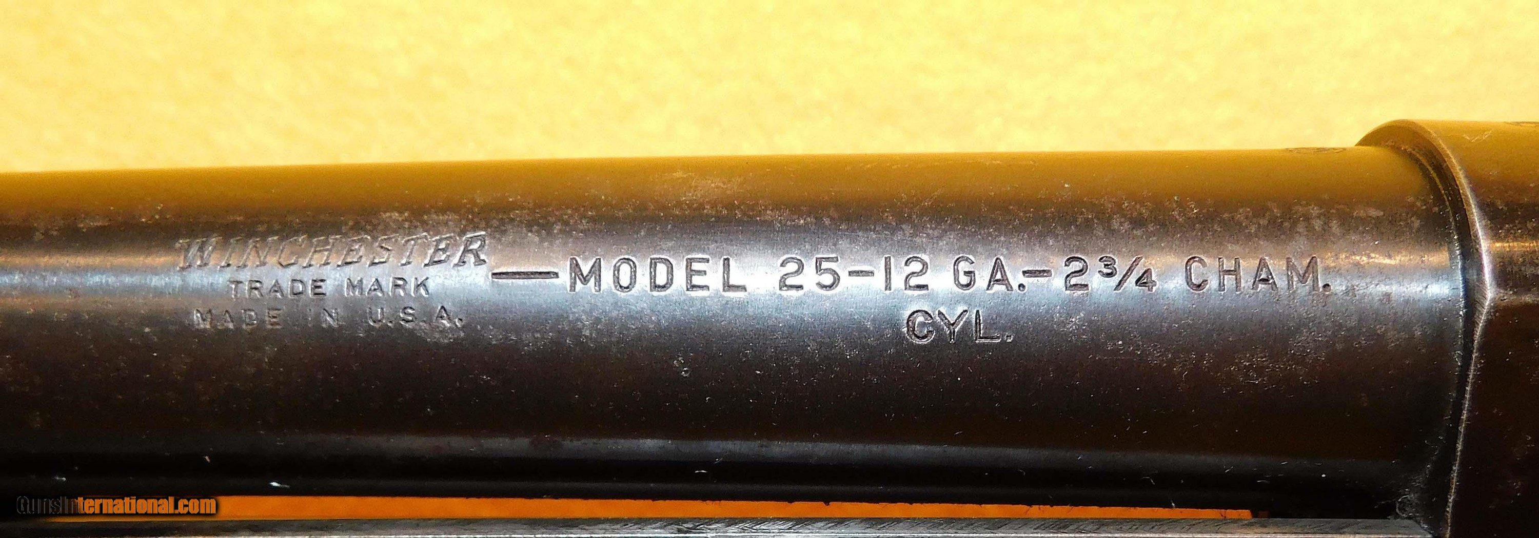 Description: WINCHESTER 25 (RIOT) IN 12 GA CAL., WITH 20" BARREL. COLOR BLUE. CONDITION 93%+. SERIAL NUMBER 43098. WINCHESTER MODEL 25 PUMP RIOT SHOT GUN (SLAM FIRE) IN 12 GAUGE CALIBER, FIXED CYLINDER BORE CHOKE WITH BRIGHT BORE, WOOD IS VERY GOOD TO EXCELLENT CONDITION, BUILT FROM 1949 THROUGH 1954 THIS VERSION (RIOT) WAS USED FOR LAW ENFORCEMENT ETC. WITH MANY OF THEM SENT TO SOUTH VIETNAM FOR THERE MILITARY, 93%+ OVERALL CONDITION, OUR STOCK # D1962 SOLD |