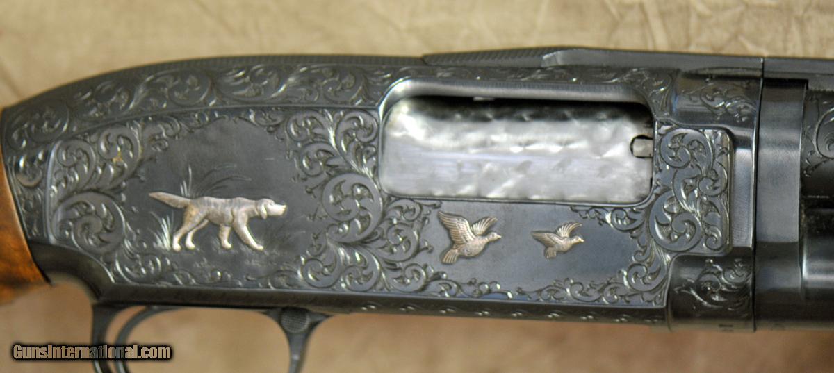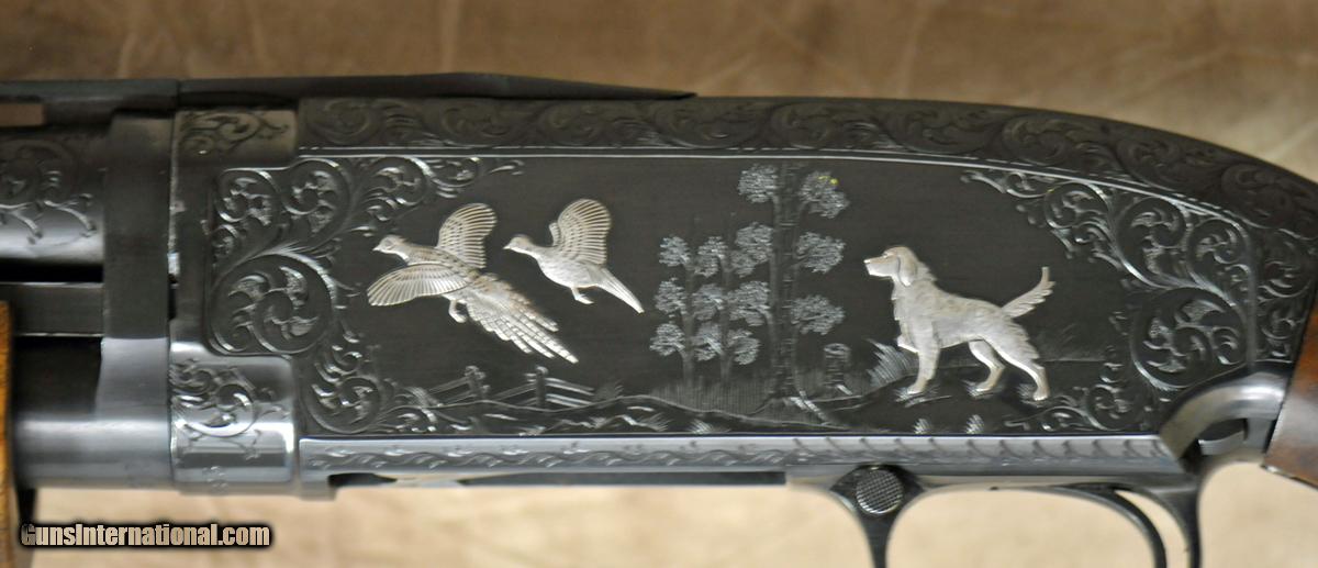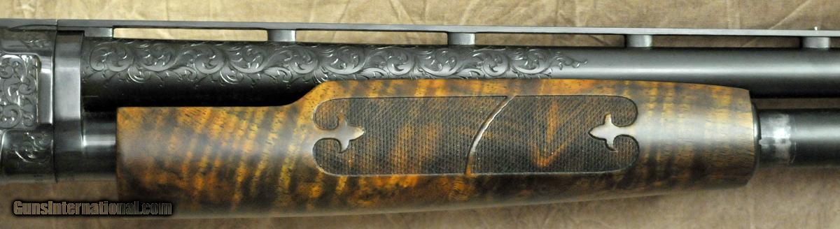 Description: Winchester model 12 12ga 25" barrel with after market cutts. Outstanding Non-factory Monte-carlo stock and forearm in 99%+ condition. Non-factory engraving with silver dogs and birds. This gun is located at our NEW Michigan location at 8585 PGA Drive, Suite 104. Walled Lake, MI, 48390. 248-960-7262. SOLD Manufacturer: Winchester Barrels: 25 Gauge Info: 12 |