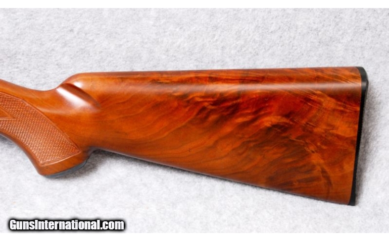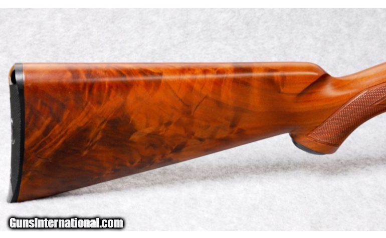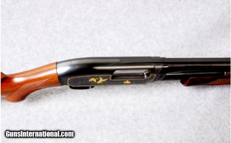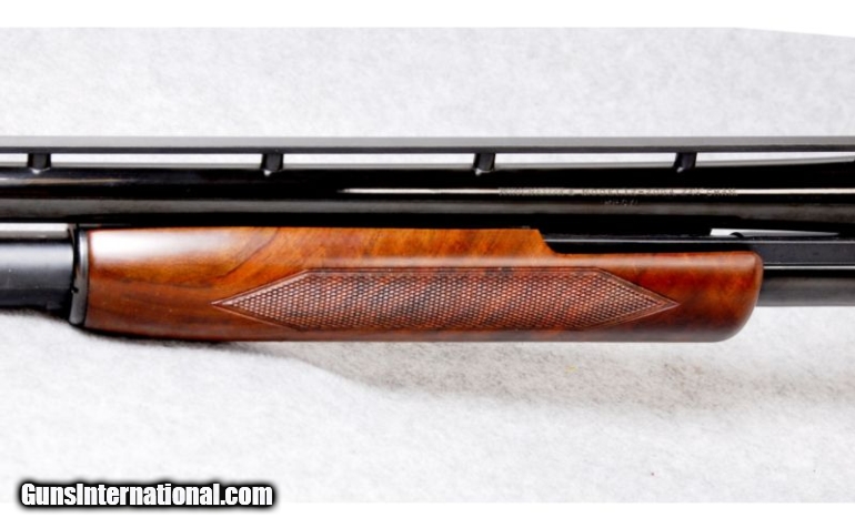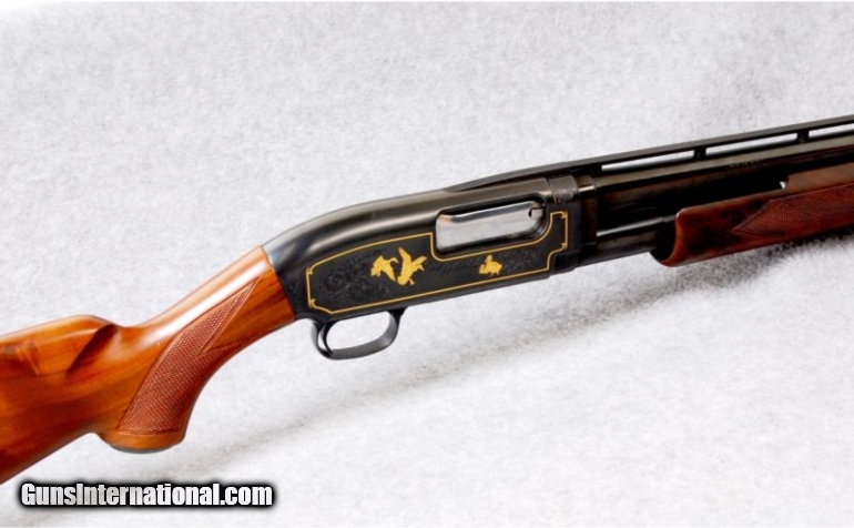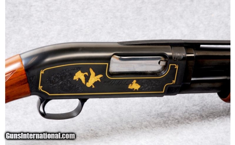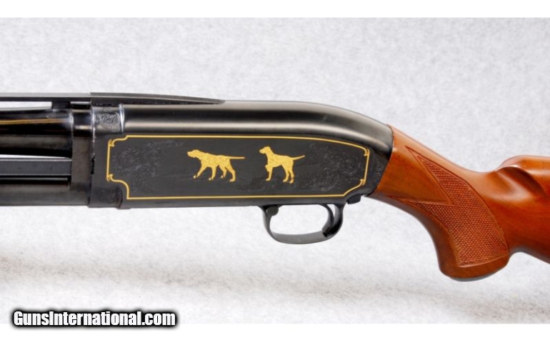 Description: SOLD Manufacturer: Japan manufacture. Caliber Info: 20 gauge. Chambers: 2 3/4" chamber. Metal Condition: Blue black barrel and receiver, gold inlaid pointing dogs and Mallards, gold border with Floral and Vine engraved highlights and engraved outdoor scenes. Wood Condition: Excellent. Bore Condition: Excellent. Barrels: 26" with a vent rib. Triggers: Pull trigger. Stock: Satin finish, highly figured walnut, with a checkered pistol grip and black grip cap. Stock Dimensions: LOP: 13 7/8", DAC: 1 1/2", DAH: 2 1/2". Fore End: Double diamond checkered fore end. Butt Pad: Checkered Winchester butt plate. Weight: 7 lbs. 2 oz. Sights: White front sight. Chokes: Improved Cylinder. Extras: Comes with the original box. Item Location: Kansas City, KS |
