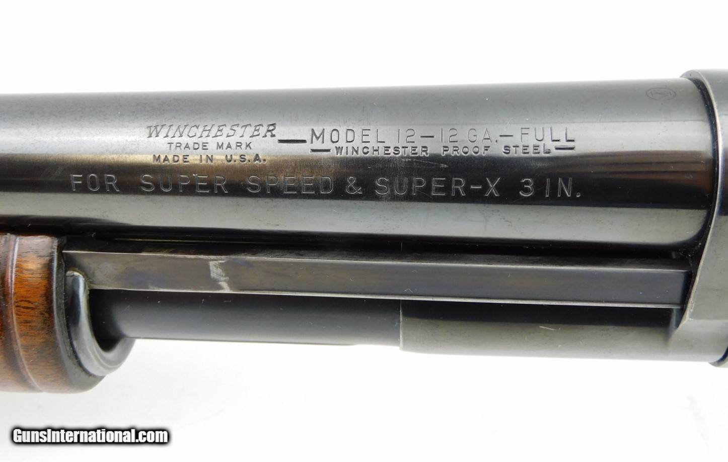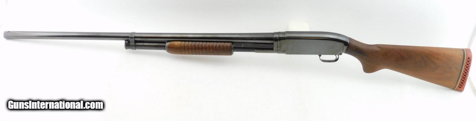 Description: Winchester Model 12 MFG 1955 12 GA 3", 30" FULL choke bbl, shiny smooth bore, blued finish, metal front sight, very tight action, LOP - 13 3/4", very nice smooth hardwood grip stock - checkered forearm, light handling marks in the grip stock, and Pachmayr White Line recoil pad. This shotgun has been refinished. Add 3% for Credit Card Shipping $35.00 (AK & HI actual cost) SOLD Curio/Relic: Yes |