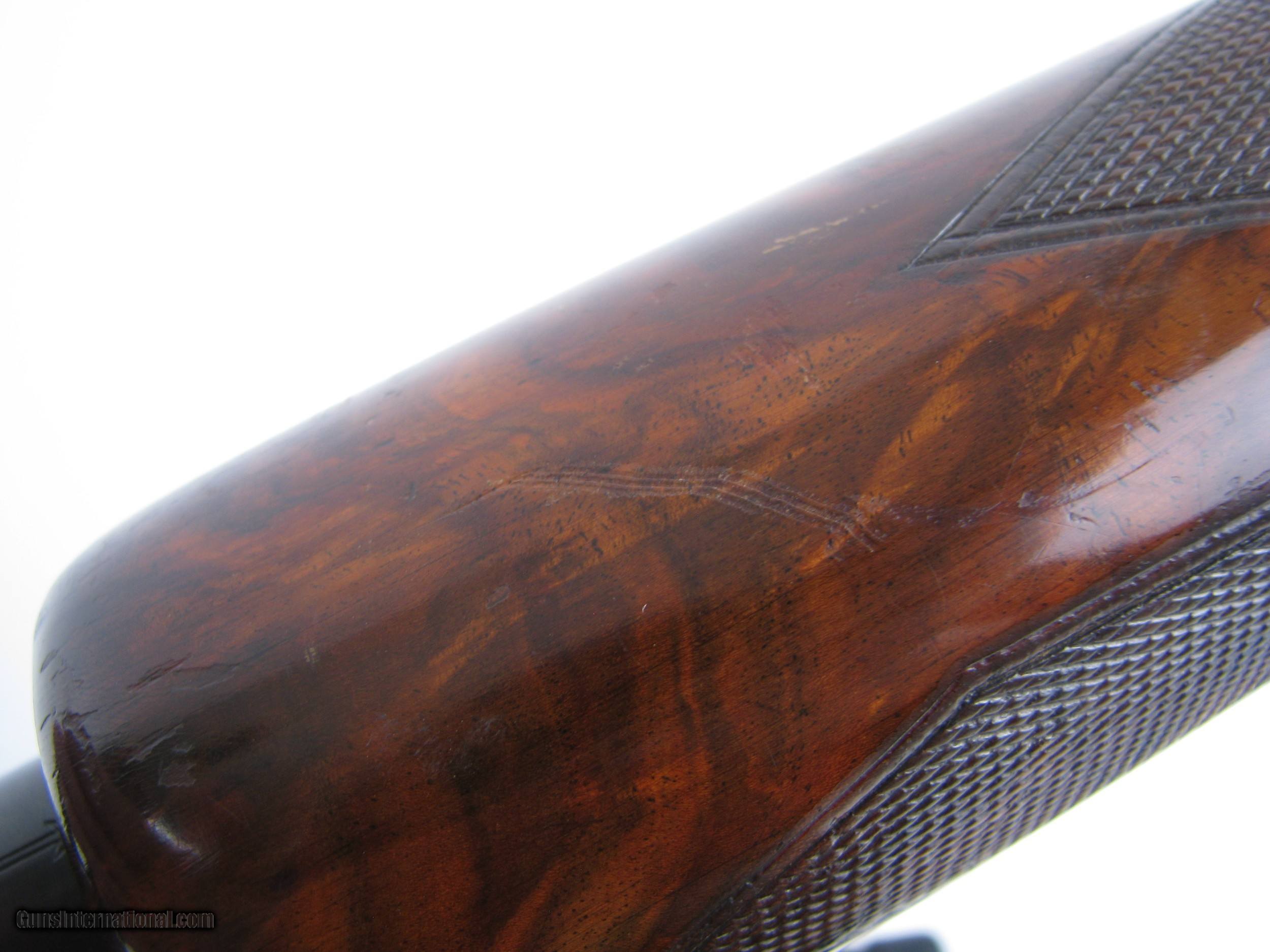 Description: ***This is a Winchester Model 12 12 gauge pigeon grade two barrel set. Both barrels have MATCHING SERIAL NUMBERS to the gun. The wood is excellent with lots of color and detail. The action works flawlessly. This has been refinished by an expert and is in fantastic shape. The barrel attached in the pics is a 26 inch skeet choke with excellent bore. The other barrel is 30 inch full choke, also with excellent bore. The length of pull is 14.5 inches long. We will be happy to provide a full set of detailed pictures upon request. This ships to your FFL for $75. I am an FFL. SOLD Antique: Yes Shotgun Gauge: 12 Gauge Manufacturer: Winchester Model: 12 Serial Number: 1931421 |