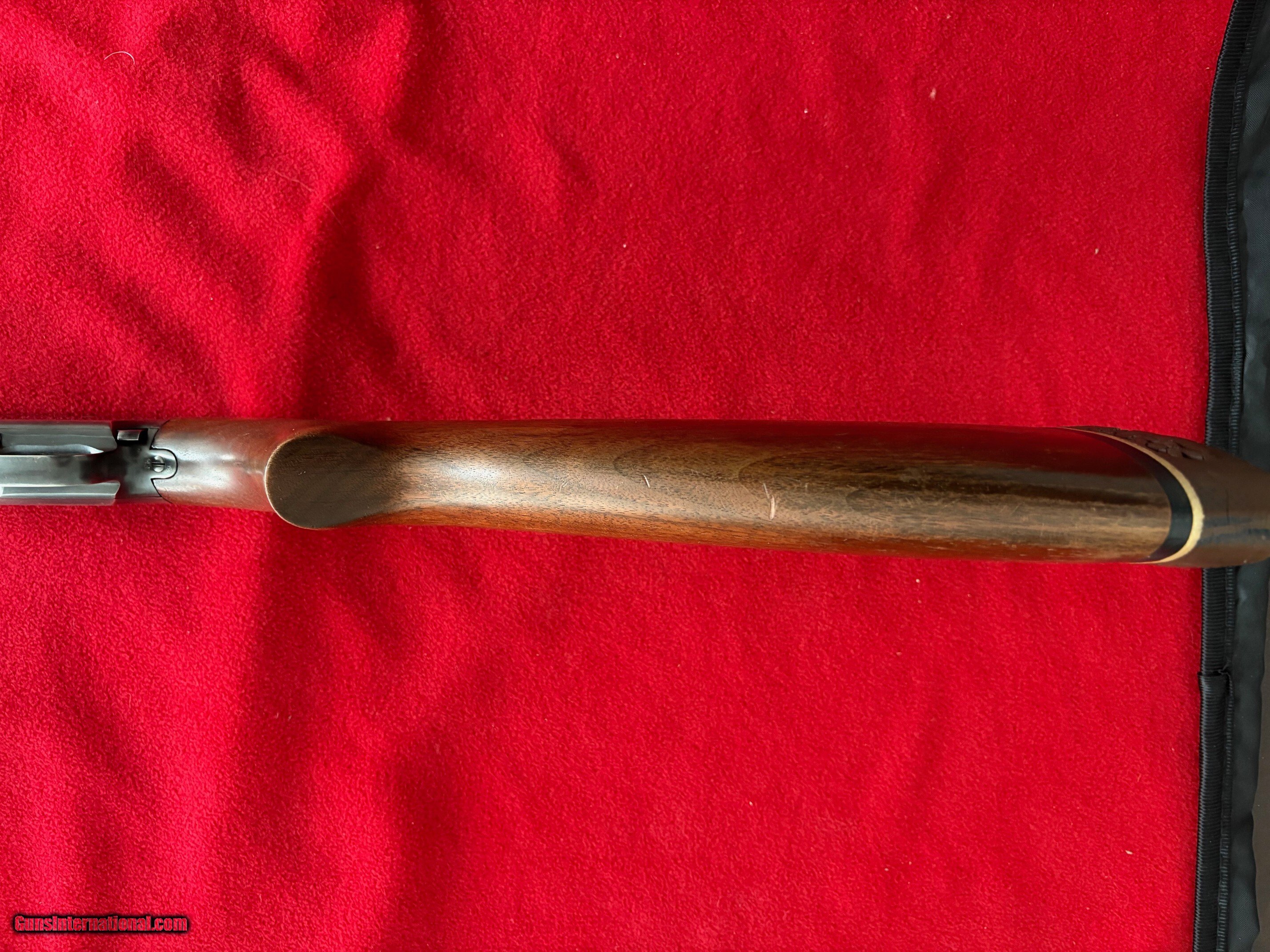 Description: Winchester 12 gauge pump shotgun was described as stripped down no frills version of the model 12 which was less expensive shotgun for the average man. This gun was only made between 1949 and 1954 with 87,937 produced. The barrel length is 28 inches with a modified choke and mechanically very solid. The White Line recoil pad was added years ago and is somewhat deteriated. The wood is free from splits and substantial scratch/dents with most of the finish in tact, blueing has some sharp area and carrying wear and a spot of surface rust on left side. The only real drawback is a previous owner etched his social security number on the bottom near the serial number shown in the photos. A little emery cloth and cold blue would solve this issue. Sales tax only collected if you live in Illinois 3% credit card fee shipping $35 Curio/Relic: Yes Shotgun Gauge: 12 Gauge Manufacturer: Winchester Model: 25 Barrel Length: 28 Chambers: 2.75 inch Condition: very good Metal Condition: Very Good Wood Condition: Very Good Bore Condition: Very Good Barrel Type: plain Action: pump Finish: Blue Weight: 8.27 Sights: front bead Manufacture Date: 1951 Chokes: modified Price: $329.00 Contact Seller |