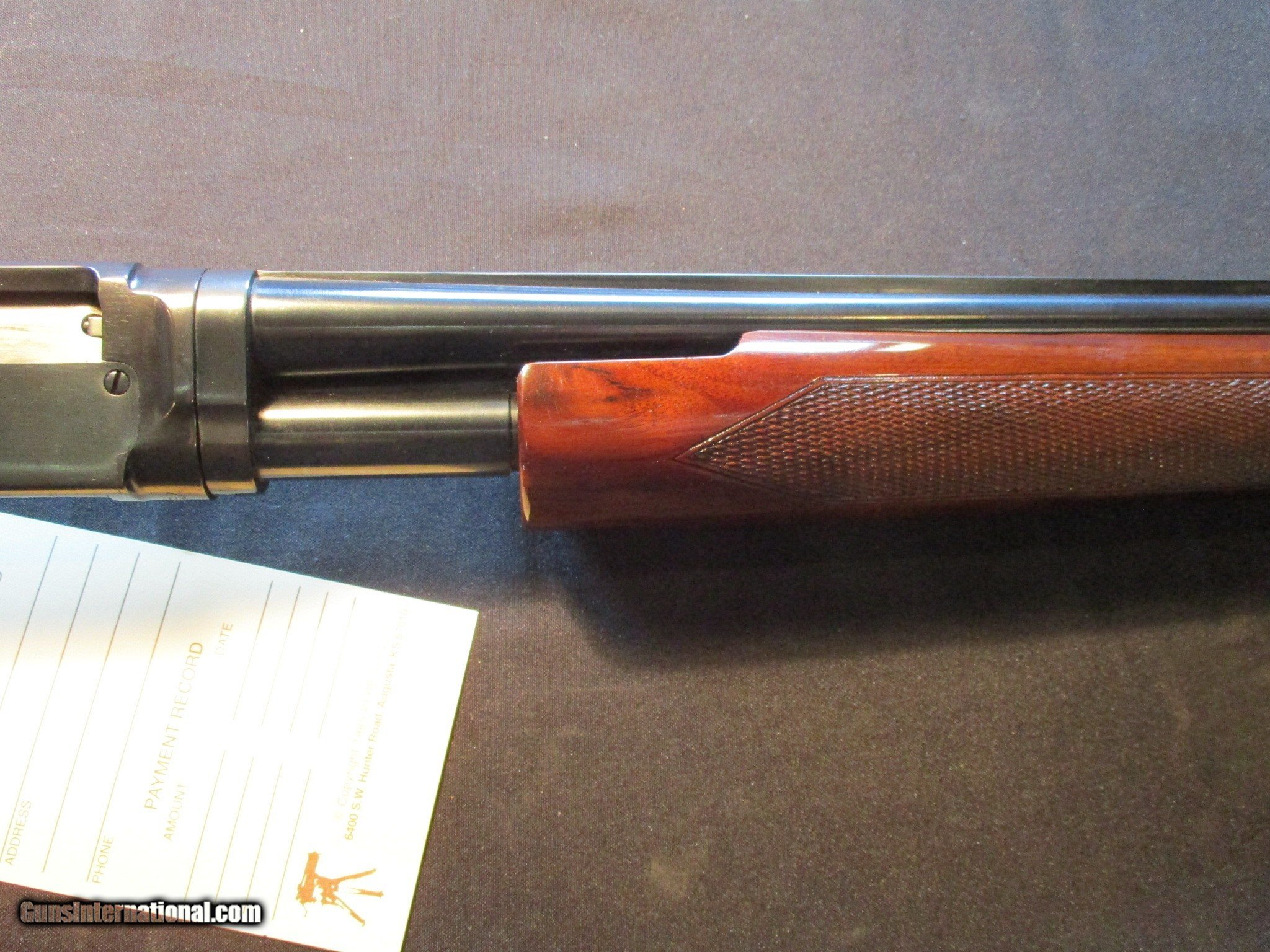 Description: Winchester Model 42 Solid Rib, 410 with 3" chambers, fixed full choke. SN is 790xx. Nice gun! Been Professional restored! Email me if you would like these pics sent to you, they will come through bigger and better than on the listing page here. Email me with any questions. I am a store front dealer, and I will close s if the gun sells locally. Once it has aI will pull it from my shelves. Please check your local laws to confirm it is legal to own in your state! Buyer pays $25 shipping and insurance to your FFL in the lower 48. AK, HI or PR is extra. I will ship to California, NO PROBLEM! All my guns come with a non firing, 3 day unconditional return privilege, from the day UPS delivers to your dealer. Buyer pays shipping both ways if the gun comes back. I can add a new hard case by PLANO for secure shipping for $25 if the buyer wishes (highly recommended, cheap insurance, really helps keep the UPS monster from eating my guns!). No sales tax on guns ship out of Kansas, guns sold in Kansas are subject to Kansas sales tax. I am a licensed FFL, and will include a copy of my FFL with the gun for your dealers records. I will ship to a C&R if the gun is eligible. I will ship to California, but you need to confirm the gun is legal where you are, California or other. I am always looking for good clean, old original Winchesters to buy, consign, or trade, especially pre '64's model 70's and model 54's. WE ALSO TRADE FOR CLASSIC CARS AND TRUCKS! Email me with any questions, and good luck! SOLD |