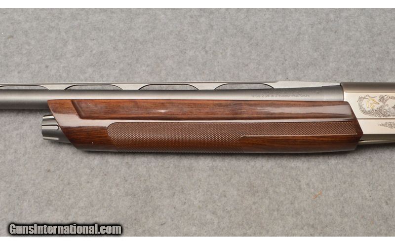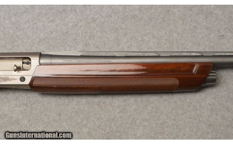 Description: This Winchester Super X3 Ducks Unlimited semi auto shotgun in 12 gauge is in excellent condition. The 28" vent rib barrel is excellent with a bright shiny bore. The stainless steel receiver is excellent with the Ducks Unlimited engraving and inlays. The dark walnut stock and checkered fore end are excellent. This Winchester shotgun comes with three(3) extra chokes(Mod./Imp. Cyl./Imp Cyl.) and the factory red hard plastic case. 12 Gauge SOLD Chambers: 2 3/4" - 3 Metal Condition: Excellent Wood Condition: Excellent Bore Condition: Excellent Barrels: 28" Vent Rib Triggers: Factory Black Curved Single Stage Stock Dimensions: LOP 14 1/4" Height 7" Length 48 Fore End: Matching Checked Dark Walnut Butt Pad: Black 1" Padded Inflex Technology Weight: 7 Lbs. 9 Oz. Sights: Front White Bead Chokes: Skeet Item Location: West Chester, OH |