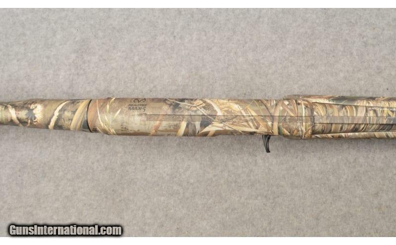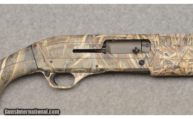 Description: This is a very nice Winchester Model Super X3 semi auto shotgun in 12 gauge. The Realtree Max-5 camo pattern barrel and receiver frame are excellent. The 28" vent rib barrel is excellent with a bright shiny bore. The trigger is smooth and light with a crisp positive release. This Winchester shotgun looks almost unused. This Super X3 shotgun does not come with a box or any accessories. 12 Gauge SOLD Chambers: 2 3/4" and 3 Metal Condition: Excellent Bore Condition: Excellent Barrels: 28 Triggers: Blued Curved Smooth Stock Dimensions: LOP 14 1/4" Height 6 1/4" Length 48 1/2 Fore End: Matching Realtree Max-5 Camo Pattern Butt Pad: Factory Inflex Black 3/4" Cushioned Rubber Pad Weight: 7 Lbs. 4 Oz. Sights: Front Red Fiber Optic Item Location: West Chester, OH |