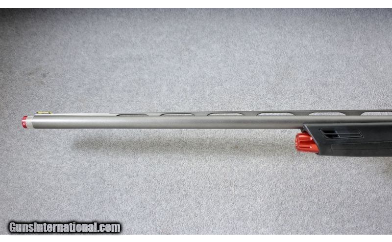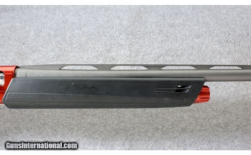 Description: The Winchester Super X-3 Flanigun Exhibition/Sporting 12 gauge semi-automatic shotgun was designed for Winchester exhibition shooter Patrick Flanigan. It features extended Invector Plus choke tubes, a Dura-Touch stock, red anodized frame and fore end cap. It is configured for exhibition or sporting clays use. It includes an additional gas piston to allow the use of a full range of factory loads from 1 oz. target loads to heavy 3" magnums, all with clockwork reliability. Manufactured 2009. 12 Gauge SOLD Chambers: 3 inch Metal Condition: Excellent Bore Condition: Excellent Barrels: 28 inch barrel Stock Dimensions: 14 3/8 inch LOP Fore End: Synthetic Butt Pad: Rubber pad Weight: 7 Lbs. 3 Oz. Sights: Vent rib with fiber optic front stick and white mid-bead Chokes: Invector Plus interchangeable choke tubes Item Location: Lehi, UT |