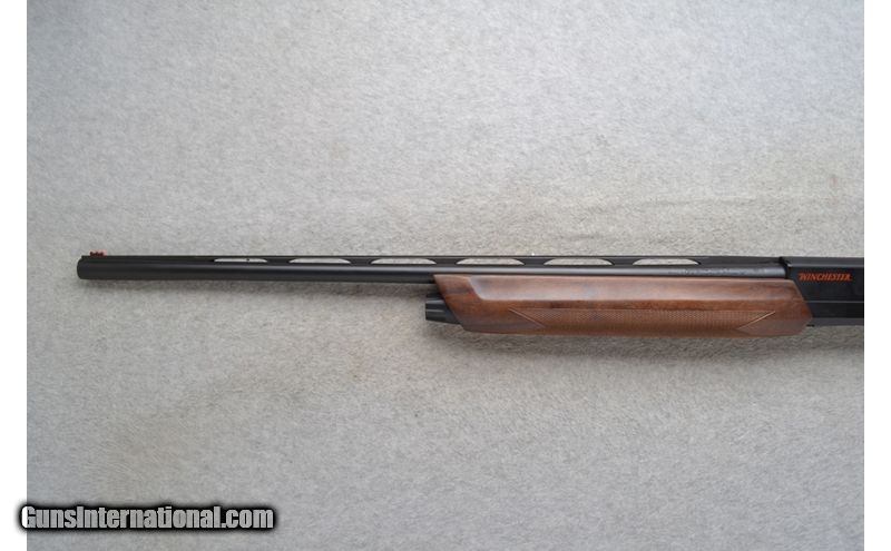 Description: This Winchester Model Super X 3 is a right hand semi-auto 20 Ga. shotgun. It has a 26 inch ventilated rib barrel in 3 inch chamber and Invector-Plus Choke. A red high visibility front sight and a white middle bead sight. The butt stock is a checkered grip walnut pistol grip. The forearm is a checkered grip walnut with finger grooves. It comes with 4 choke tubes and a choke wrench. Made by FN - Belgium 20 Gauge SOLD Chambers: 2 3/4 inch or 3 inch Semi-Auto. Metal Condition: Excellent with a few very minor scuff marks. Wood Condition: Excellent with a couple of very minor surface marks. Bore Condition: Bright and shiny. Barrels: 26 inches with a ventilated rib. Stock Dimensions: LOP 14 1/4 inches. Fore End: Checkered grip walnut with finger grooves. Butt Pad: Decelerator black rubber recoil pad. Weight: 6 lb. 8 oz. Sights: Red high visibility front. White bead middle. Chokes: "Invector-Plus Choke. Comes with 4 tubes - F,M, IC & Skeet. Choke wrench. Item Location: Richfield, WI |