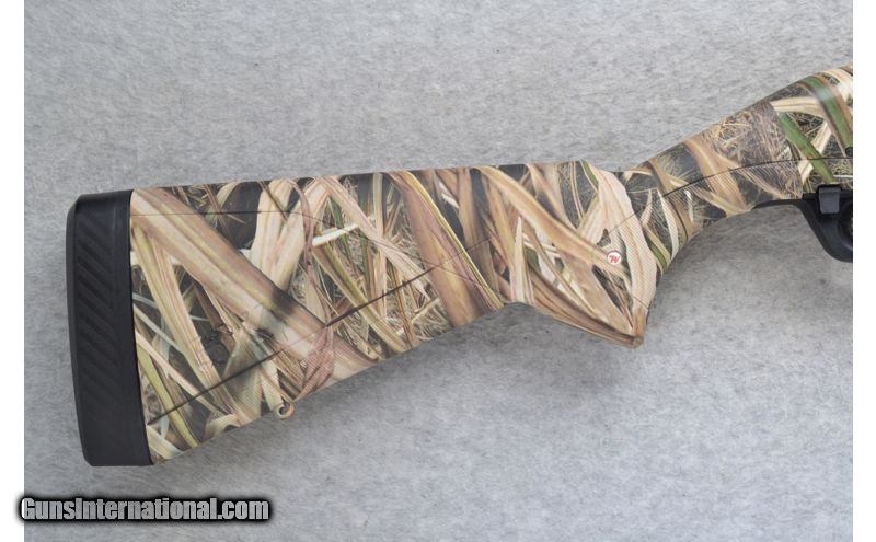 Description: This Winchester Model SX4 is a right hand semi-auto 12 Ga. shotgun in Mossy Oak Shadow Grass Blades Camo. It has a 28 inch barrel with a ventilated rib. A red high visibility front sight. In a 3.5 inch chamber it has Invector-Plus Choke. The simple self-adjusting Active Valve gas piston system makes the SX4 the fastest cycling autoloader available. SOLD Manufacturer: Made in Portugal. Caliber Info: 12 Ga. Chambers: 2 3/4 inch, 3 inch or 3 1/2 inch Semi-Auto. Metal Condition: Excellent. Wood Condition: Stock is excellent. Bore Condition: Excellent. Barrels: 28 inches in Mossy Oak Shadow Grass Blades Camo with a ventilated rib. Stock: Textured polymer pistol grip in Mossy Oak Shadow Grass Blades Camo. Stock Dimensions: LOP 14 1/4 inches. Fore End: Textured grip polymer with finger grooves in Mossy Oak Shadow Grass Blades Camo. Butt Pad: Winchester black rubber recoil pad. Weight: 7 lbs. 4 oz. Sights: Red tube high visibility front. Chokes: Invector-Plus Choke. Comes with F, M & IC choke tubes. Extras: Comes in it original box with Owners Manual, gun lock, one adjustment spacer, three choke tubes and a choke tube wrench. Item Location: Richfield, WI |