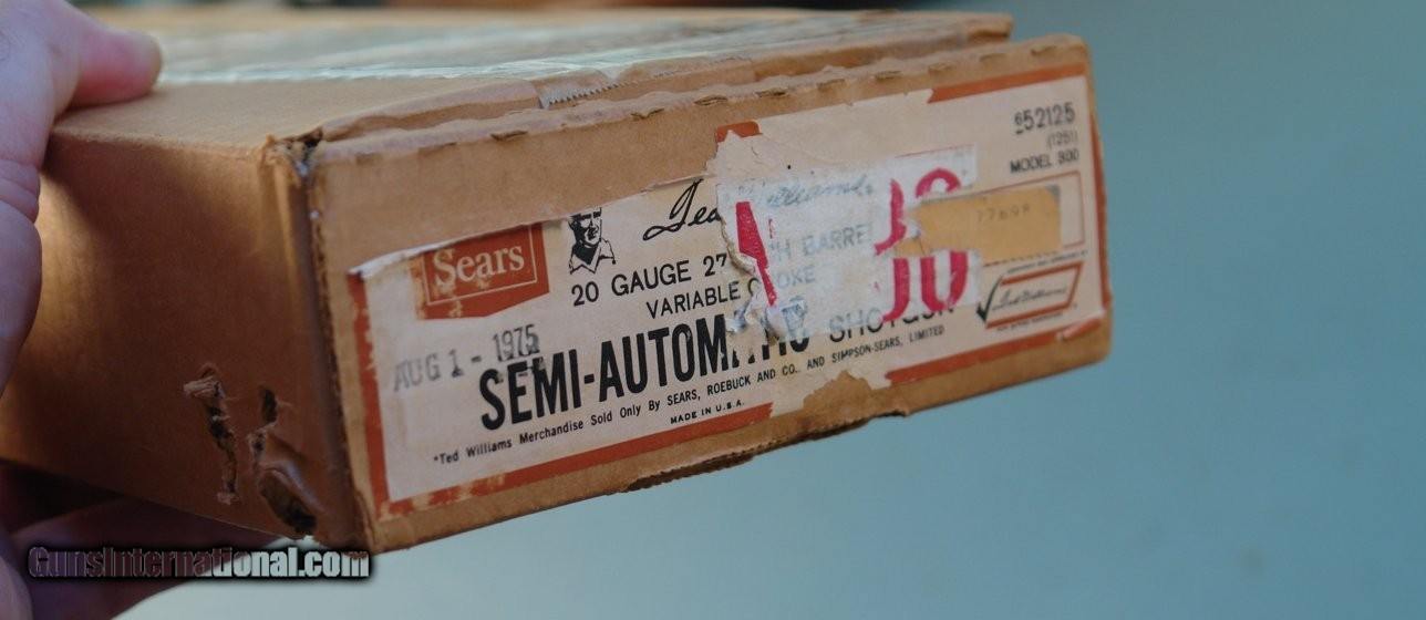 UNFIRED ORIGINAL WINCHESTER FOR SEARS TED WILLIAMS MODEL 300 SEMI-AUTO 2 3/4” 20 GA. 27” VARIABLE CHOKE SHOTGUN CIRCA 1975 IN ORIGINAL BOX W/INSTRUCTI