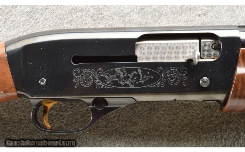 Description: This is an As New In Box Winchester Super X-1 12 Ga DU shotgun. This fine shotgun has very nice grade IV-V walnut with a checkered pistol grip and a DU grip cap. The blue receiver is free from and cosmatic issues and look like new. The 30 inch vent rib barrel is also as new. This fine looking shotgun comes in the factory box.This is one of several DU shotgun we have with the serial number of 29. SOLD Manufacturer: 1976 Caliber Info: 12 Gauge. Chambers: 2 3/4 inch semi-auto. Metal Condition: ANIB Wood Condition: ANIB Bore Condition: ANIB Barrels: 30 inch blue with a vent rib. Triggers: Single gold color. Stock: Very nice high grade walnut with a checkered pistol grip and a DU grip cap. Stock Dimensions: 14 1/4 inch LOP. Fore End: Matching checkered walnut with finger grooves. Butt Pad: Checkered Winchester logo synthetic buttplate. Weight: 8 Lbs. 8 Oz. Sights: Mid and front beads on the vent rib. Chokes: Fixed FULL. Extras: Comes in the box. Item Location: Owatonna, MN |