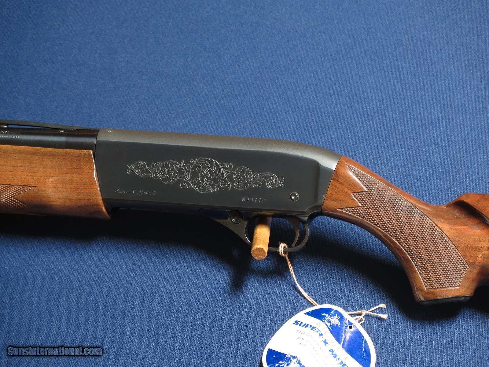 Description: Winchester Super X Model 1 Trap 12ga. 30 inch full choke vent rib. Monte Carlo stock. Looks unfired with no primer marks in box, papers and hanging tag. Beautiful grain in wood. SOLD |