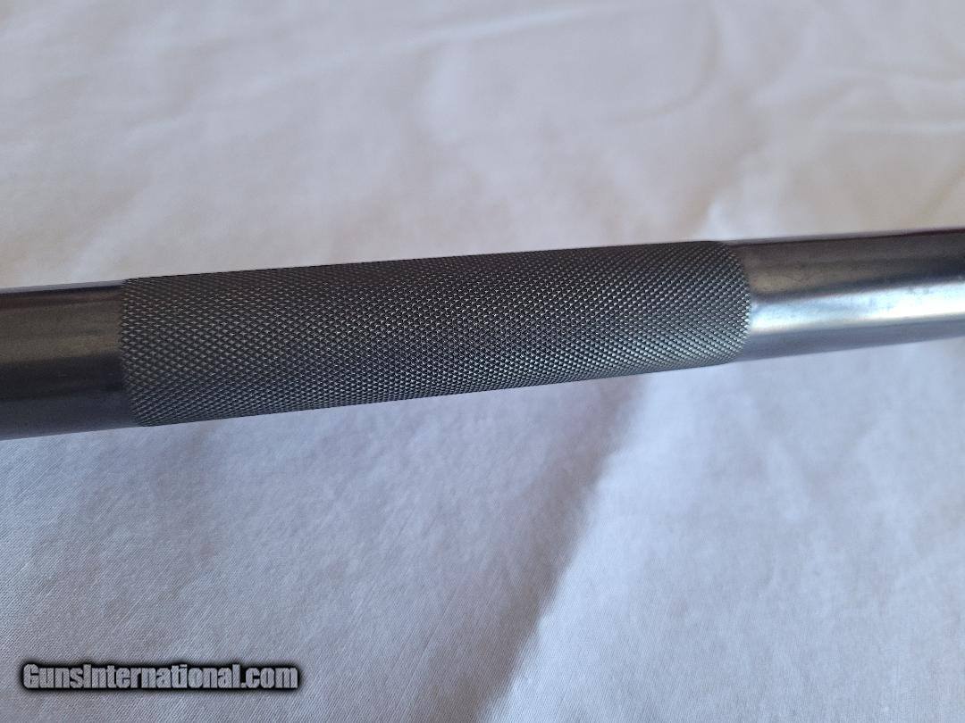 Description: SOLD!!. This is Winchester's first attempt at building a take-down semi-automatic shotgun. This Johnson design loads by grasping the knerled area of the barrel, and pulling back to open the bolt. The model 1911 was manufactured from 1911-1928, with this particular shotgun built in 1913. This gun has had the buttstock professionally repaired, and refinished to a smooth finish, with the original butt plate intact. The metal surfaces are in excellent original condition, with 80+% original factory blue remaining. The barrel is a 28" FULL choke, with an exc. bore and crisp script. This model incorporates a T/D thumb screw, (common with the Johnson design) as used on the model 1903, 05, 07, 10, and 63 Winchaster rifles. The gun takes down, and reassembles easily, as designed. Quite uncommon in this condition, and would make a great addition to your Johnson self-loader collection. SOLD Curio/Relic: Yes Manufacturer: Winchester Model: 1911 Serial Number: 39834 Barrel Length: 28 Bore: smooth Chambers: 2 3/4" 12ga. Condition: very good Metal Condition: very good Wood Condition: 80% as refinished Bore Condition: exc Barrel Type: round Action: Semi-auto Triggers: single Stock: factory Butt Pad: original Finish: Blue Sights: factory original Manufacture Date: 1913 Chokes: Full |