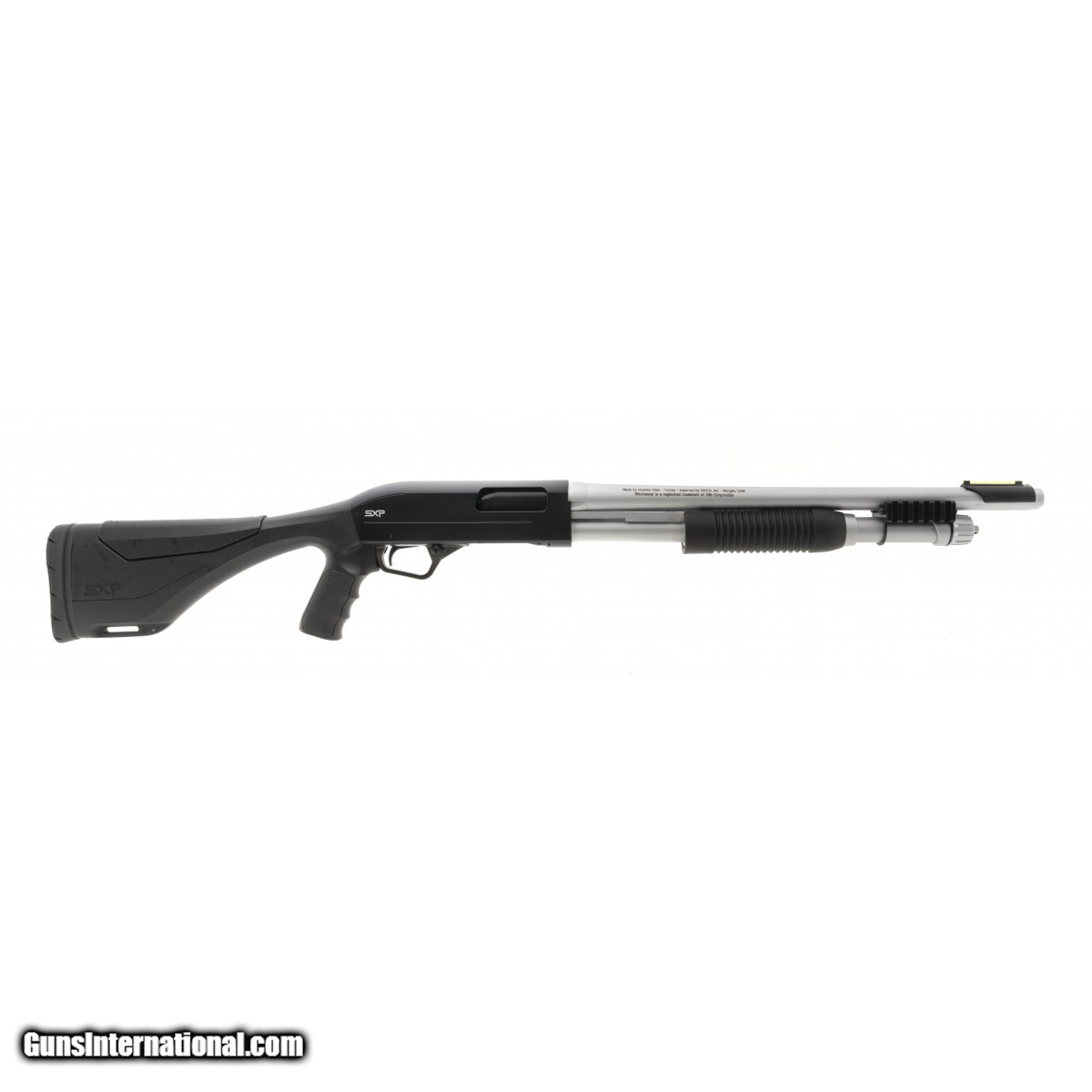 Description: " Tactical shotgun with marine finish. With 5 round capacity. Synthetic stock with extra spacer. 18.5"" barrel with green fiber optic front with picatinny mount for lights and lasers. New. UPC:048702007354 SOLD |