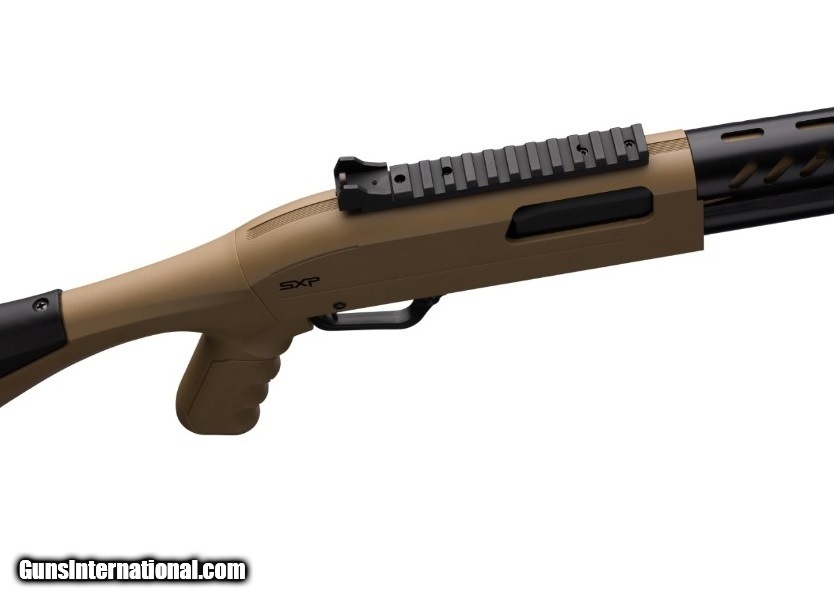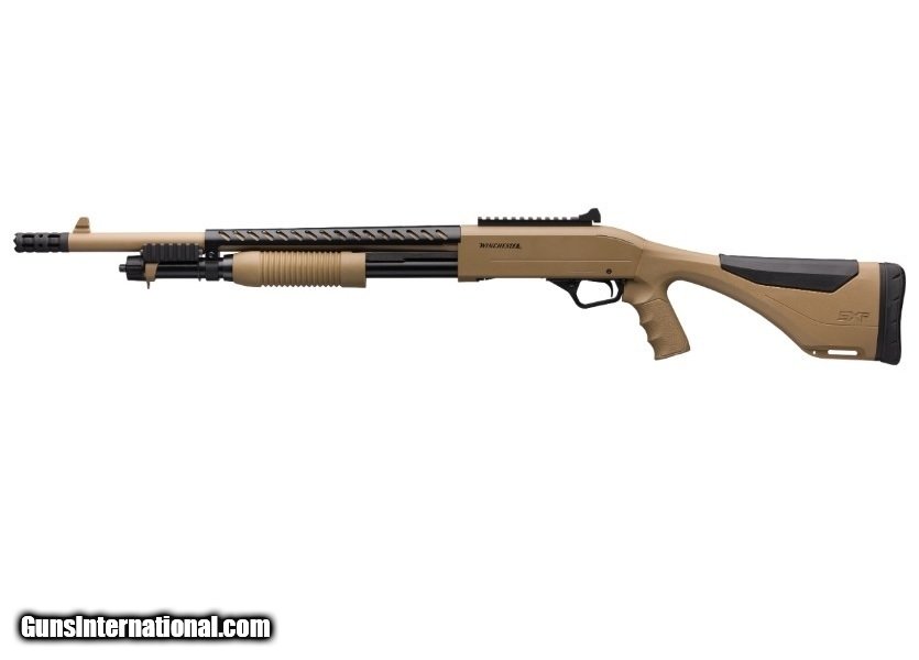 Description: Manufacturer: Winchester Repeating Arms Model: SXP Extreme Defender SKU: 512410395 Caliber: 12 Gauge Chamber: 3" Capacity: 5 Rounds (2-3/4") Chokes: Invector-Plus Flush Barrel Length: 18" Steel, Flat Dark Earth Overall Length: 38.5" Length of Pull: 13.75" Receiver: Aluminum Alloy, Flat Dark Earth Picatinny Rail Stock: Composite, Pistol Grip - Flat Dark Earth Sights: Ghost Ring, Blade Front Weight: 7 lbs 0 oz New for 2021 — Flat Dark Earth (FDE) Receiver finish; Picatinny rail with ghost ring sight. Blade front sight; Heat Shield; Hard chrome chamber and bore. Pistol grip buttstock and more. What you asked for -- the ultimate Defender ever! The Extreme Defender in Flat Dark Earth finish may be the ultimate SXP Defender shotgun in our history. And there have been a few great Winchester pump guns before it starting back in the late 19th Century. The complete package. The complete package is here, right now from the heat shield and Door Breacher choke tube. With all the adjustable features you have wanted. This is a shotgun that you can make fit you perfectly. Which adds to the fun at the range. Fast. Very fast. And because it's a Winchester SXP it has our fast rotary bolt system and smooth action that makes pumping easier for much faster follow-up shots. Features: