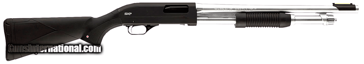 Description: Guns Listing ID: 416783 The Winchester SXP Defender is an inertia assisted pump action shotgun with a fixed cylinder choked barrel for wide patterning and additional accuracy while firing Foster-type slugs. This shotgun features non-glare metal surfaces synthetic textured stock and ribbed forearm Inflex technology recoil pad drilled and tapped aluminum alloy receiver black chrome finish rotary bolt steel 18 barrel hard chrome-plated cylinder and bore brass bead front sight crossbolt safety and drop-out trigger group. Details Action Pump - Gauge 20 - Chamber 3 - Capacity 5 - Finish Matte Chrome - Stock Black Composite - Sight TruGlo Fiber Optic - Choke System Invector-Plus Flush - Barrel Length 18 - Overall Length 38.5 - Weight 6 lb - Neither snow nor rain nor heat nor gloom. The Super X Pump Marine Defender is built to resist the roughest weather on your boat at your cabin or in your camp. Whether its multi-gun competition or protecting your home and family the Marine Defender is a perfect choice. Its inertia-assisted action six-shell total ammo capacity durable composite stock and ribbed forearm give you an edge against any odds. Get a Super X Pump and own a faster blaster. - MATTE HARD CHROME PLATING on barrel magazine tube slide arms and other components for the ultimate protection against wear and the elements - ALLOY RECEIVER is drilled and tapped for scope bases - SYNTHETIC STOCK WITH TEXTURED GRIPPING SURFACES gives your hands a sure non-slip grip and the non-glare matte black finish wont give you away - TACTICAL RIBBED FOREARM for better control when you need it most - HARD CHROME-PLATED CHAMBER AND BORE make these surfaces highly resistant to wear and corrosion - TRADITIONAL BRASS BEAD FRONT SIGHT plus a removable TRUGLO fiber-optic sight offer a fast natural sight picture - INVECTOR-PLUS CHOKE TUBE SYSTEM with cylinder choke installed works with slugs or buckshot - ROTARY BOLT with four massive lugs provides strength and solid lockup - DROP-OUT TRIGGER GROUP allows easy cleaning - CROSSBOLT SAFETY is easily operated even with gloves - INFLEX TECHNOLOGY RECOIL PAD directs felt recoil down and away from your cheek to reduce flinch and fatigue. SOLD Manufacturer: WINCHESTER Model: SXP MARINE DEFENDER Condition: new Barrels: 18 barrel Gauge Info: 20 GA Finish: BLACK |