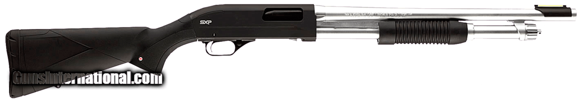 Description: Guns Listing ID: 572661 The Winchester SXP Defender is an inertia assisted pump action shotgun with a fixed cylinder choked barrel for wide patterning and additional accuracy while firing Foster-type slugs. This shotgun features non-glare metal surfaces synthetic textured stock and ribbed forearm Inflex technology recoil pad drilled and tapped aluminum alloy receiver black chrome finish rotary bolt steel 18 barrel hard chrome-plated cylinder and bore brass bead front sight crossbolt safety and drop-out trigger group. Details Action Pump - Gauge 20 - Chamber 3 - Capacity 5 - Finish Matte Chrome - Stock Black Composite - Sight TruGlo Fiber Optic - Choke System Invector-Plus Flush - Barrel Length 18 - Overall Length 38.5 - Weight 6 lb - Neither snow nor rain nor heat nor gloom. The Super X Pump Marine Defender is built to resist the roughest weather on your boat at your cabin or in your camp. Whether its multi-gun competition or protecting your home and family the Marine Defender is a perfect choice. Its inertia-assisted action six-shell total ammo capacity durable composite stock and ribbed forearm give you an edge against any odds. Get a Super X Pump and own a faster blaster. - MATTE HARD CHROME PLATING on barrel magazine tube slide arms and other components for the ultimate protection against wear and the elements - ALLOY RECEIVER is drilled and tapped for scope bases - SYNTHETIC STOCK WITH TEXTURED GRIPPING SURFACES gives your hands a sure non-slip grip and the non-glare matte black finish wont give you away - TACTICAL RIBBED FOREARM for better control when you need it most - HARD CHROME-PLATED CHAMBER AND BORE make these surfaces highly resistant to wear and corrosion - TRADITIONAL BRASS BEAD FRONT SIGHT plus a removable TRUGLO fiber-optic sight offer a fast natural sight picture - INVECTOR-PLUS CHOKE TUBE SYSTEM with cylinder choke installed works with slugs or buckshot - ROTARY BOLT with four massive lugs provides strength and solid lockup - DROP-OUT TRIGGER GROUP allows easy cleaning - CROSSBOLT SAFETY is easily operated even with gloves - INFLEX TECHNOLOGY RECOIL PAD directs felt recoil down and away from your cheek to reduce flinch and fatigue. SOLD Manufacturer: WINCHESTER Model: SXP MARINE DEFENDER Condition: new Barrels: 18 BARREL Gauge Info: 20 GA Finish: BLACK |
