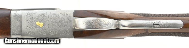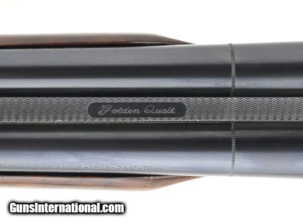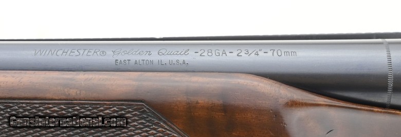 Description: " Winchester Golden Quail Edition 28 Gauge shotgun. Scarce 28 Gauge double, only 500 made in each gauge. Has 25½” barrels and a straight stock. Very good condition with very light use. A very desirable 28 Gauge Golden Quail Edition.