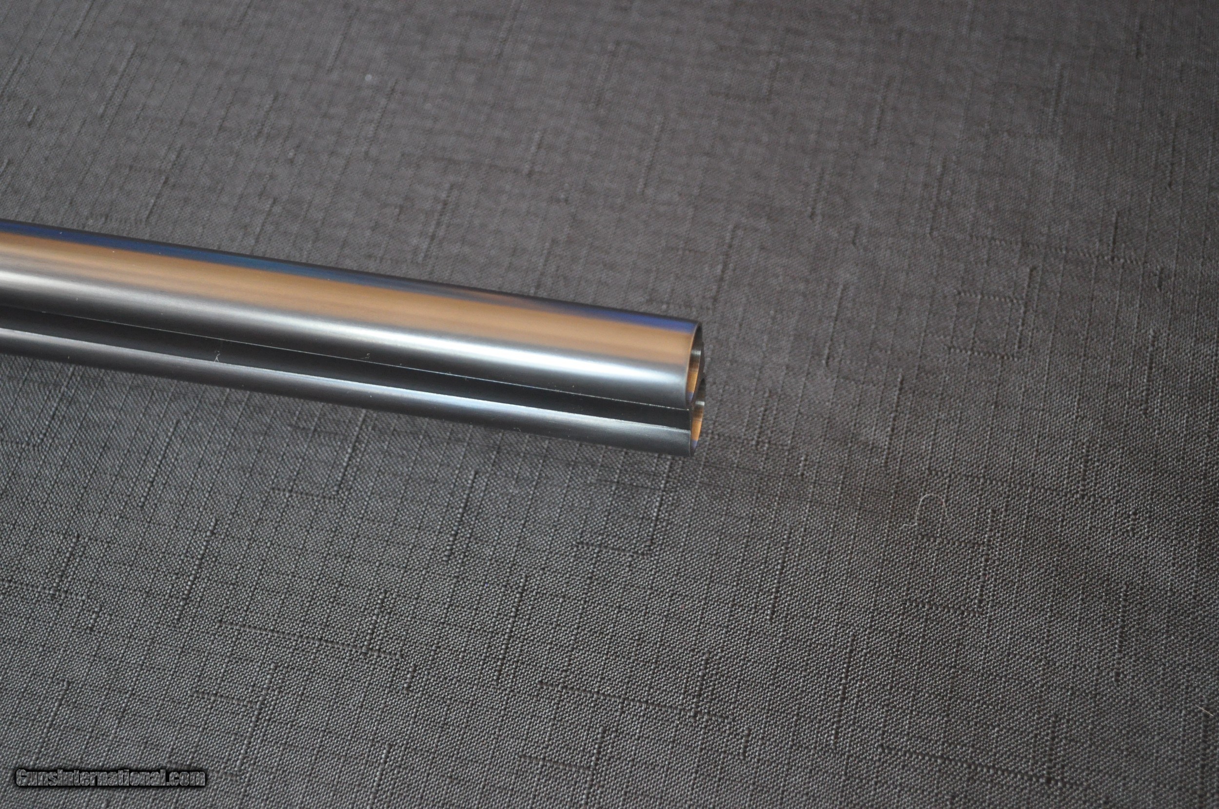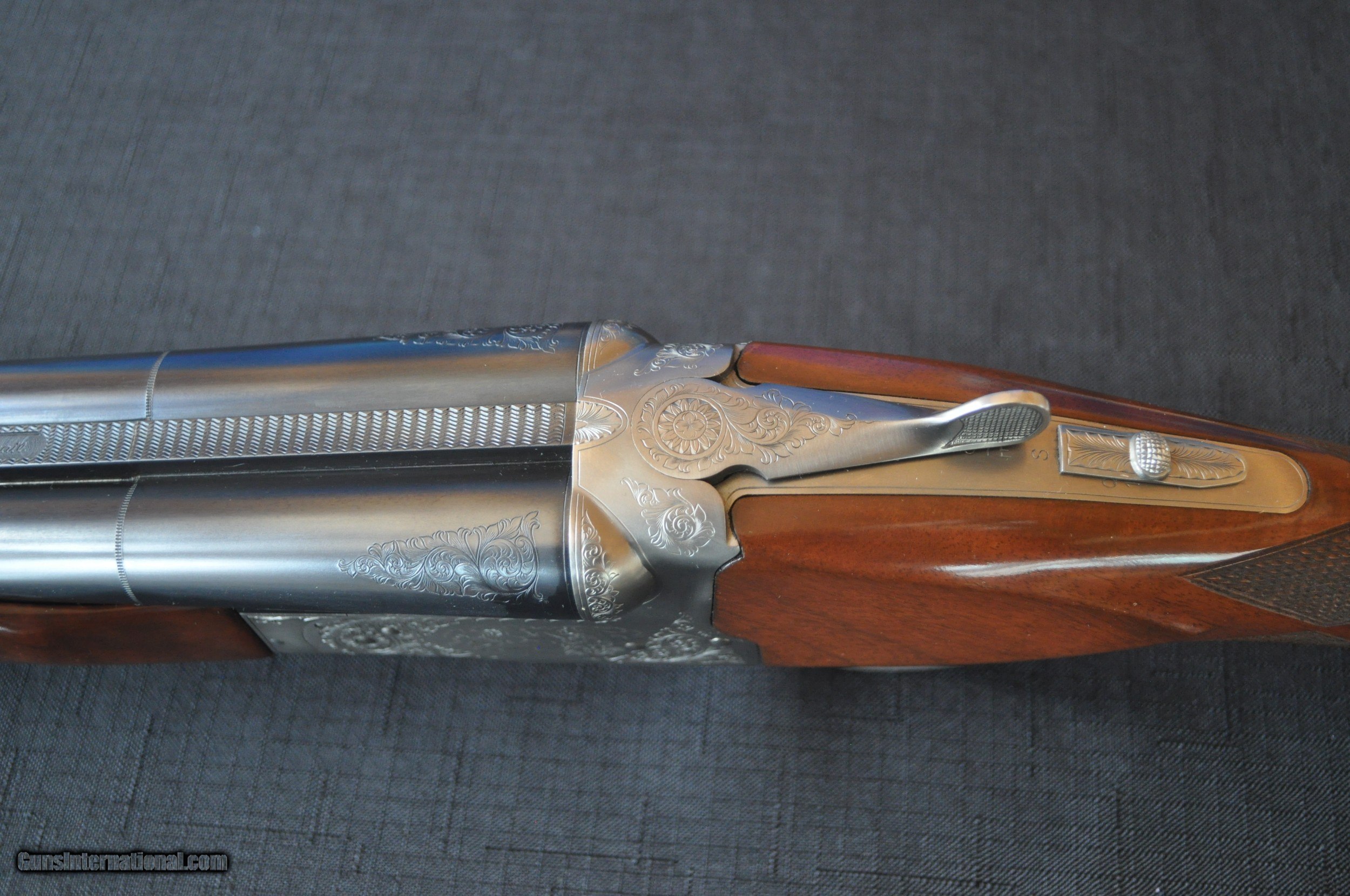 Description: Offered for sale is a rare 28-gauge Winchester model 23 Golden Quail, side by side. The Winchester 23 Golden Quail 28ga was introduced in 1985 and this 28ga was one of 500 produced, having serial number GQ-57E. This shotgun features 25 ½ inch barrels, improved cylinder/modified fixed chokes, a solid raised rib and a white front beaded sight. The receiver is scrolled engraved with surrounding quail and hunting dog scenes on the sides and a gold raised relief quail head on the bottom. The straight grip stock and beavertail forend are made of checkered walnut and the rubber but pad is the original Winchester. The trigger is single selective, the safety is automatic, and this gun comes with ejectors. This shotgun is in perfect original condition apart from a nick in the stock seen in picture number 14. An additional stock has been purchased and comes with the gun. This great little bird gun weighs 6lbs 14oz and measures out at a LOP of 14 1/2, DAC of 1 1/2 and DAH of 2 3/8. SOLD Shotgun Gauge: 28 Gauge Model: Golden Quail Serial Number: GQ-57E Barrel Length: 25 1/2 Stock Comb: 1 1/2 Stock Heel: 2 3/8 LOP: 14 1/2 Weight: 6lbs 14oz |
