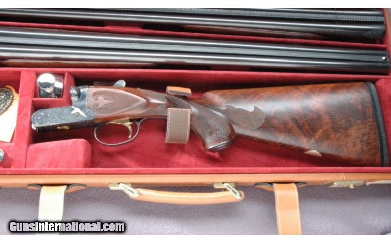 Description: Custom 2 barrel hunting set, one of 500 sets made (#481) SOLD Caliber Info: 20 and 28 Gauge Barrel with Forearm Sets Metal Condition: Excellent, Some Light Wear and Handling Marks Wood Condition: Excellent, Few Small Flaws Bore Condition: Bright Barrels: 20 GA 25 1/2" / 28 GA 25 1/2 Stock: Premium Gloss Finish Stock Dimensions: 14" LOP Fore End: Note - Small Split on 20 GA Foream, See Photo Butt Pad: Factory Pad Weight: 7 Lbs Sights: Single White Bead Both Barrel Sets Extras: With custom fitted leather case Item Location: La Vista, NE |