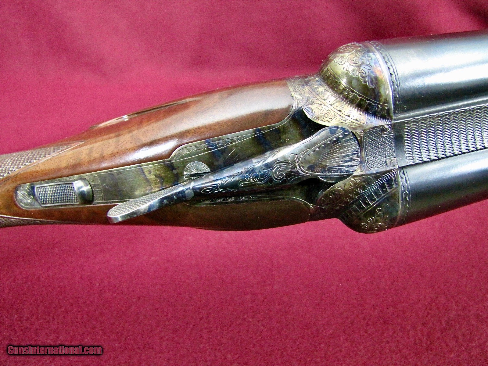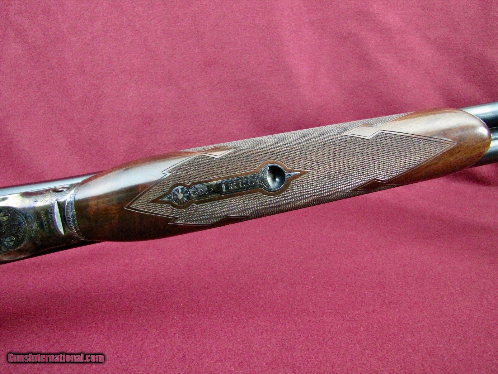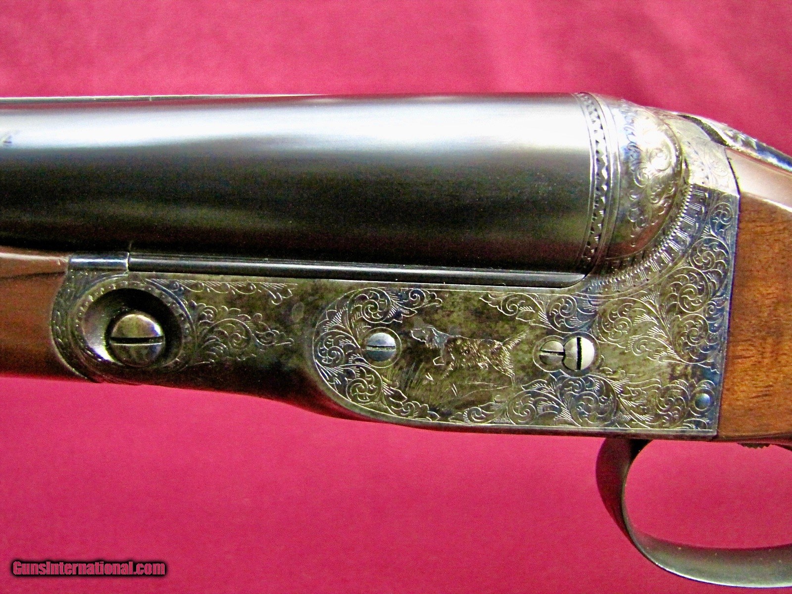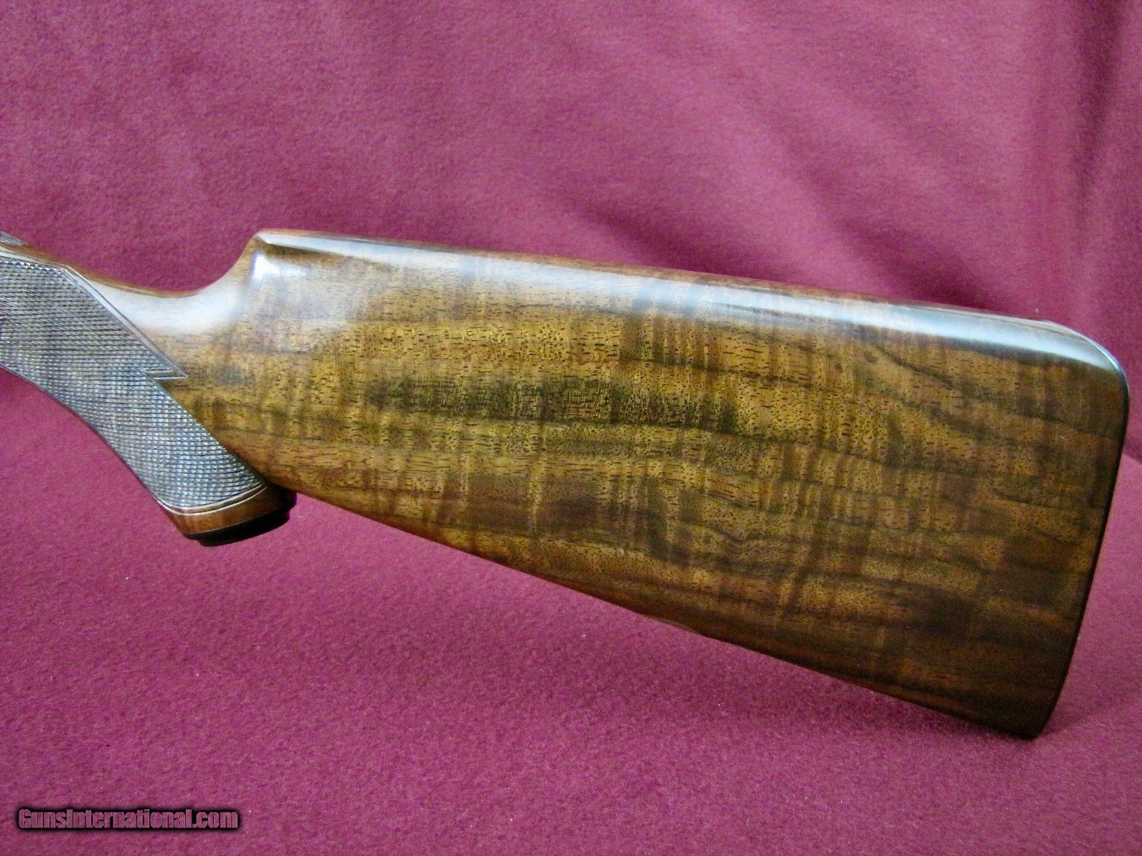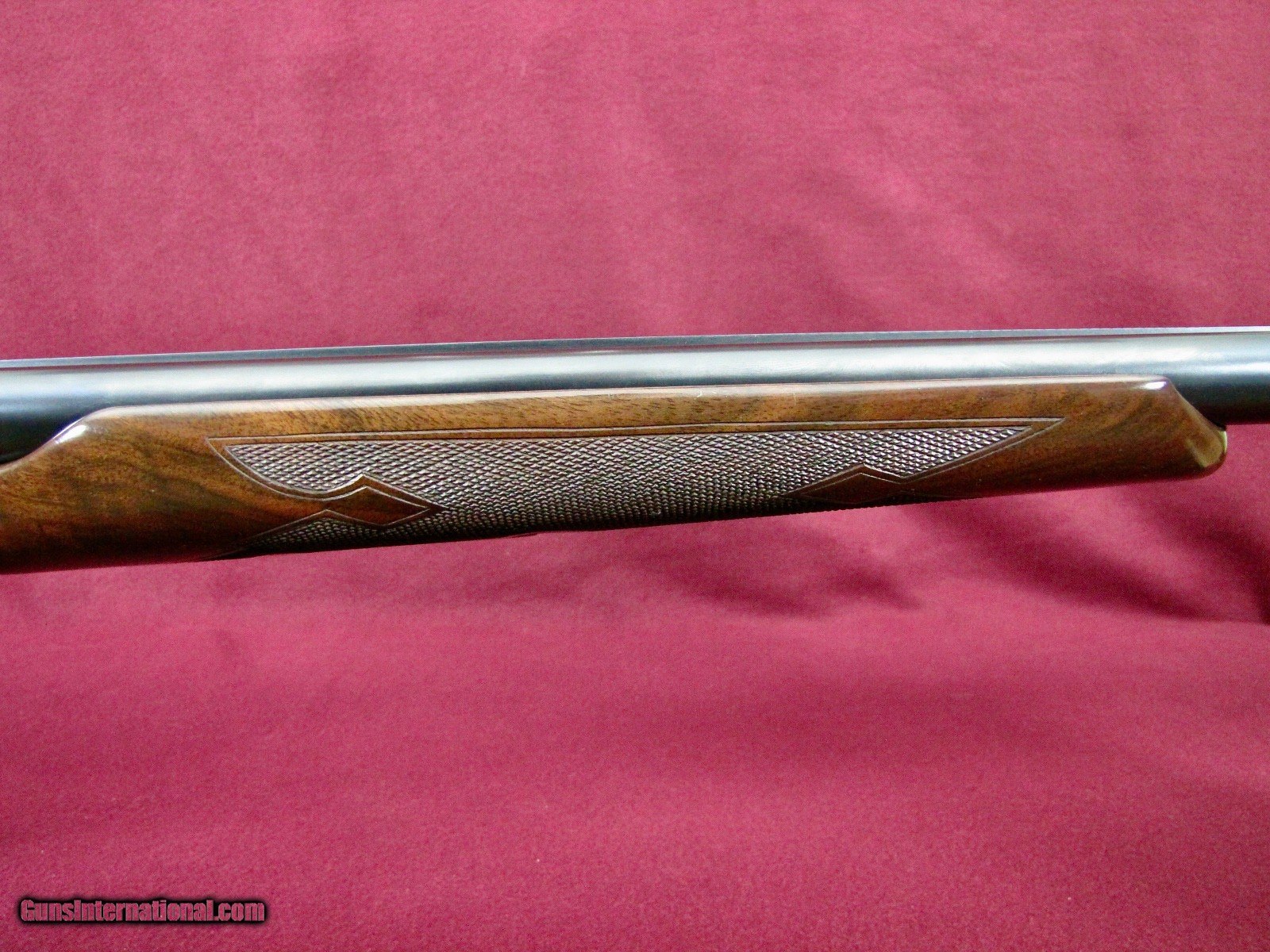 Description: I have for sale a beautiful Winchester Parker Reproduction 12 gauge 2 barrel set with pistol grip, single selective trigger, and beavertail forend. These 12 gauge guns were only built in 1988 and 1989 and there were approximately 1800 of them built. This was the total run of all DHE grade 12 gauge guns and there were very few of these guns built in a two barrel set making this gun rather special. These reproduction guns were built to the exact specifications of the original Parkers and they have the benefit of newer and better metals used and tighter tolerances because of the modern machining used. The serial number on this gun is 12-00987. The barrels are 26 inches, 2 3/4 inch chambers and choked Improved Cylinder and Modified, and 28 inches 2 3/4 inch chambers and choked Modified and Full. Both sets of barrels have bores that measure exactly the same at .732 showing how accurately these guns were built. Weight of the gun with 26 inch barrels is 6 pounds 14 ounces and with the 28 inch barrels exactly 7 pounds. Stock dimensions are 1 7/16 X 2 1/4 X 14 1/4 from the rear position single selective trigger over the skeleton butt. The gun does have a slight amount of cast off for the right hand shooter. The beavertail forend is very nice especially if you use the guns for skeet or sporting clays where the barrels tend to get hot from shooting. Condition of the gun is just about perfect and if I didn't know better I would say it is unfired, however the original owner told me they shot one round of skeet with the gun. Take a look at the pictures and look at the nice Fiddleback grain in the stock. Price of this gun is $5600 plus $75 shipping to your FFL. Gun comes with the original luggage case, dust cover, snap caps, keys with fob, and oil bottle. As always there is a three day non-firing inspection period with this gun. Contact me with any questions you might have. SOLD Shotgun Gauge: 12 Gauge Manufacturer: Winchester Parker Reproduction Model: DHE Serial Number: 12-00987 Barrel Length: 26 and 28 Chambers: 2 3/4 Ejectors: Selective Well Timed Condition: Excellent / As New Bore Condition: Excellent / As New Barrels: SXS Action: Boxlock Triggers: Single Selective Stock: Capped Pistol Grip Stock Comb: 1 7/16 Stock Heel: 2 1/4 Stock Cast: Slight Cast off Fore End: Beavertail Butt Pad: Skeleton LOP: 14 1/4 Rib: Solid Concave game rib Weight: 6-14 or 7-0 Manufacture Date: 1988-89 Chokes: IC & Mod, Mod & Full Engraving: DHE Style Extras: Snap Caps and Keys Case: Original Luggage and Cover |