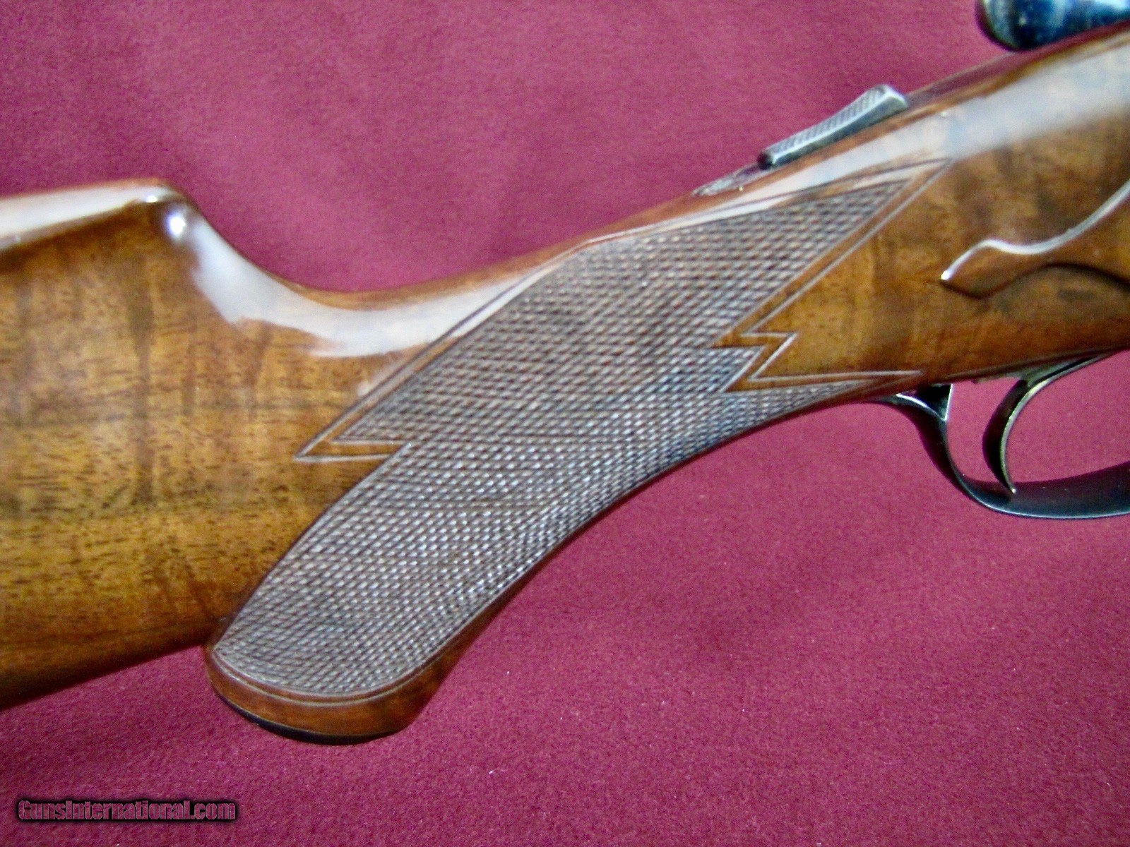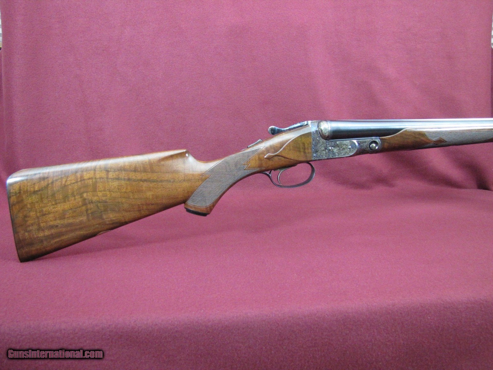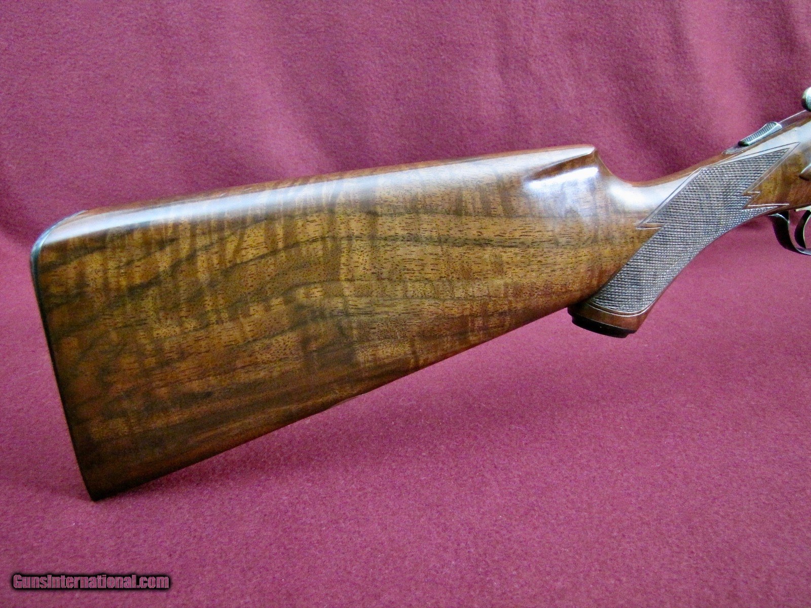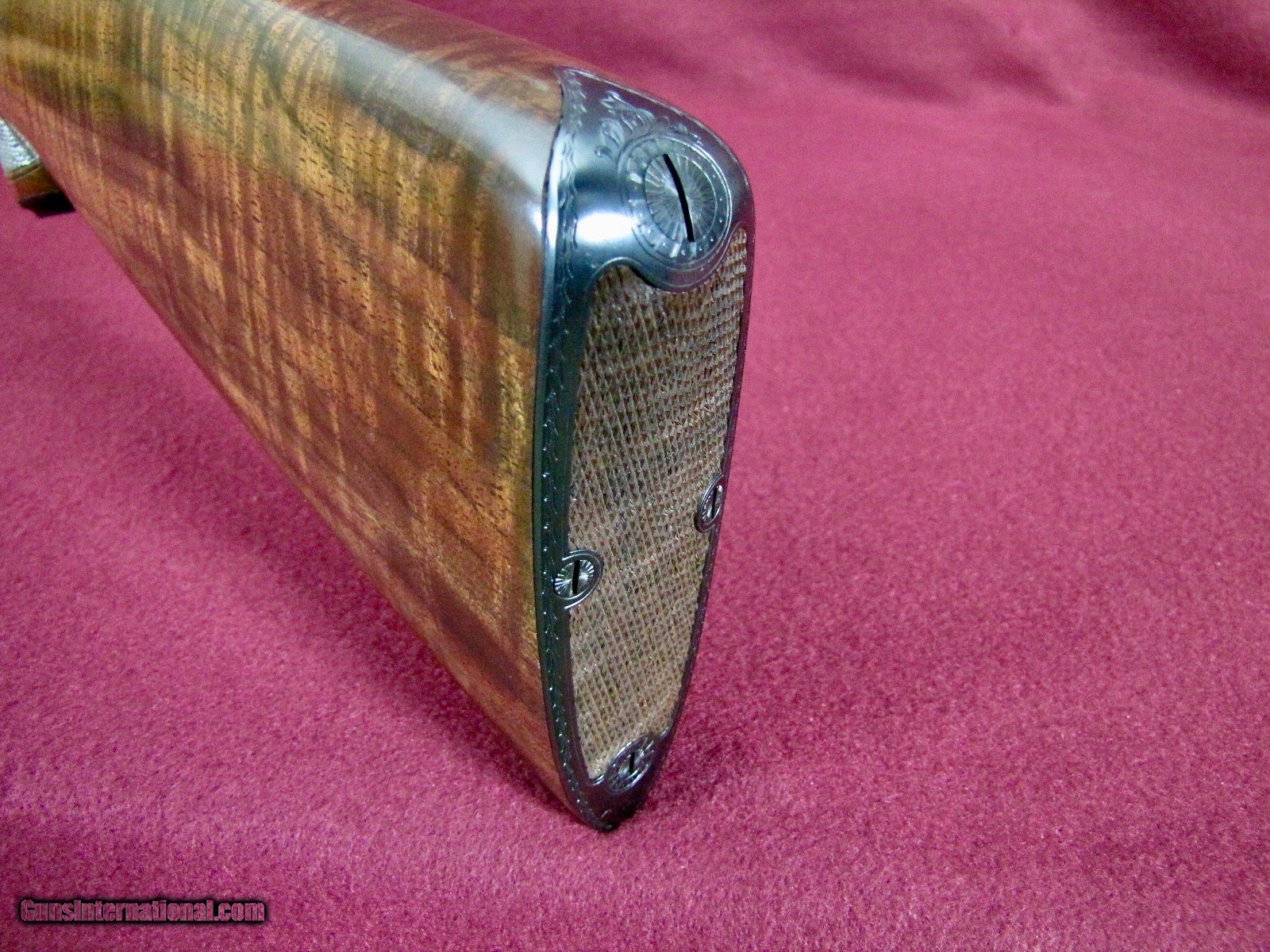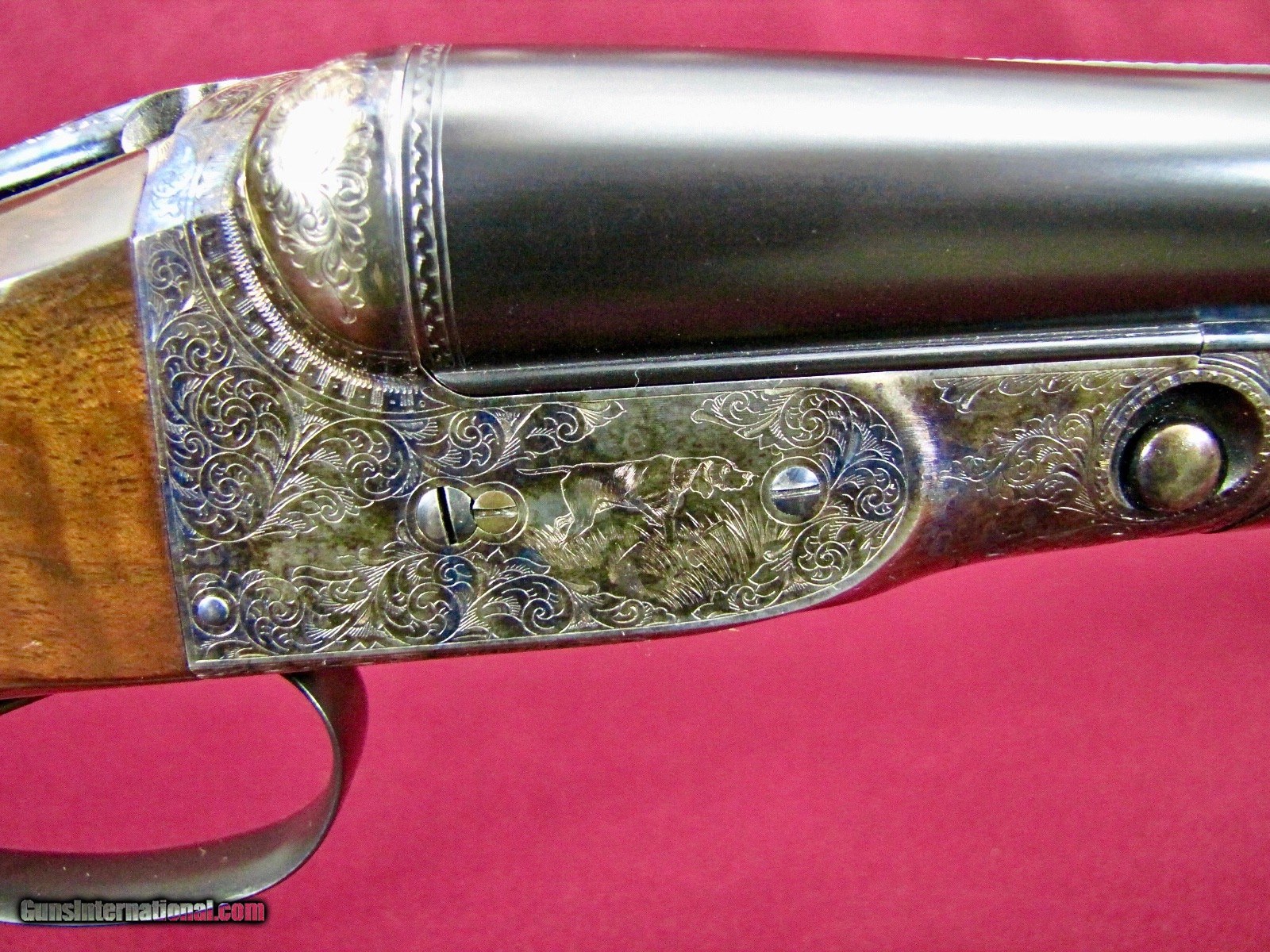 Description: I have for sale a beautiful Winchester Parker Reproduction 12 gauge 2 barrel set with pistol grip, single selective trigger, and beavertail forend. These 12 gauge guns were only built in 1988 and 1989 and there were approximately 1800 of them built. This was the total run of all DHE grade 12 gauge guns and there were very few of these guns built in a two barrel set making this gun rather special. These reproduction guns were built to the exact specifications of the original Parkers and they have the benefit of newer and better metals used and tighter tolerances because of the modern machining used. The serial number on this gun is 12-00987. The barrels are 26 inches, 2 3/4 inch chambers and choked Improved Cylinder and Modified, and 28 inches 2 3/4 inch chambers and choked Modified and Full. Both sets of barrels have bores that measure exactly the same at .732 showing how accurately these guns were built. Weight of the gun with 26 inch barrels is 6 pounds 14 ounces and with the 28 inch barrels exactly 7 pounds. Stock dimensions are 1 7/16 X 2 1/4 X 14 1/4 from the rear position single selective trigger over the skeleton butt. The gun does have a slight amount of cast off for the right hand shooter. The beavertail forend is very nice especially if you use the guns for skeet or sporting clays where the barrels tend to get hot from shooting. Condition of the gun is just about perfect and if I didn't know better I would say it is unfired, however the original owner told me they shot one round of skeet with the gun. Take a look at the pictures and look at the nice Fiddleback grain in the stock. Price of this gun is $5600 plus $75 shipping to your FFL. Gun comes with the original luggage case, dust cover, snap caps, keys with fob, and oil bottle. As always there is a three day non-firing inspection period with this gun. Contact me with any questions you might have. SOLD Shotgun Gauge: 12 Gauge Manufacturer: Winchester Parker Reproduction Model: DHE Serial Number: 12-00987 Barrel Length: 26 and 28 Chambers: 2 3/4 Ejectors: Selective Well Timed Condition: Excellent / As New Bore Condition: Excellent / As New Barrels: SXS Action: Boxlock Triggers: Single Selective Stock: Capped Pistol Grip Stock Comb: 1 7/16 Stock Heel: 2 1/4 Stock Cast: Slight Cast off Fore End: Beavertail Butt Pad: Skeleton LOP: 14 1/4 Rib: Solid Concave game rib Weight: 6-14 or 7-0 Manufacture Date: 1988-89 Chokes: IC & Mod, Mod & Full Engraving: DHE Style Extras: Snap Caps and Keys Case: Original Luggage and Cover |
