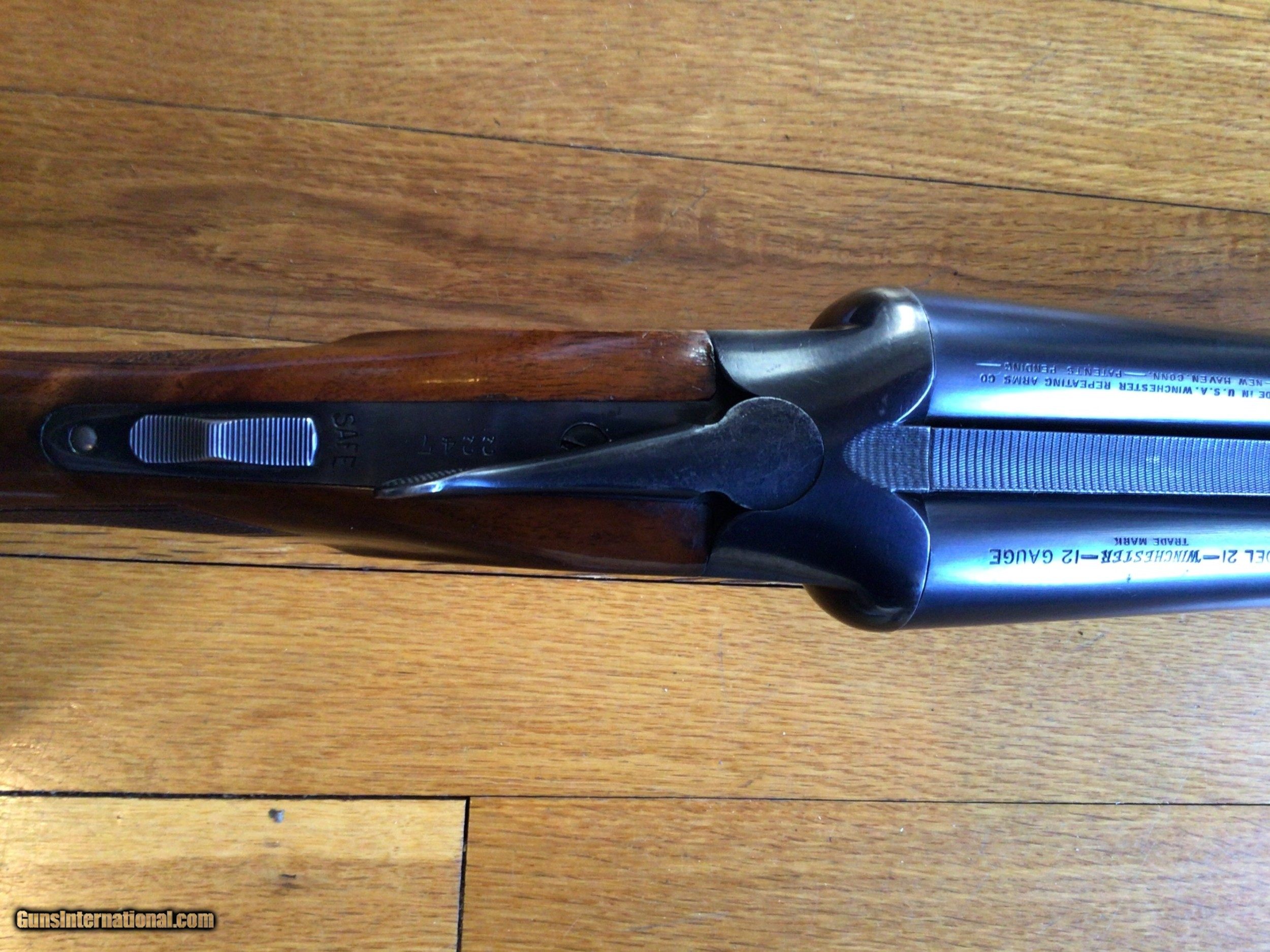 Description: winchester model 21 shotgun 30in barrels mod and full early DOUBLE TRIGGERS,extractors,short chambers pad added,but gun may have been restocked with winchester wood,great fit with some nice figure this gun is tight as new,the barrels ring like a bell,mint bores there looks like a crack on the top right of the forearm but it is tight and does not look like its going anywhere SOLD |