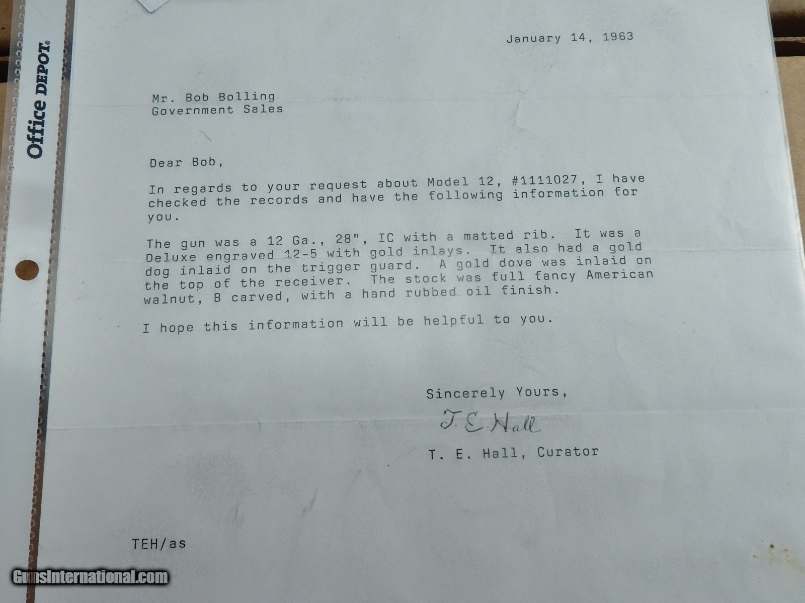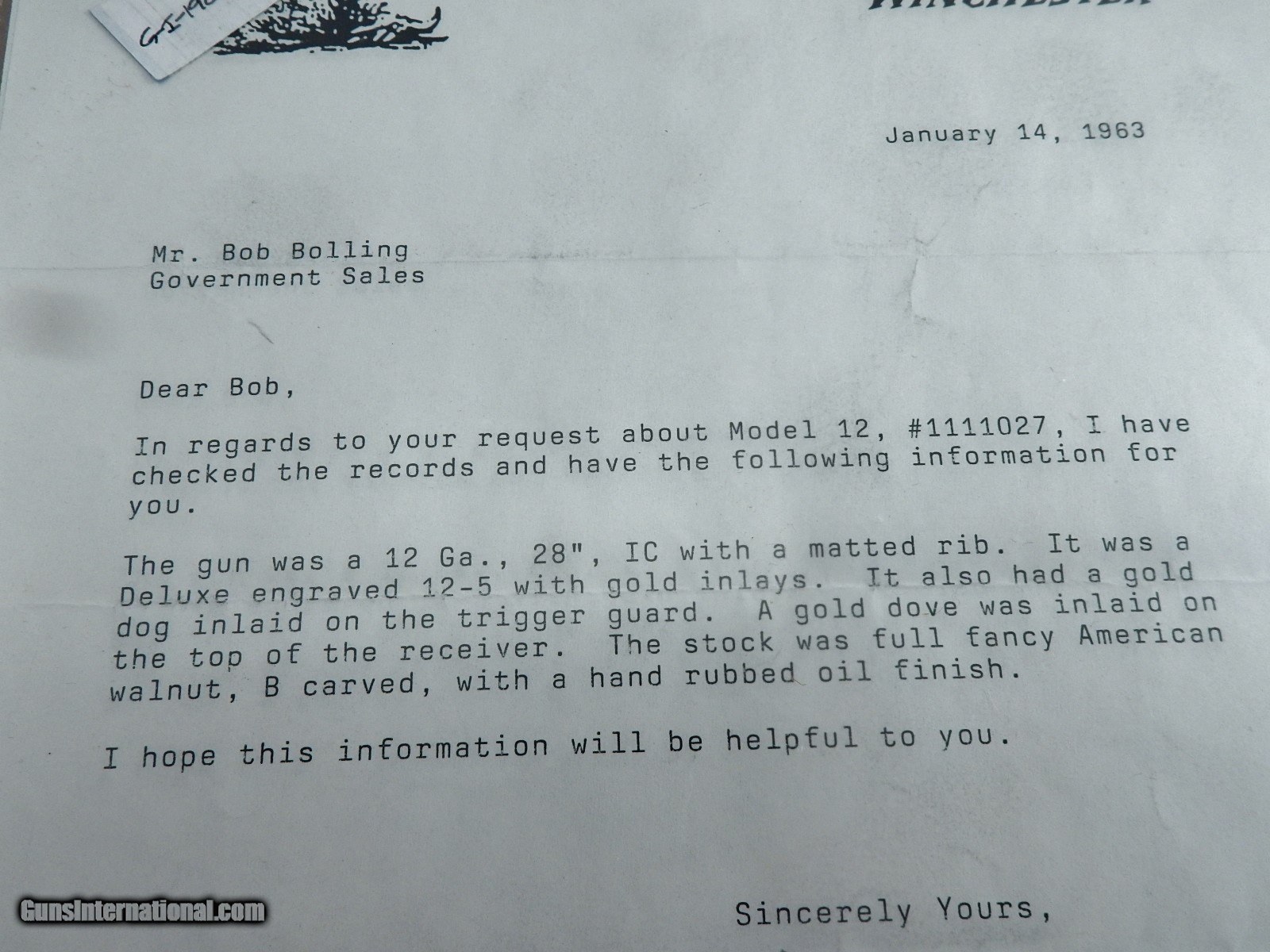 1948 Winchester Model 12 Factory Engraved Grade 5 Gold With Letter In The Box