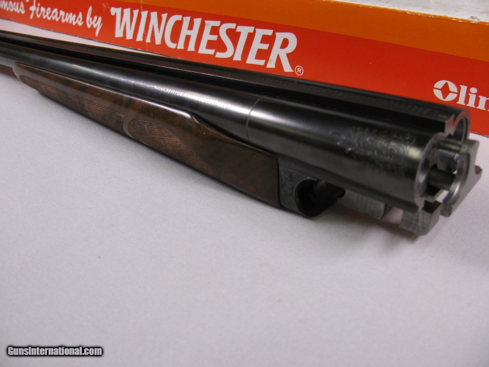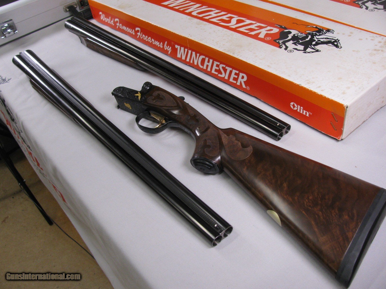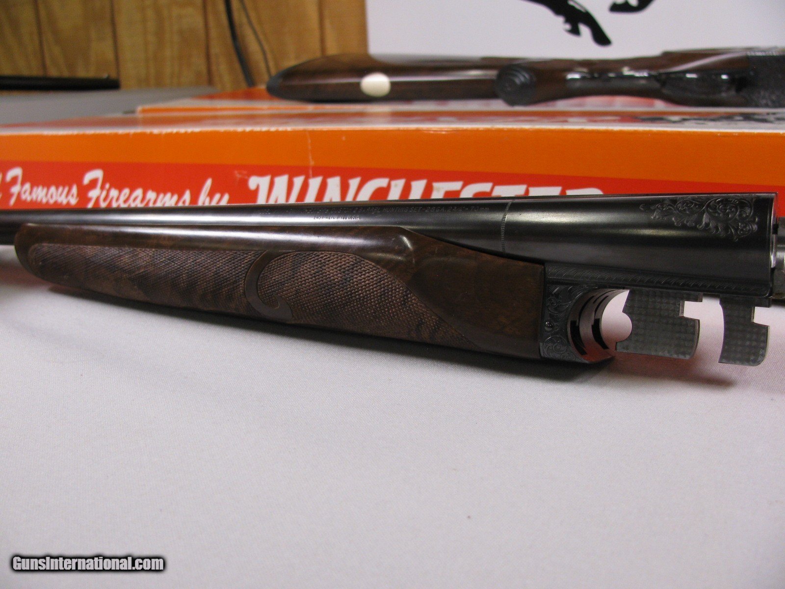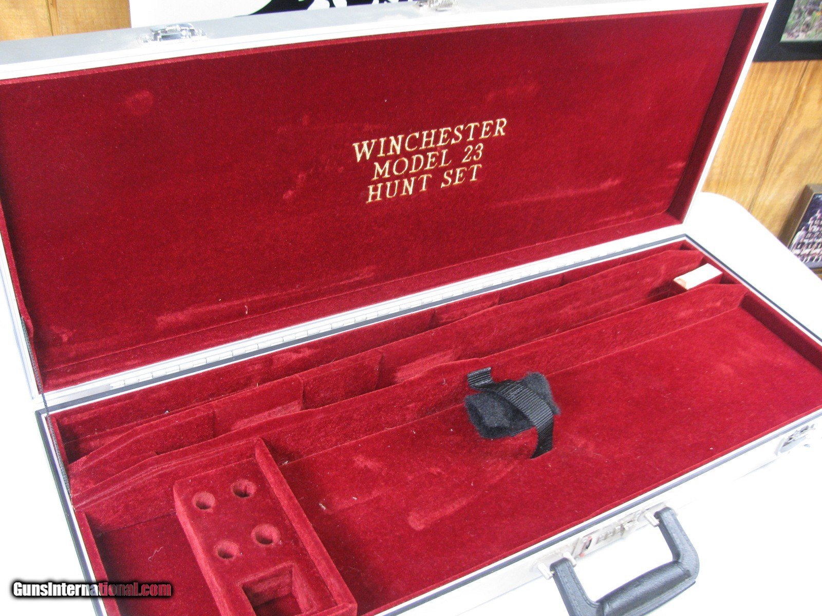 Description: 7823 Winchester 23 Hunt set WBS 28 gauge 26 bls ic/mod, 20 gauge 26 bls ic/mod, gold raised relief PHEASANT/QUAIL, Mr Olins black lab KING BUCK raised relief gold with duck in mouth, 1959 Fed Duck Stamp, fleur-des-lies checkering, AAA+++FANCY HIGHLY FIGURED WALNUT.99% condition, Custom Americase with Winchester 23 Hunt Set imbordered in case, silver snaps, beaver tail pistol grip with cap, solid rib, ejectors, single select trigger, AS NEW. Correct sterilized boxes, Very hard to find NONE FINER. SOLD Shotgun Gauge: 28 Gauge |