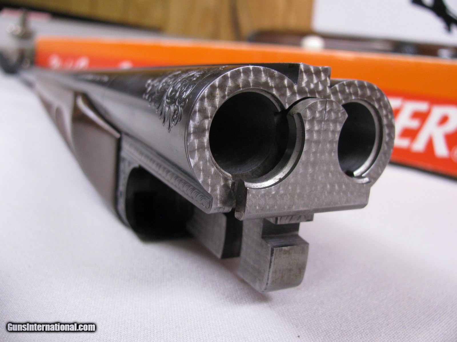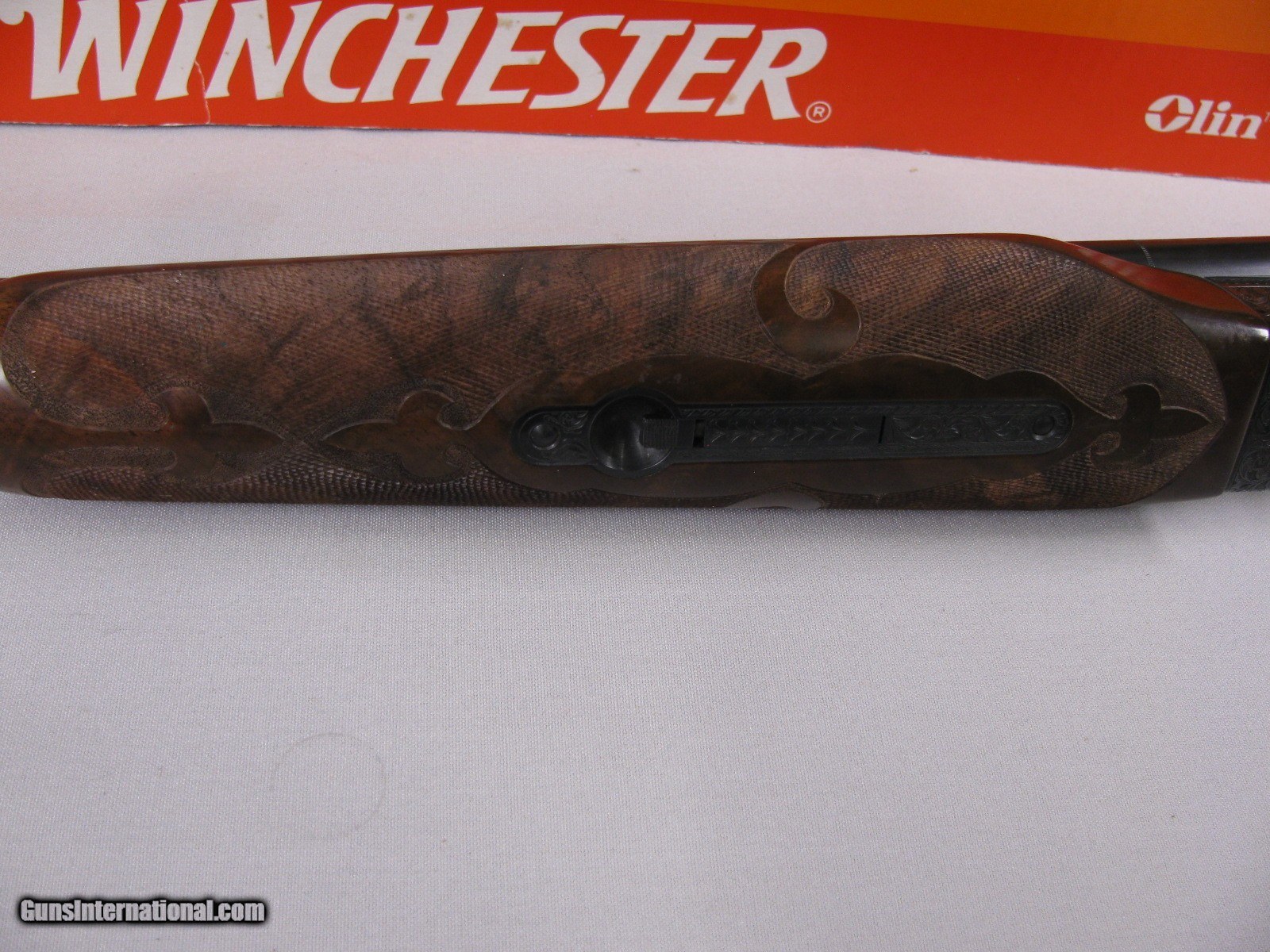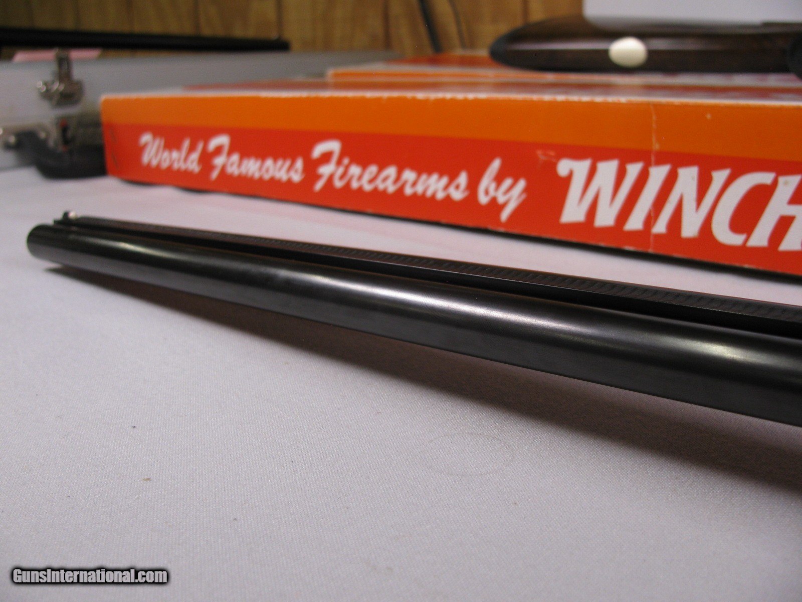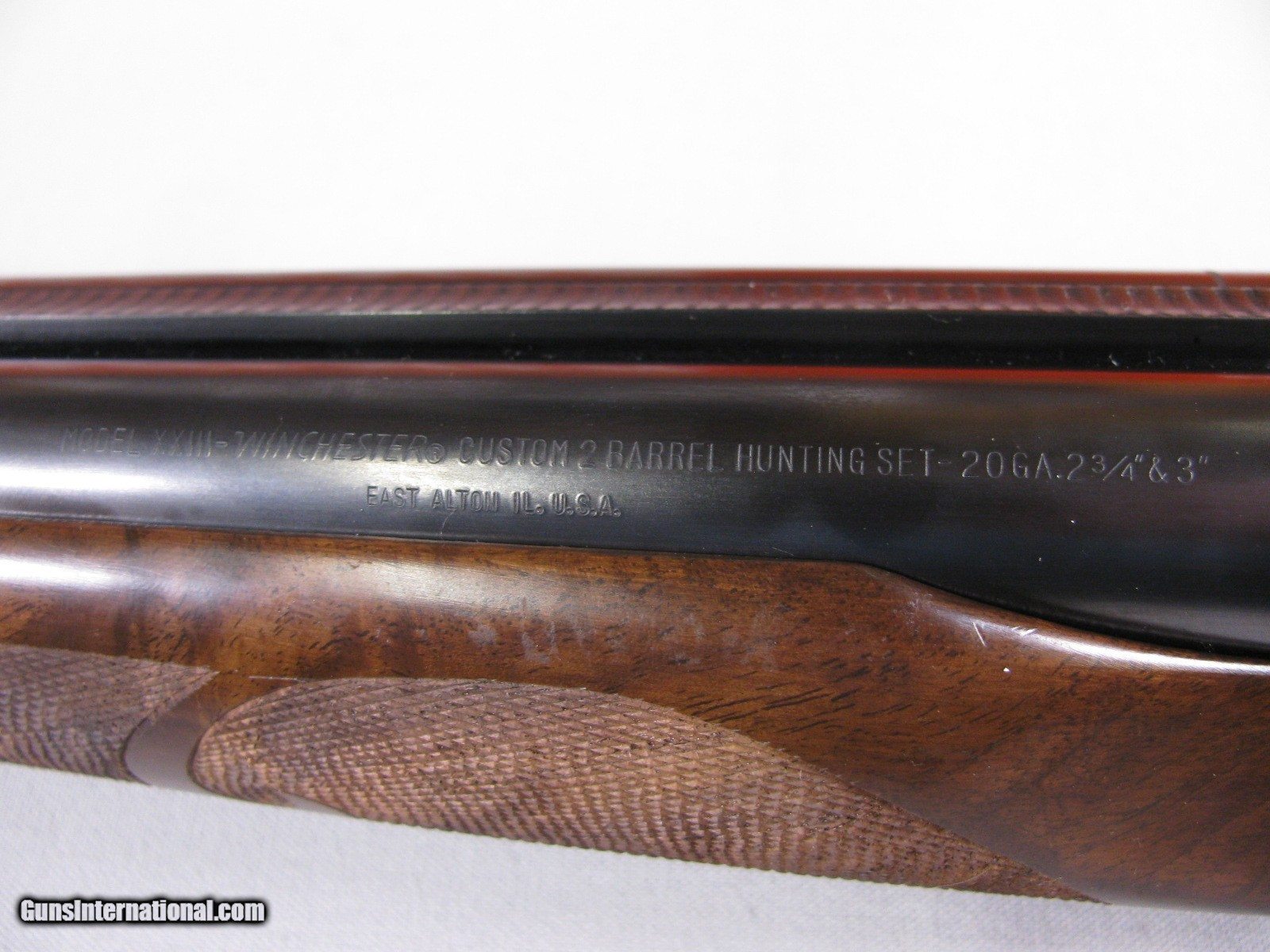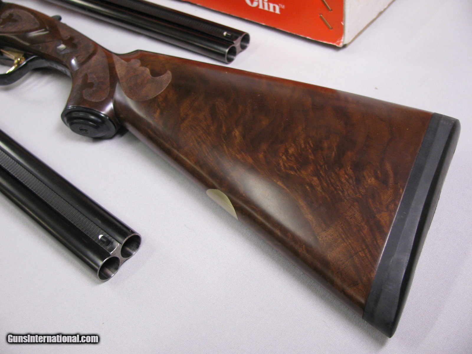 Description: 7823 Winchester 23 Hunt set WBS 28 gauge 26 bls ic/mod, 20 gauge 26 bls ic/mod, gold raised relief PHEASANT/QUAIL, Mr Olins black lab KING BUCK raised relief gold with duck in mouth, 1959 Fed Duck Stamp, fleur-des-lies checkering, AAA+++FANCY HIGHLY FIGURED WALNUT.99% condition, Custom Americase with Winchester 23 Hunt Set imbordered in case, silver snaps, beaver tail pistol grip with cap, solid rib, ejectors, single select trigger, AS NEW. Correct sterilized boxes, Very hard to find NONE FINER. SOLD Shotgun Gauge: 28 Gauge |