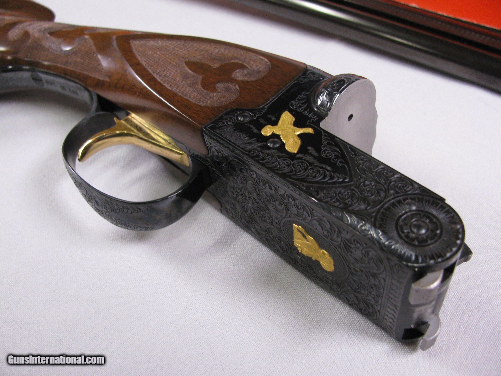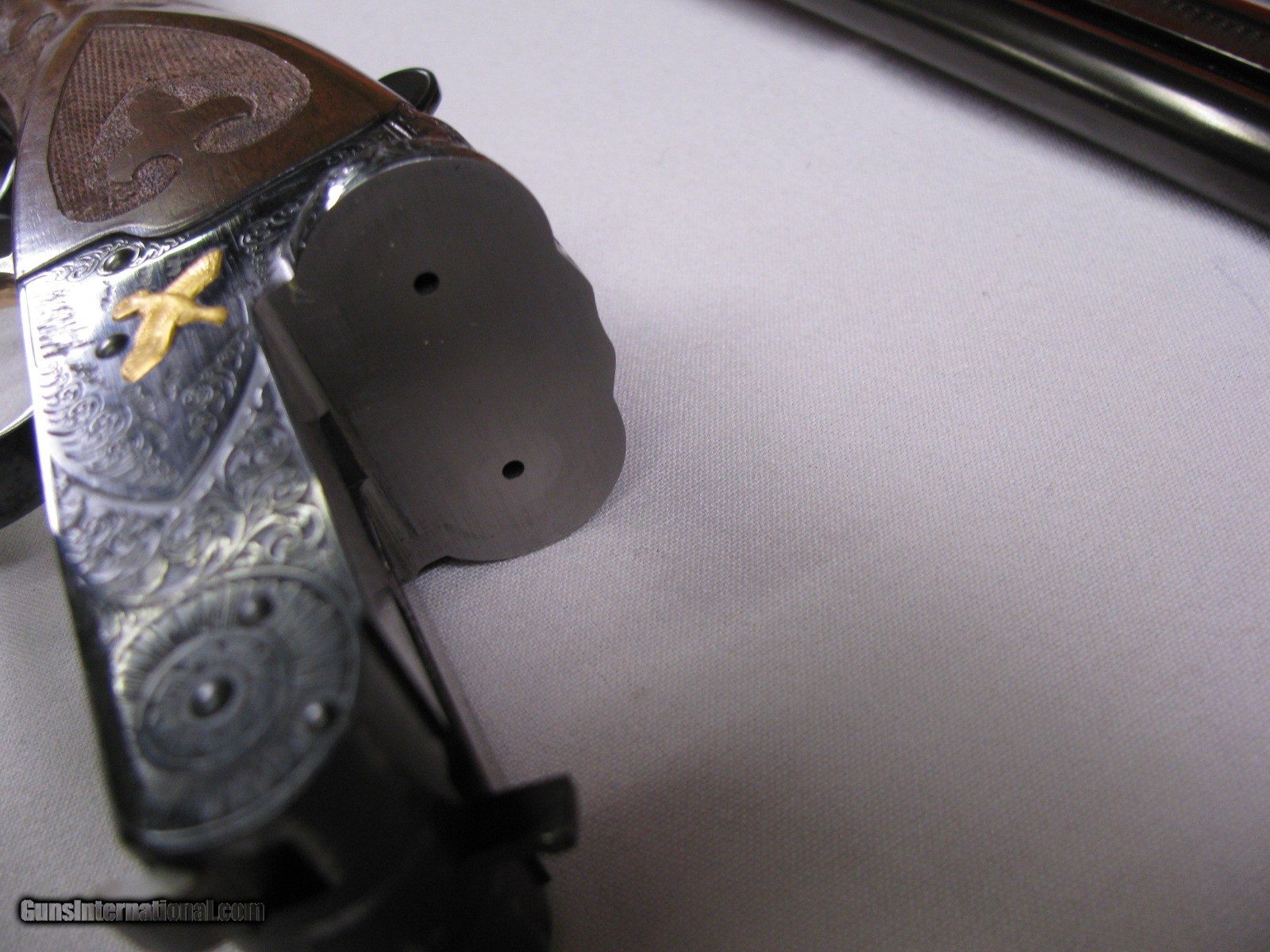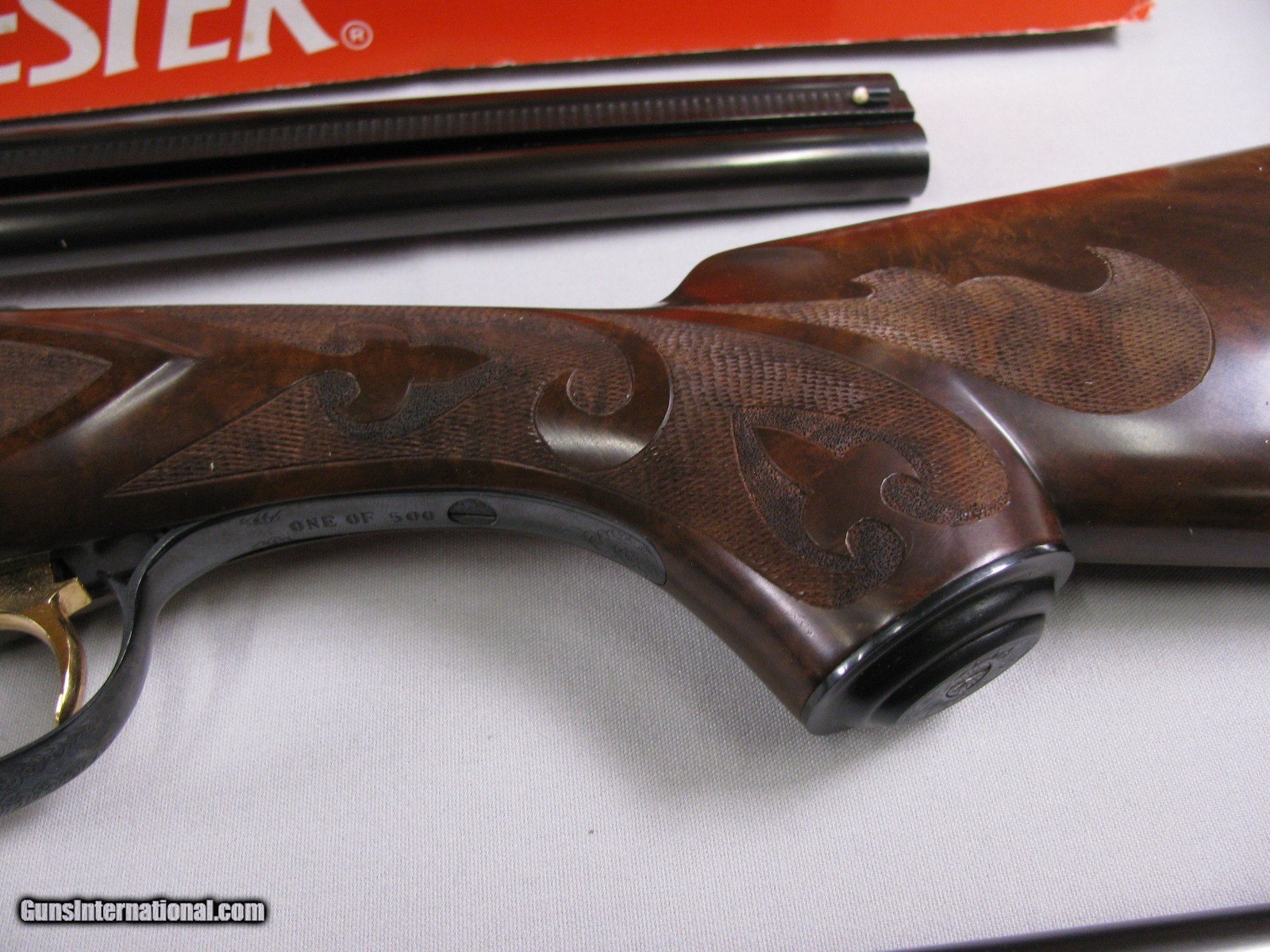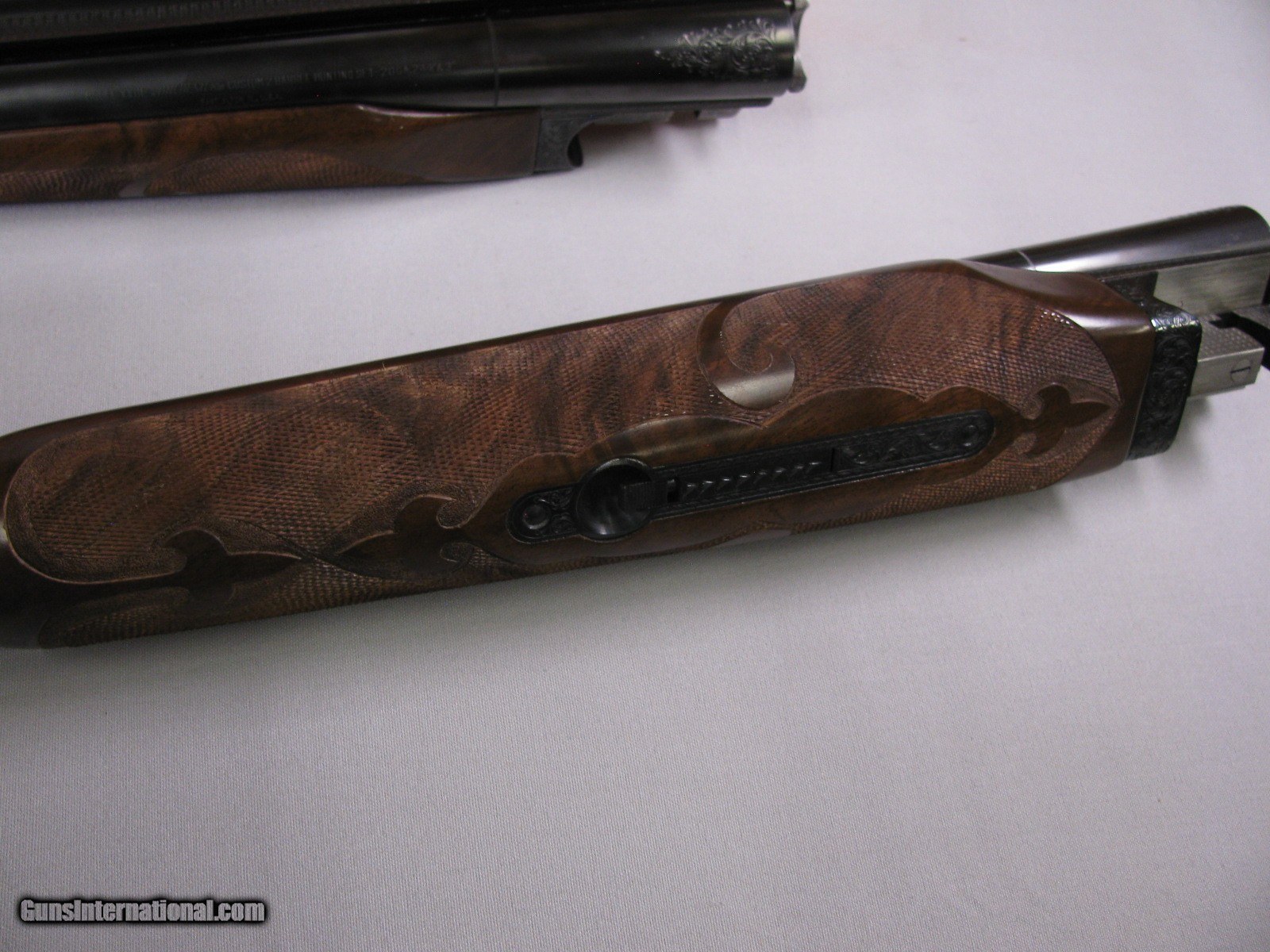 Description: 7823 Winchester 23 Hunt set WBS 28 gauge 26 bls ic/mod, 20 gauge 26 bls ic/mod, gold raised relief PHEASANT/QUAIL, Mr Olins black lab KING BUCK raised relief gold with duck in mouth, 1959 Fed Duck Stamp, fleur-des-lies checkering, AAA+++FANCY HIGHLY FIGURED WALNUT.99% condition, Custom Americase with Winchester 23 Hunt Set imbordered in case, silver snaps, beaver tail pistol grip with cap, solid rib, ejectors, single select trigger, AS NEW. Correct sterilized boxes, Very hard to find NONE FINER. SOLD Shotgun Gauge: 28 Gauge |