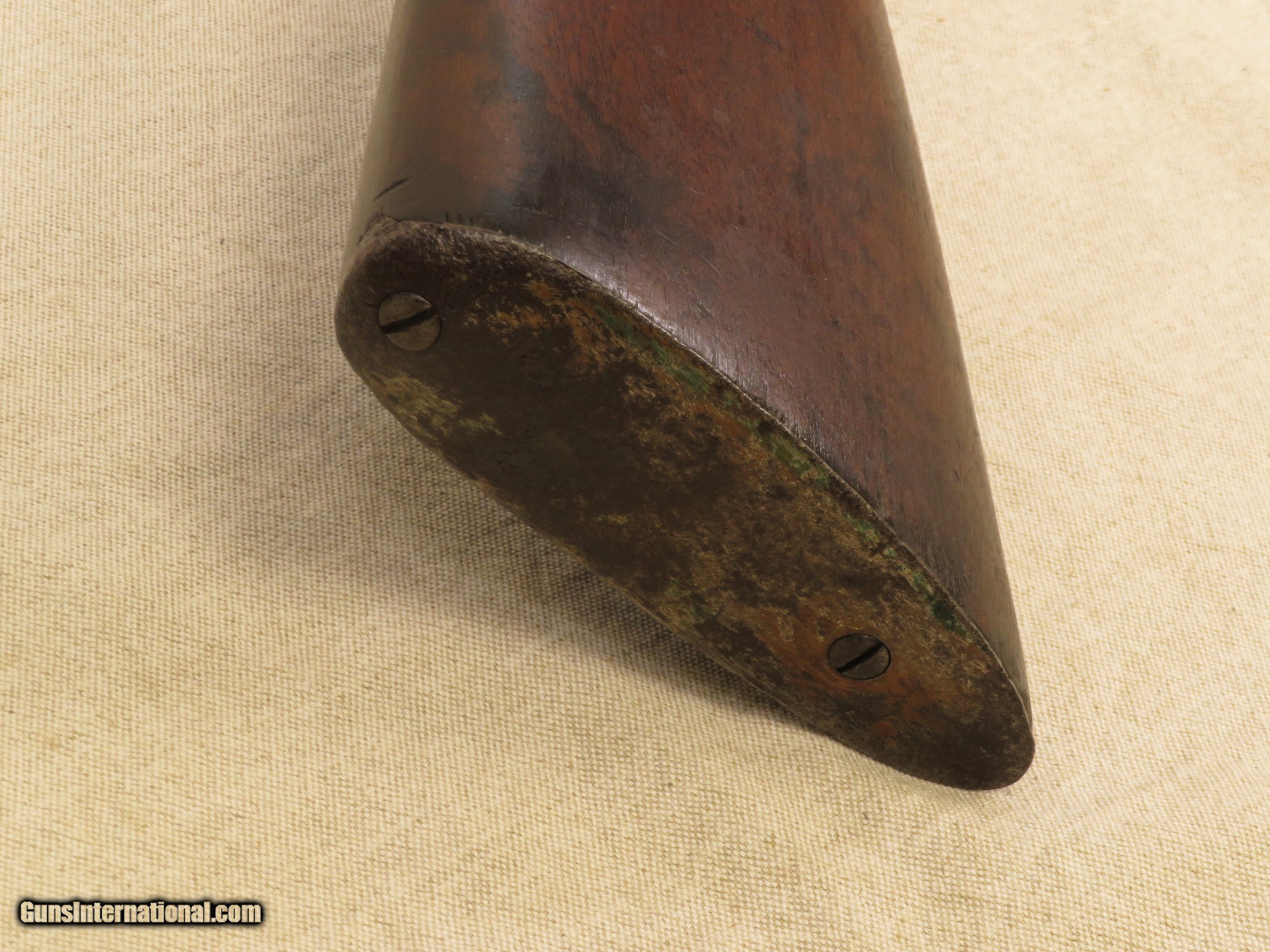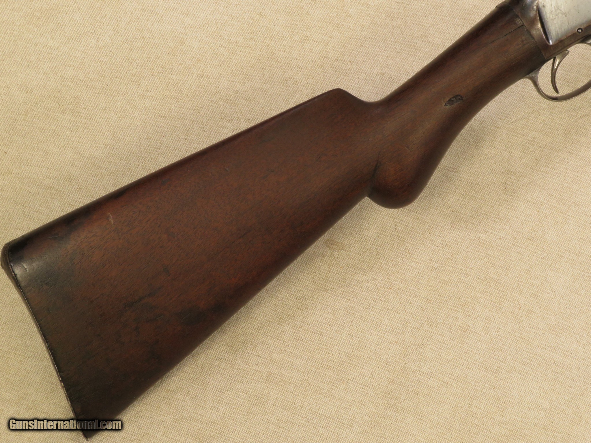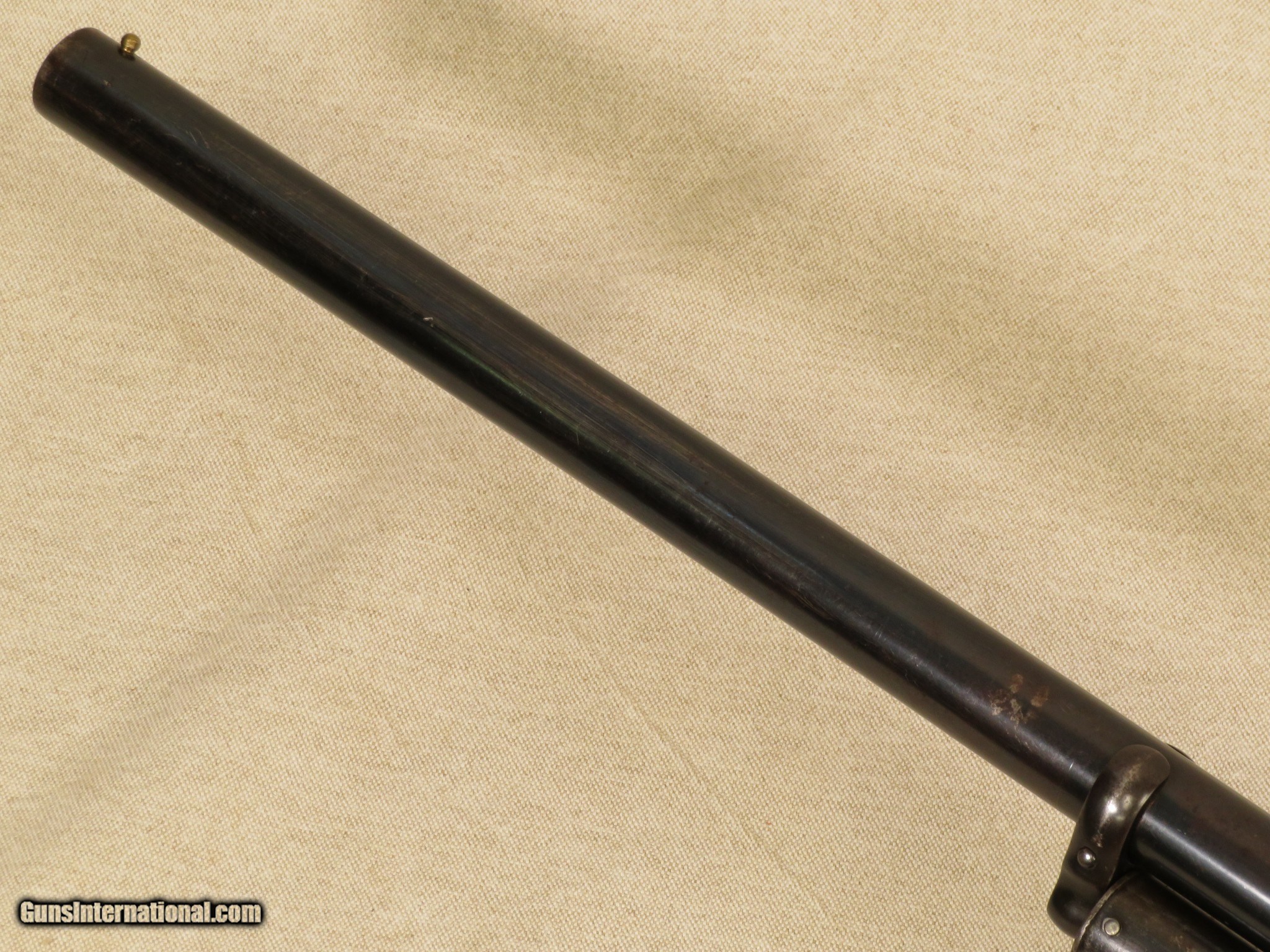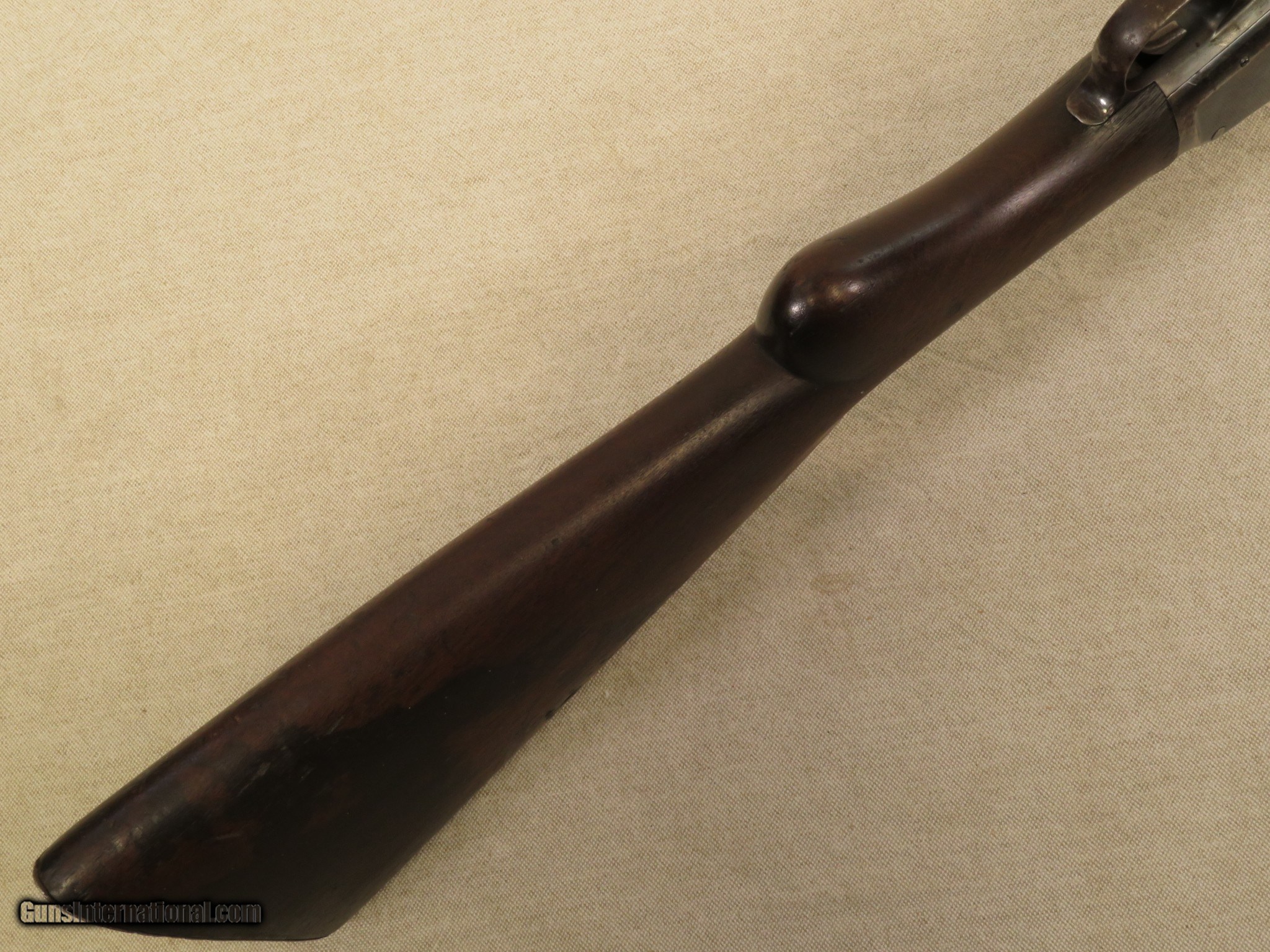 Description: The 1893 was Winchester's first pump action shotgun and was originally designed for black powder shells. However, by the late 1890's shells loaded with smokeless powder were becoming more and more common. Unfortunately, the original Model 1893 was not strong enough to handle these stronger loads. Winchester introduced an improved version of the 1893 to handle these new smokeless rounds which it re-designated the Model 1897. Fearing lawsuits, Winchester issued one of the first national product recalls in the United States, encouraging all owners of the Model 1893 to return their guns to the factory in exchange for brand new Model 1897's. Of the approximately 34,000 units produced, many were returned and scrapped by Winchester. Today, while it is not impossible to find a surviving Model 1893, they are far from common and it can be a challenge to locate survivors in decent condition. We rarely see these and most have been well-used with little or no finish remaining and/or are inoperable. This particular example has survived with a lot of its original finish and is in good working order. While this is one of the better 1893's we've seen in quite some time, the barrel which was originally 30" choked full has been trimmed down to 28" with no choke remaining. Otherwise, this is a very nice example. The bore is in Good condition but shows scattered pitting thoughout. The action works nicely as well. A hard to find Winchester that would fill a spot in a Winchester 1897/pump gun collection. PRICE: $995 We are Antique & Modern Firearms in Lexington, KY, dealer of fine firearms since 1974. PH. 859-276-1419 We Buy, Sell and Trade Firearms & Knives. Have a Individual Firearm, Firearms Collection, or Firearms Estate to sell, let us know, we can buy or consignment sell it for you. (sales at am-firearms) SOLD Antique: Yes Shotgun Gauge: 12 Gauge Manufacturer: WINCHESTER Model: 1893 Serial Number: 4563 Barrel Length: 28 Chambers: 2-5/8 |