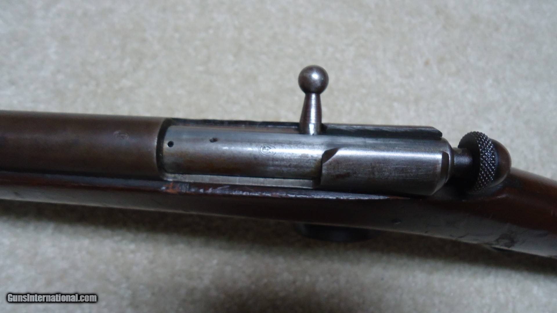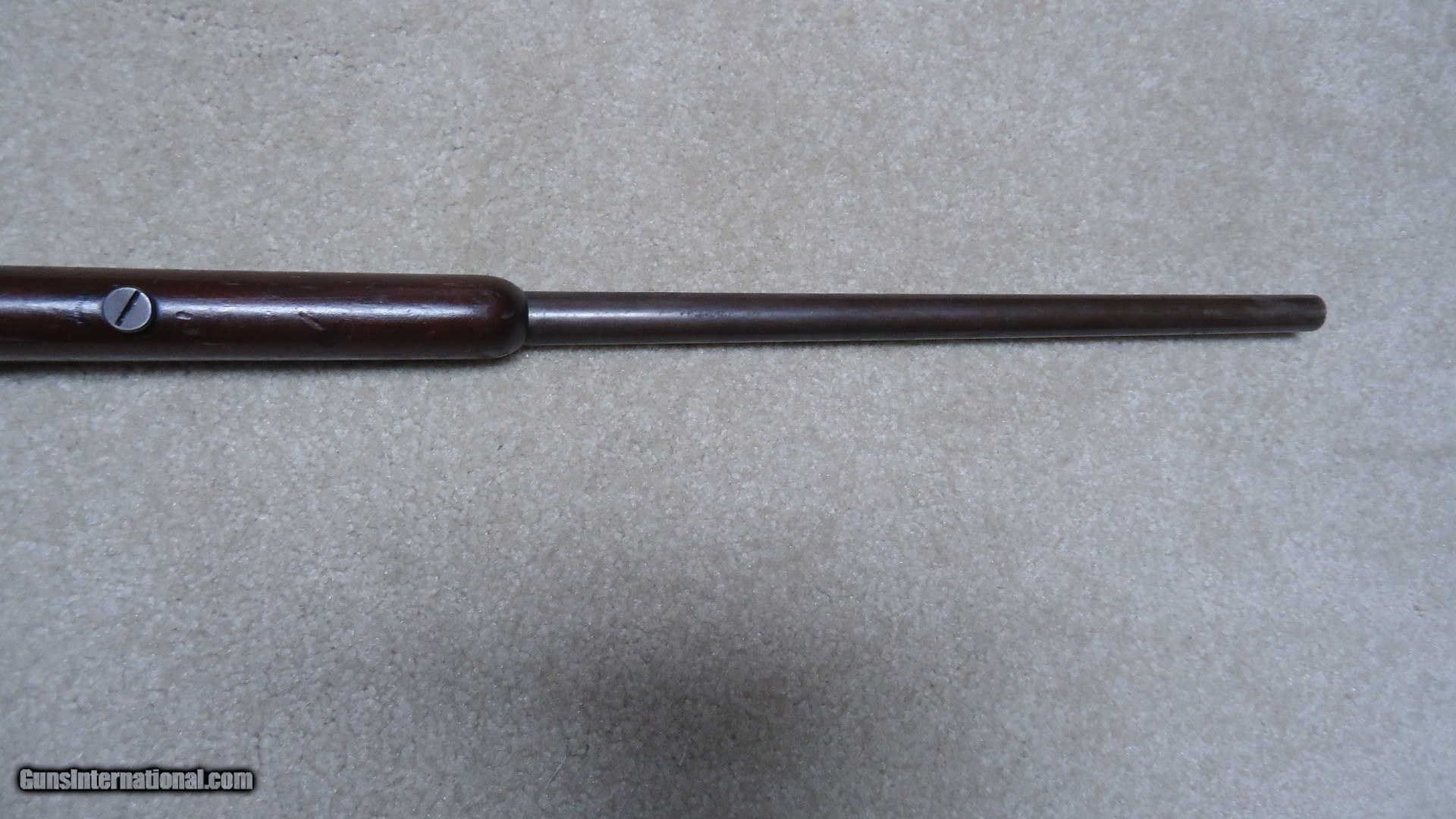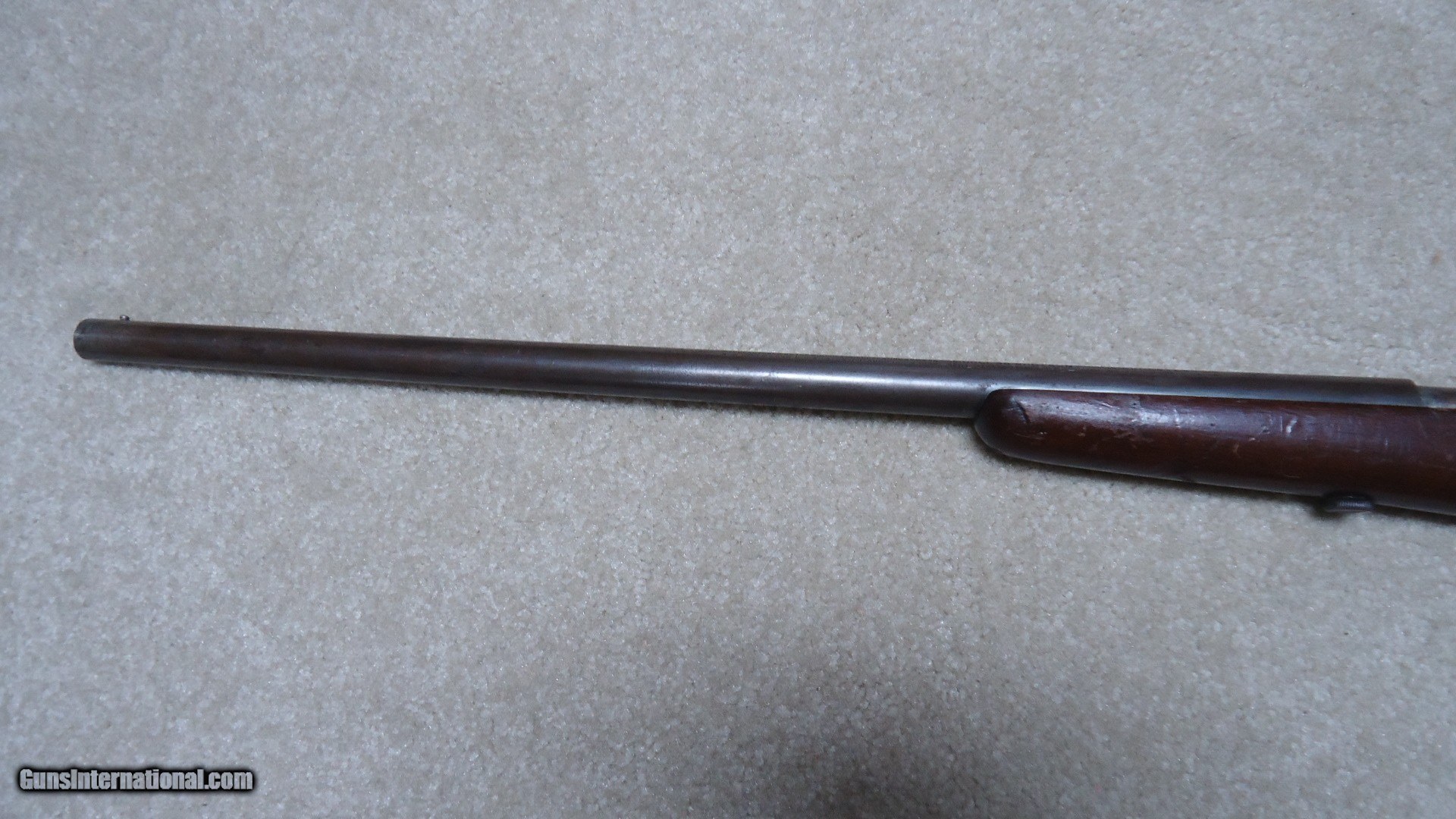 Description: SCARCE MODEL 36 SINGLE SHOT BOLT ACTION 9MM RIMFIRE SHOTGUN, MADE 1921-1929. These little guns are best described by George Madis in The Winchester Handbook as follows: In a departure from the trend to smokeless powder, Winchester produced the Model 36 single shot shotgun, intended for use only with black powder. Two rimfire shot cartridges were made by Winchester for the Model 36; the 9MM SHORT, or single charge, and the 9MM LONG, or double charge cartridge. Both of these shells were loaded with number nine shot. A ball cartridge was also offered. This little shotgun was considered a "garden gun" and an all around gun for boys or men. (Sounds a little sexist by today's standards...does that mean girls and women were forbidden from using the Model 36?) A total of 25781 of these were made when it was discontinued in 1929- no doubt the stock market crash and following Great Depression killed this odd little shotgun. When found today, they are usually in horrible condition as they were "garden guns" used for that purpose and usually didn't see the care and cleaning of the owner's other sporting guns. This one is one of the better examples I've seen as it has the original gum wood stock which is not cracked or chipped and retains good original wood finish. The barrel blue has aged and thinned to brown with excellent markings intact. the bore is basically bright with a few dark spots that will probably brush out. Has the correct bead front sight and no provision for a rear sight. Exc. mechanically and retains the original hard rubber butt plate. A true unique Winchester oddity! SOLD Curio/Relic: Yes Manufacturer: Winchester Model: MODEL 36 Serial Number: N/A Condition: VG |