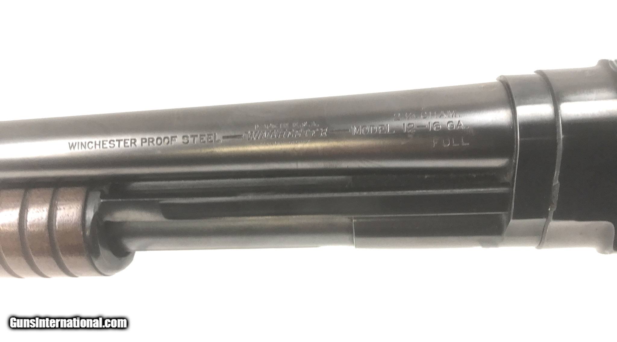 Description: Guns Listing ID: 733602 Manufacturer: Winchester Model: 12 Gauge: 16 Gauge Serial No.: 815876 Barrel Length: 28\" Chambers: 2 3/4\" Round Capacity: 3 Barrel Finish: Blued Front Sight: Silver Front Bead Chokes: Full Stock Material: Wood SKU: 21120039 Beautiful Full Choke Winchester Model 12 16G Pump action 28\" barrel Shotgun The rifle is in excellent condion. Matching Serial # is 815876 circa 1940. SOLD Manufacturer: WINCHESTER Model: 12 Condition: Used - Non-Certified Barrels: 2.8 BARREL Gauge Info: 16 GA Finish: BLUE |