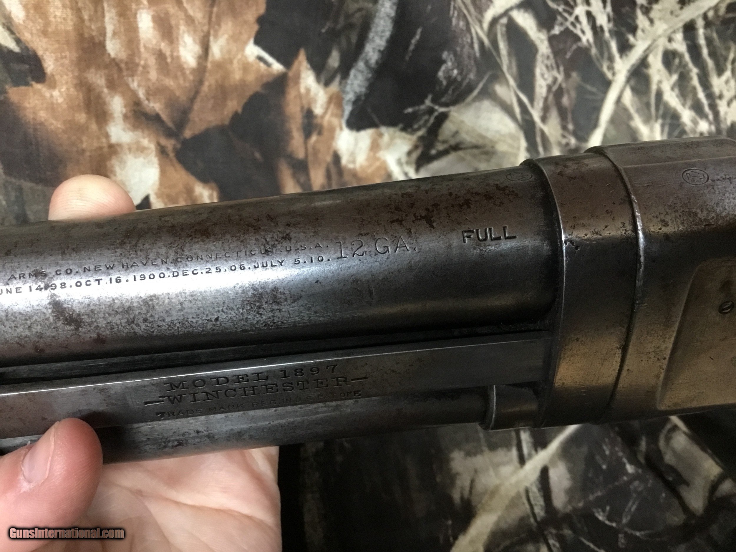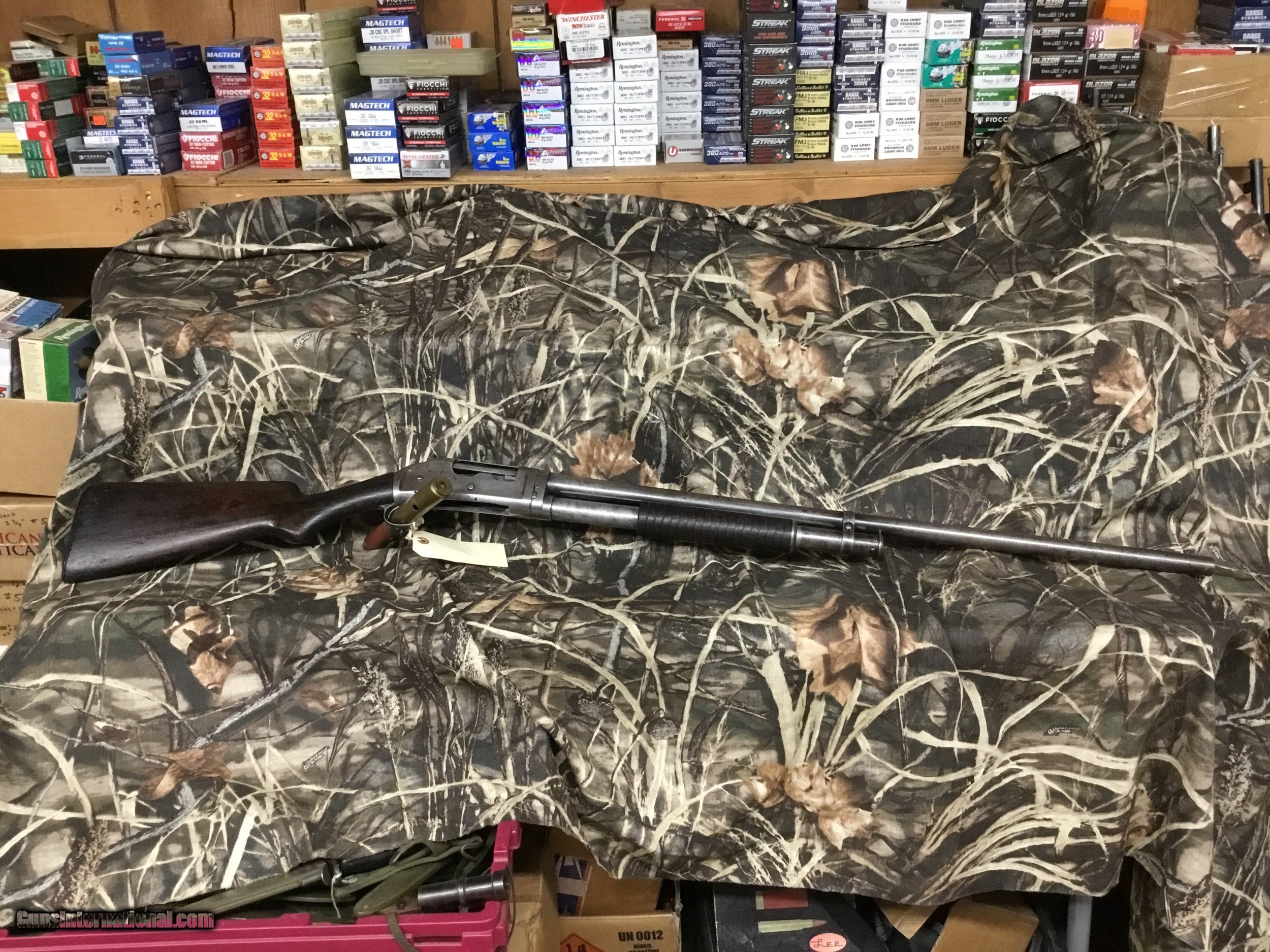 Description: WINCHESTER 1897 12 GAUGE 30 INCH FULL CHOKE.........OBO SERIAL NUMBERS PUTS IT AT 1913 YEAR BORN SMOOTH ALL THE WAY MECHANICALLY IF FUNCTIONS AS IT SHOULD ALL BLUE IS GONE...........WOOD IS THE WEAKEST PART OF THIS GIRL WOOD IS TIGHT BUT GOT SOME BOO BOO MARKS FOR SURE 595.00 45.00 SHIP AND INSURE If you are WEST of the Mississippi shipping will be $10.00 extra Thank you for looking at our items. If it is listed on the site, we still have it in the shop. If you wish to buy, hit buy it now and call the shop to pay. We are open Monday thru Friday 10:00am-5:00pm EST ...........Ask for Bree....... (803) 874-1060. Please CALL the shop first if you are in California. You need to verify you can have this weapon, since we DO NOT accept returns from California. NO INTERNATIONAL SALES. SOLD Shotgun Gauge: 12 Gauge |