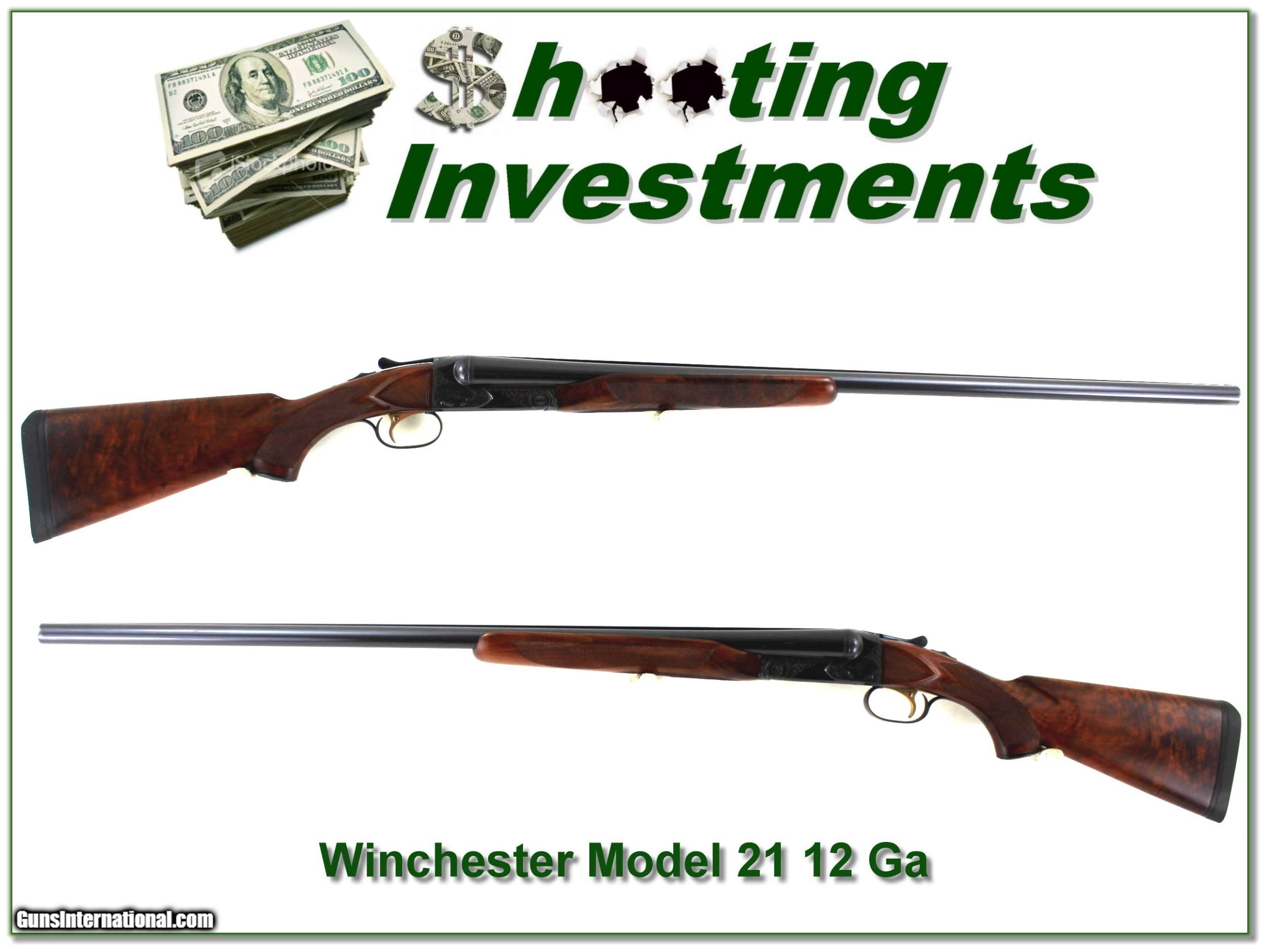 Description: Collectors, this is a beautiful Winchester 21! It has completely redone by Pfrommer Gunworks! It has 30in barrels choked right bbl .010 and left bbl .022 to make gun better suited for SXS competition shooting. It has a beautiful oil finish. And it has #4 style engraving. There are no marks on the wood or metal! It will make a prized addition to your collection. I am selling this one on consignment and as such lay-a-way can’t be used. It does of course have the standard 3-day inspection. Shipping and insurance is $109. Please email me with any questions or larger pictures. (Consign your quality firearms with Shooting Investments for only 12%! Let me know if you have any you would like to sell!) 23-0048 Payment: Payment is by Money Order, Cashiers Check or Personal Check. I can now also accept Credit Cards (MasterCard, Visa, Discover & American Express) with a 3% convenience fee. Shipping: The shipping charge will be listed in each description. It is $49 for most long guns. Some heavy guns, over 48in boxes or those insured for over $2000 will be higher. Shipments to Alaska and Hawaii are higher because air shipment is required. Most firearms are shipped on Tuesday and Thursday and usually in 5 days of receipt of payment. We package all shipments carefully and insure them. Optics are shipped Priority Mail and most other non-firearm shipments are shipped First Class. Returns: Our return policy is simple. If for any reason you are not pleased with your purchase, you may return your item for a full refund of purchase price. Ammunition cannot be returned. It is important to us that you are happy. Guns cannot be fired or dissembled before returning them and they must be returned in the same condition as received. Notification of a return must occur with-in 3 days of receipt at your dealer. Shipping, convenience and dealer fees are not refundable and are the responsibility of the buyer. Lay-a-way: If needed, we offer a 60 day lay-a-way option on most firearms. It is 1/3 now, 1/3 in 30 days and 1/3 in 60 days. Lay-a-way firearm sales are final and if not completed the first payment cannot be returned. Consigning your firearms with Shooting Investments: We will help you get top dollar for your firearms. While most local guns shops charge 20% or more, our fee is only 12% with a minimum of $75. At your local gun shop it might take months to sell. Selling on-line provides instant access to thousands of interested buyers. You won’t find any other on-line dealer willing to sell your firearms for only 12% or listing every gun on 3 separate s. Selling through an House typically costs the seller 15% and the buyer an addition 15% (so 30%) and you have to wait several months to sell and longer to receive funds. If properly priced, we will sell your firearms in a few weeks. Send us an email or give us a call and we’ll explain how easy it is for you to get top dollar. Trading: Trading for use is really just buying your gun to re-sell. If you have a gun you want to trade, please email a picture and we will let you know what we can give or it. You will always get more if we sell it for you on consignment. Help for California Buyers: We are happy to ship to California. It is the buyer’s responsibility to make sure any item you buy is legal in your state. We are also happy to help with your purchase of a firearm from someone other than us. If you see a gun you would like to buy but the seller can’t or won’t ship to California they can ship to use and we’ll then ship it to your California dealer. The cost for this service is only $30 + shipping. Let us know if we can help! SOLD |