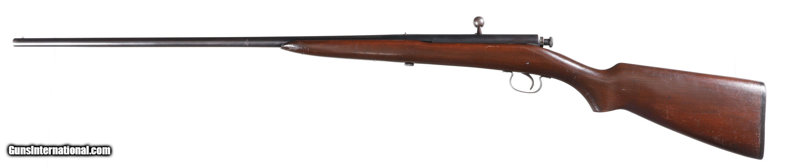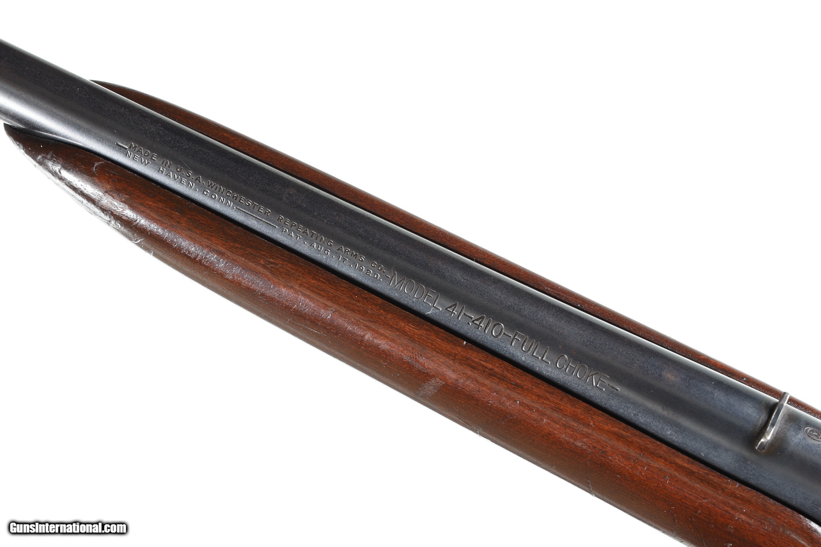 Description: SERIAL NUMBER N/A BARREL 24" CALIBER .410 2-1/2" MANUFACTURED 1920-1934. Bolt action single shot shotgun with varnished hardwood stock with checkered Winchester monogramed hard rubber butt plate. Full choke barrel with 13 1/2" LOP. These sturdy little single shot shotguns were a utility gun and typically saw hard use. CONDITION, Very good with bright bore, Over 80% thinning blue remains with plum undertones. The stock is very good with most varnish remaining with some period of use impressions. The action operates properly. The checkered hard rubber butt plate remains very good and without breakage. This is an exceptional example of the hard used model 41 Winchester. C&R • Free Shipping, No Credit Card Fees. • Lay-a-way available for this firearm. • 1/3 Down, a 1/3 in 30 Days 1/3 in 60 Days. SOLD Curio/Relic: Yes Shotgun Gauge: .410 Gauge Manufacturer: Winchester Model: 41 Barrel Length: 24 |