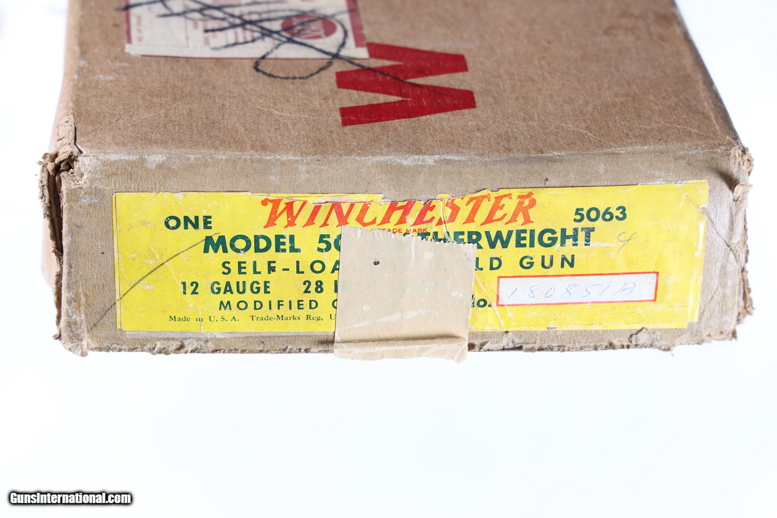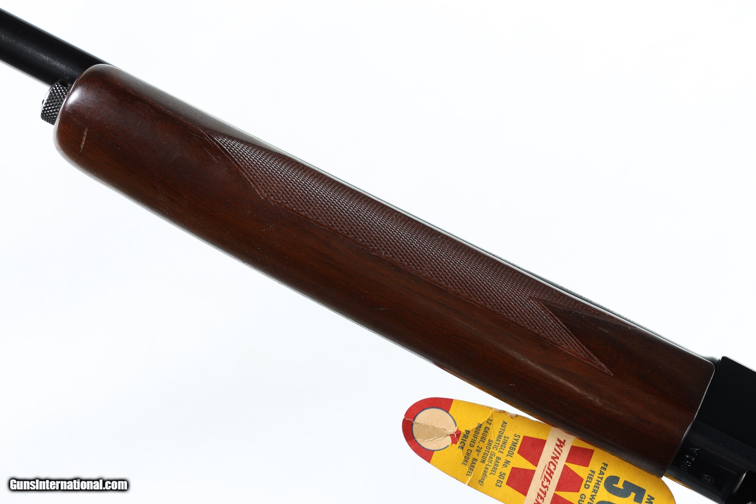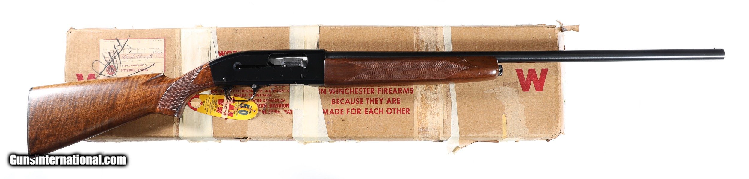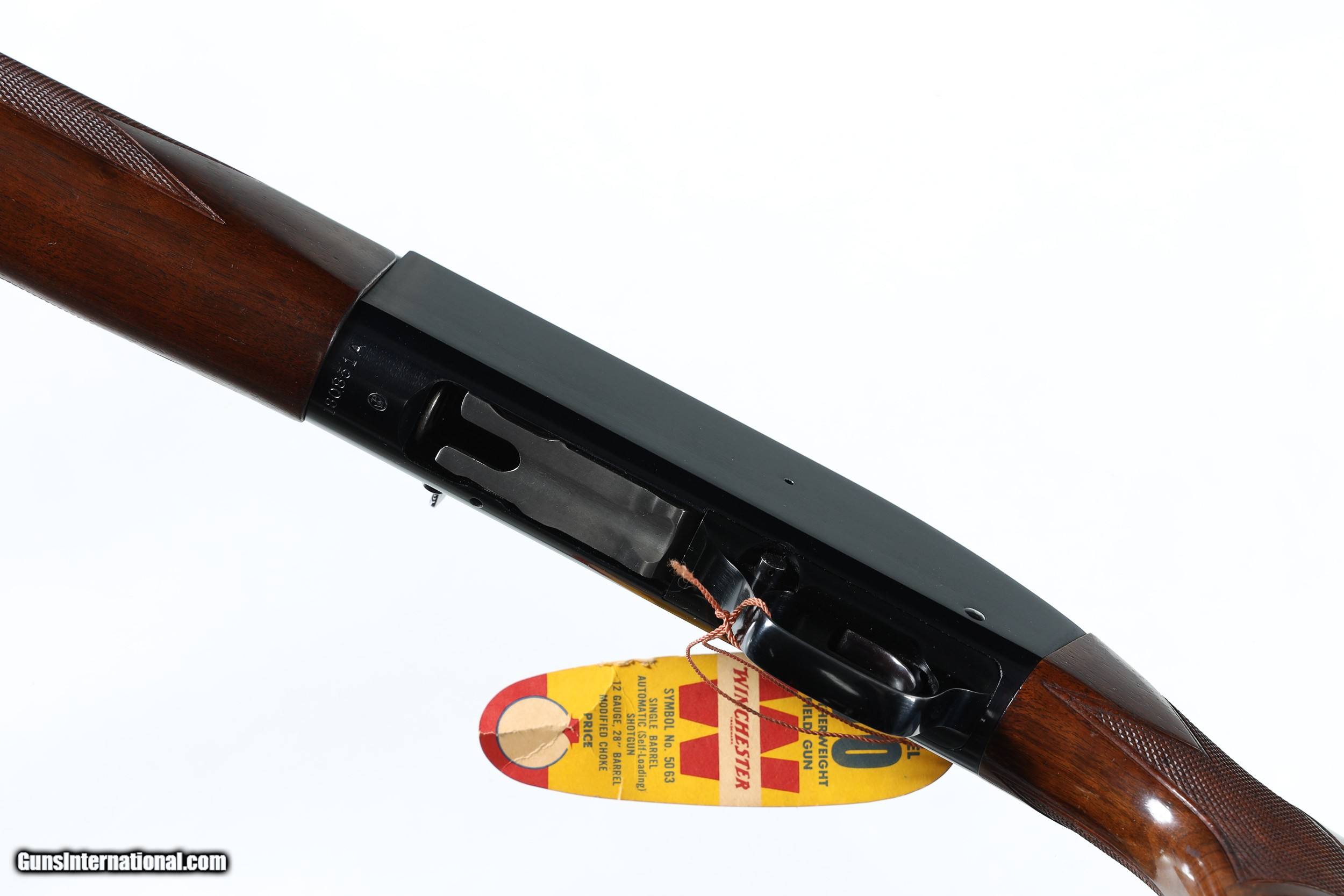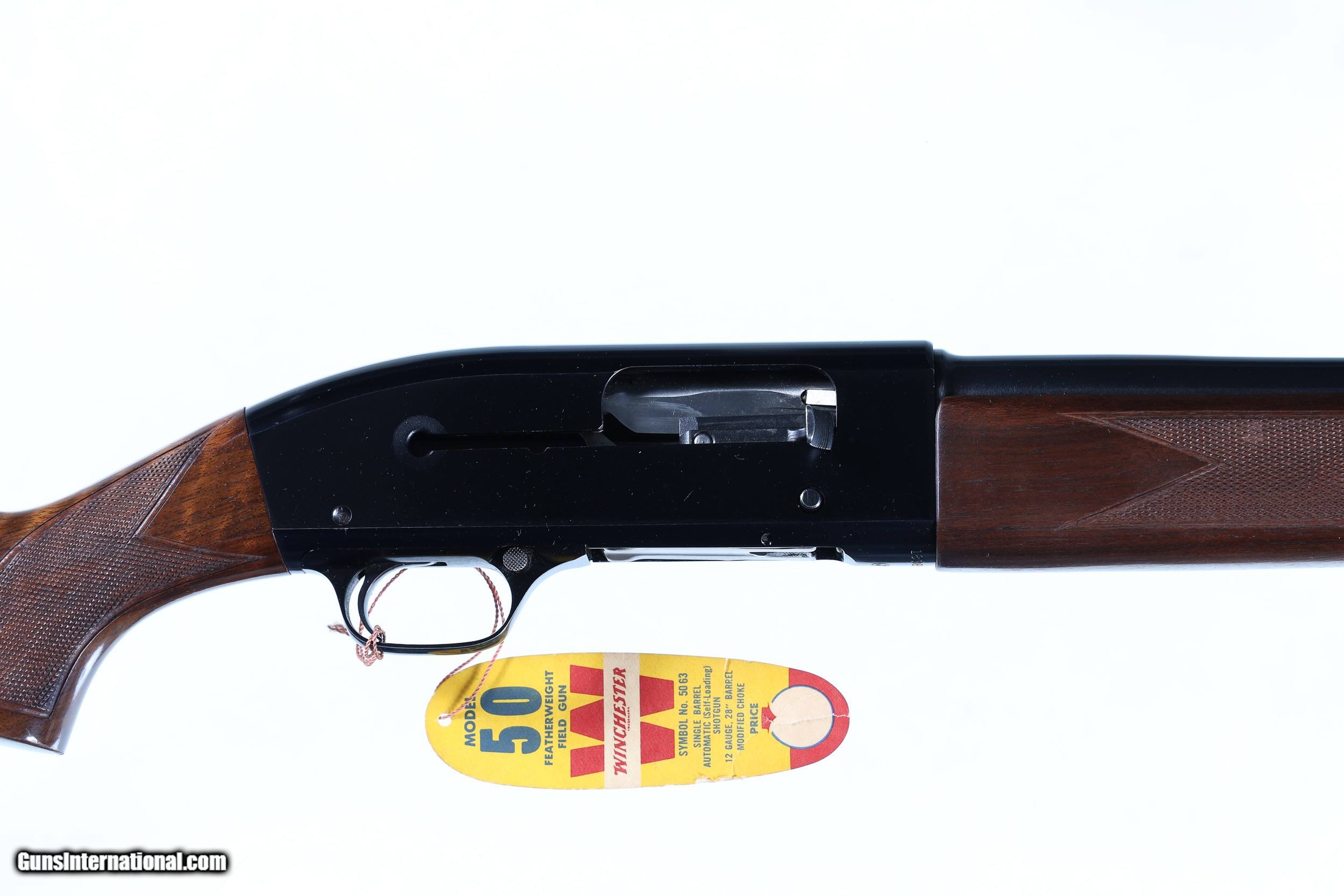 Description: Excellent plus overall condition, minimal handling marks, a couple light abrasions on right side of forend. With factory box hand numbered to gun. Choked mod, LOP 14". Mfd in 1961. The 12. ga Winchester Featherweight Model 50 is one of the most popular semi-automatic shotguns of its era. Being known for its reliability and durability, the Model 50 is constructed of sturdy forged metal parts, with the only exception being the aluminum alloy trigger guard. Using a floating chamber, this model bridged the gap from shotgun technologies of old to the semi-automatic functions found today. This Featherweight Model 50 also comes with its original box and instructions manual. • Free Shipping, No Credit Card Fees. • Lay-a-way available for this firearm. • 1/3 Down, a 1/3 in 30 Days 1/3 in 60 Days. SOLD Curio/Relic: Yes Manufacturer: Winchester Model: 50 Serial Number: 180851A Barrel Length: 28 |