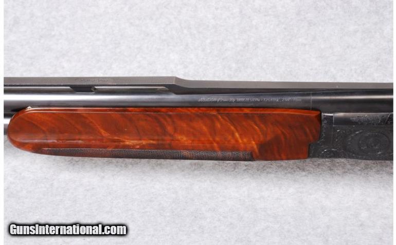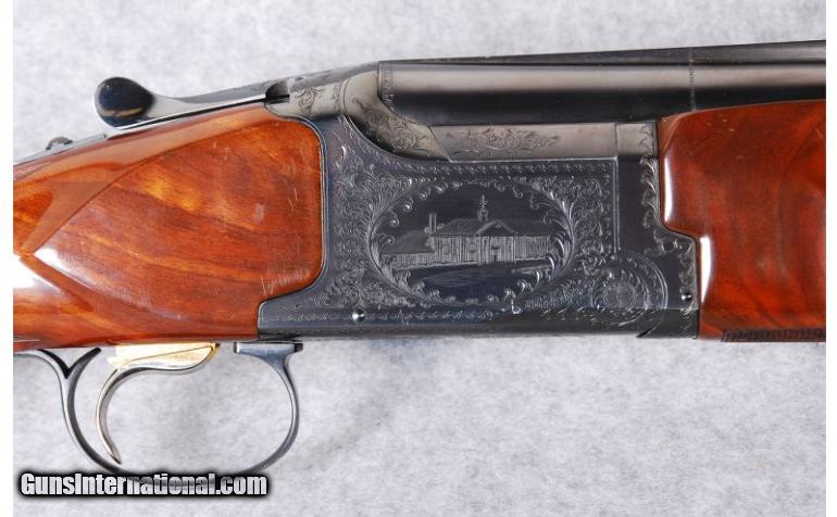 Description: SOLD Manufacturer: Liimited number of sets produced in 1985. Caliber Info: 12 gauge. Chambers: 2 3/4". Metal Condition: Blued receiver with ATA emblem and "ATA Hall of Fame" engraved on the left side and the Vandalia ATA National Office engraved on the right. Wood Condition: Dings and mars. Bore Condition: Excellent. Barrels: Over/Under 30", seperated barrels, step rib and a 34" over-single barrel with a step rib. Triggers: Gold. Stock: Medium, high gloss finish walnut Monte Carlo stock with a checkered pistol grip, an inlaid ebony diamond in the wrist and in the pistol grip cap, and an initial plate. Stock Dimensions: LOP: 14", DAC: 1 3/8", DAMC: 1 3/8", DAH: 2". Fore End: Checkered with finger grooves and blued and engraved hardware. Butt Pad: Morgan, curved trap pad. Weight: 9 lbs. 2 oz. Sights: White front and center bead on Over/Under and single barrel. Chokes: Over/Under with screw-in bottom and full choke top. Single barrel with screw-in chokes. Screw-ins are early Winchester. Item Location: Rogers, MN |