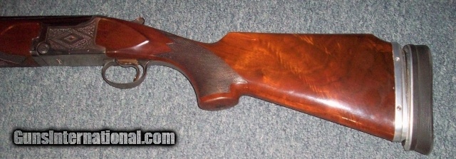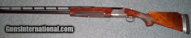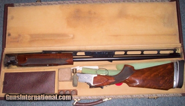 Description: This 12 ga. shotgun is a DIAMOND GRADE TRAP gun with a 34" HIGH vent rib PORTED barrel with a fixed full choke. Adjustable butt pad. Nice wood. No rust, cracks or goughes. Condition 98%. Comes with a Diamong grade fitted hard case (case has some stains o SOLD |