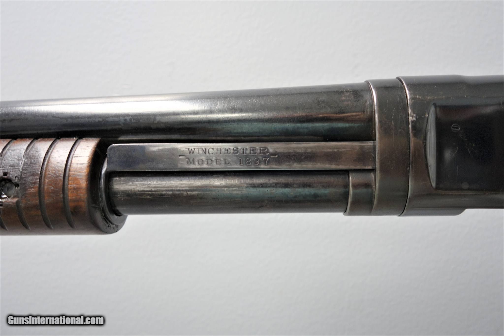 Description: Guns Listing ID: 772871 This firearm has some flaws, but it‚‚s easily over 100 years old. It‚‚s earned it‚‚s flaws. There is a crack in the stock above the trigger, a chip in the butt of the stock and the foregrip has some damage around the screw holes. The reciever and barrel have light scratches, both look like they‚‚ve been reblued at some point. Overall, this is a great piece of American history and will be a nice addition to any collection. This model was introduced in 1900 as an improved Model 1893. This is a 12ga. slide action, 30 in. barrel, visible hammer, full choke, plain pistol grip stock. This is serial# 96828 Over 1,024,700 mfg. between 1897-1957. This model is marked \"Model 1897\" on the slide action rails. These were marked that way until circa 1912 (approx. ser. no. 500,000). After approx. ser. no. 500,000, the marking was moved to the barrel and changed to Model 97. The Model 1897 was the first Winchester shotgun chambered for 2 3/4 in. smokeless ammunit SOLD Curio/Relic: Yes Manufacturer: WINCHESTER Model: MODEL 1897 Condition: Used - Non-Certified Barrels: 30 BARREL Gauge Info: 12 GA Finish: BLUE |